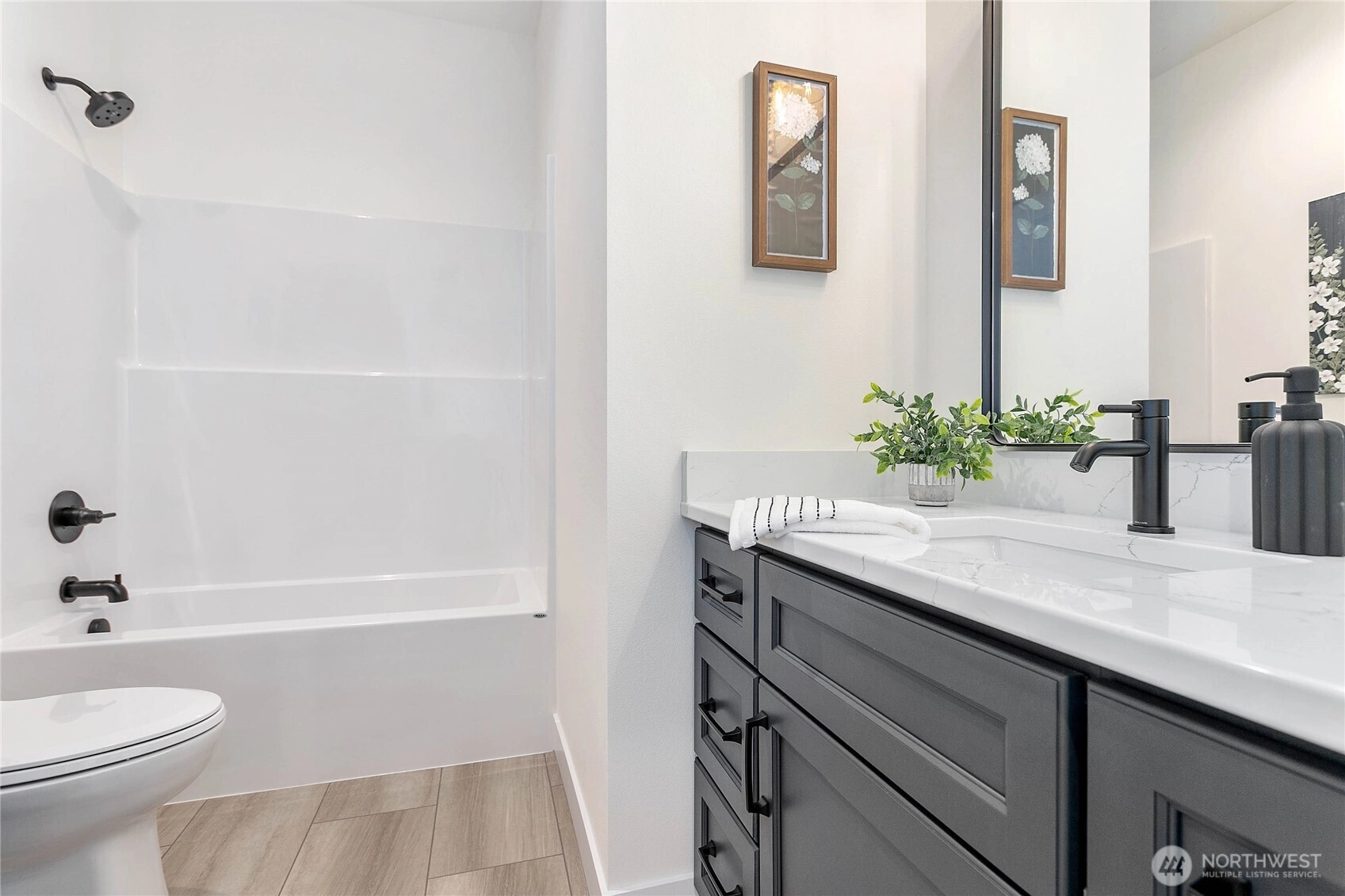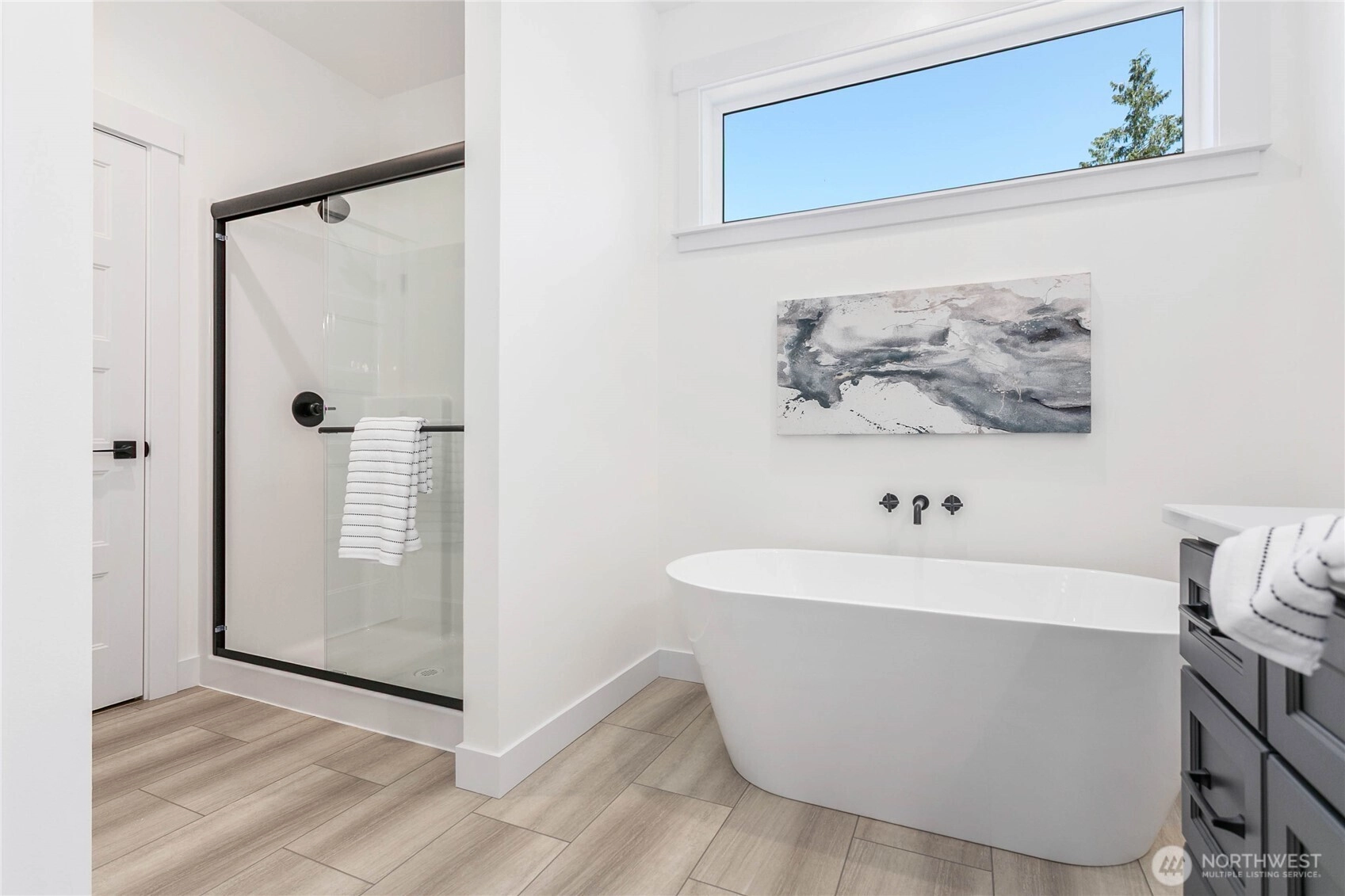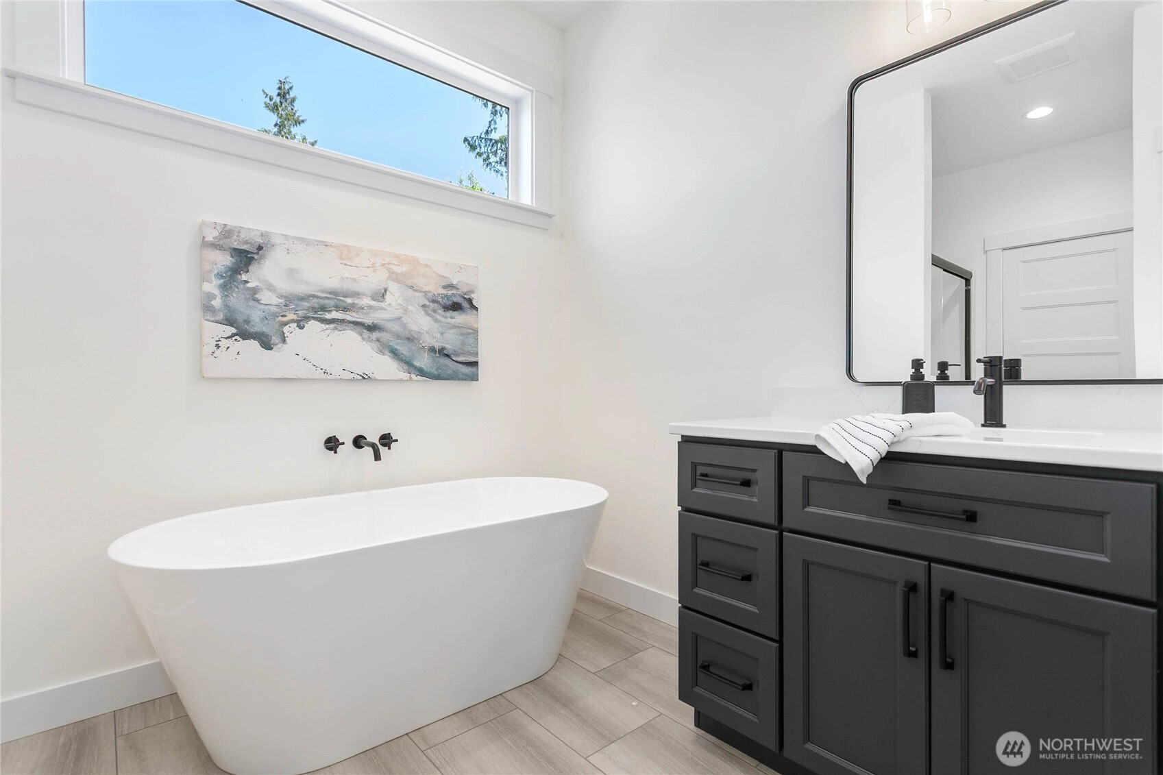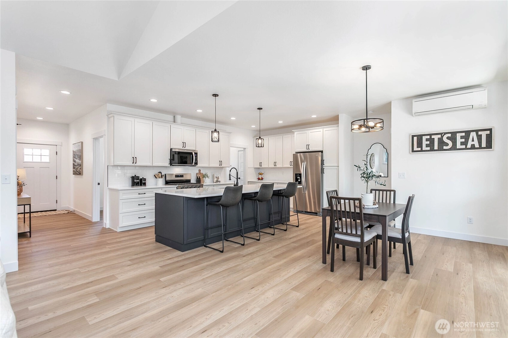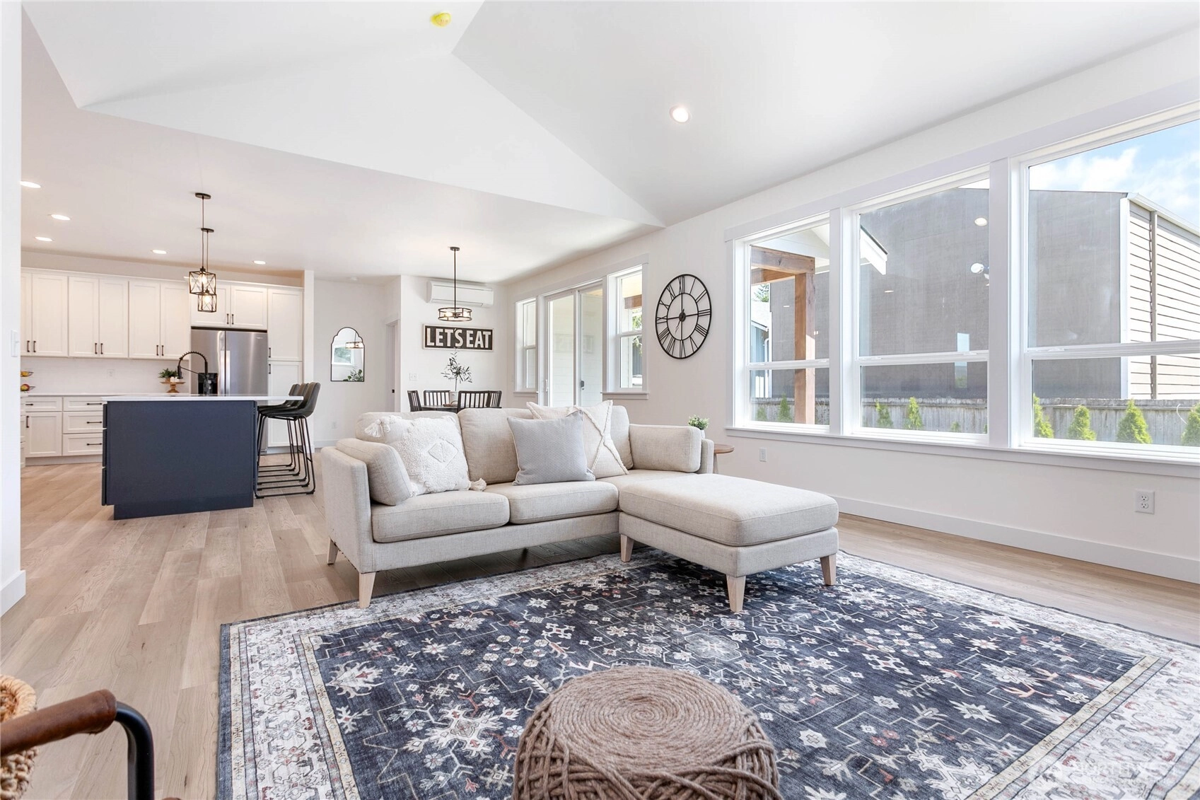 Beautiful new Pacific Edge Builders home w/ 4 bed & 2 bath on one level w/ large 3 car garage! Custom designed finishes including quartz countertops & LVP flooring throughout. Upgrades including gas fireplace & air conditioning. Large kitchen w/ custom cabinetry, tile backsplash and stainless steel appliance package. Open design concept with vaulted living room and functional floor plan. Primary bedroom with large walk in closet, bath with soaker tub & separate walk in shower. Large covered patio w/ gas hookup great for year round grilling and entertaining. Great location in a neighborhood of new homes with a short walk to Everson Elementary School and community park. Vacant and move in ready!