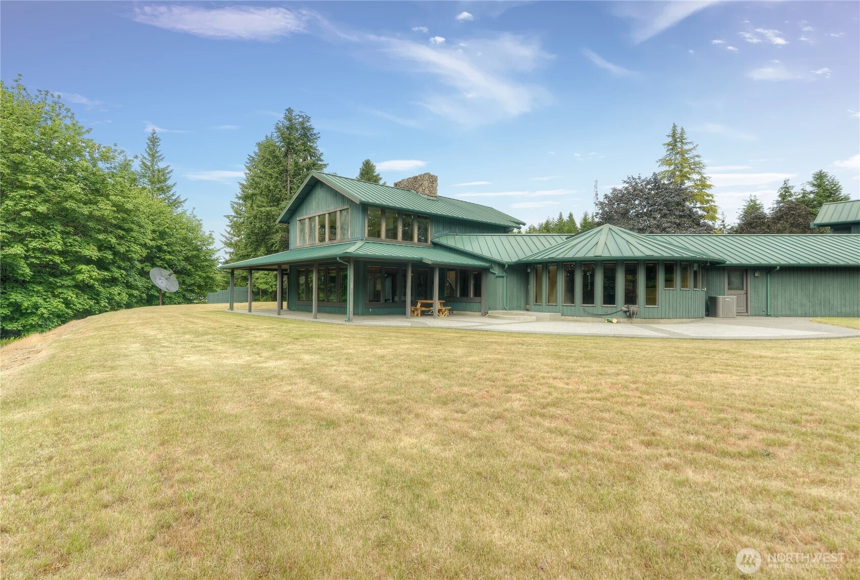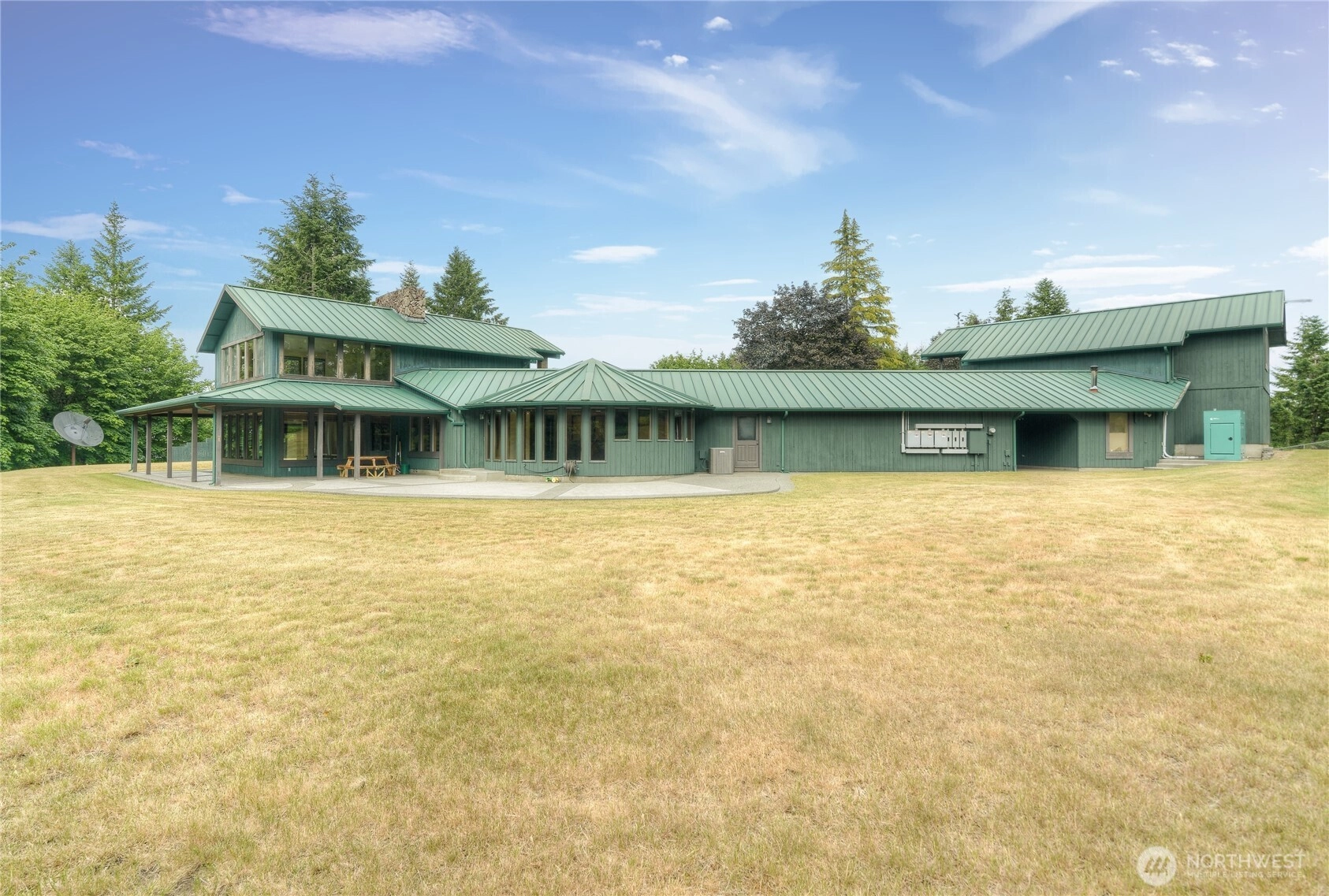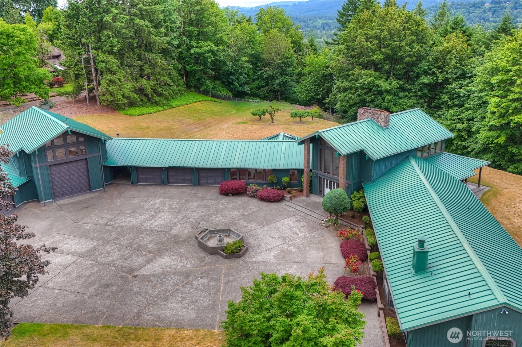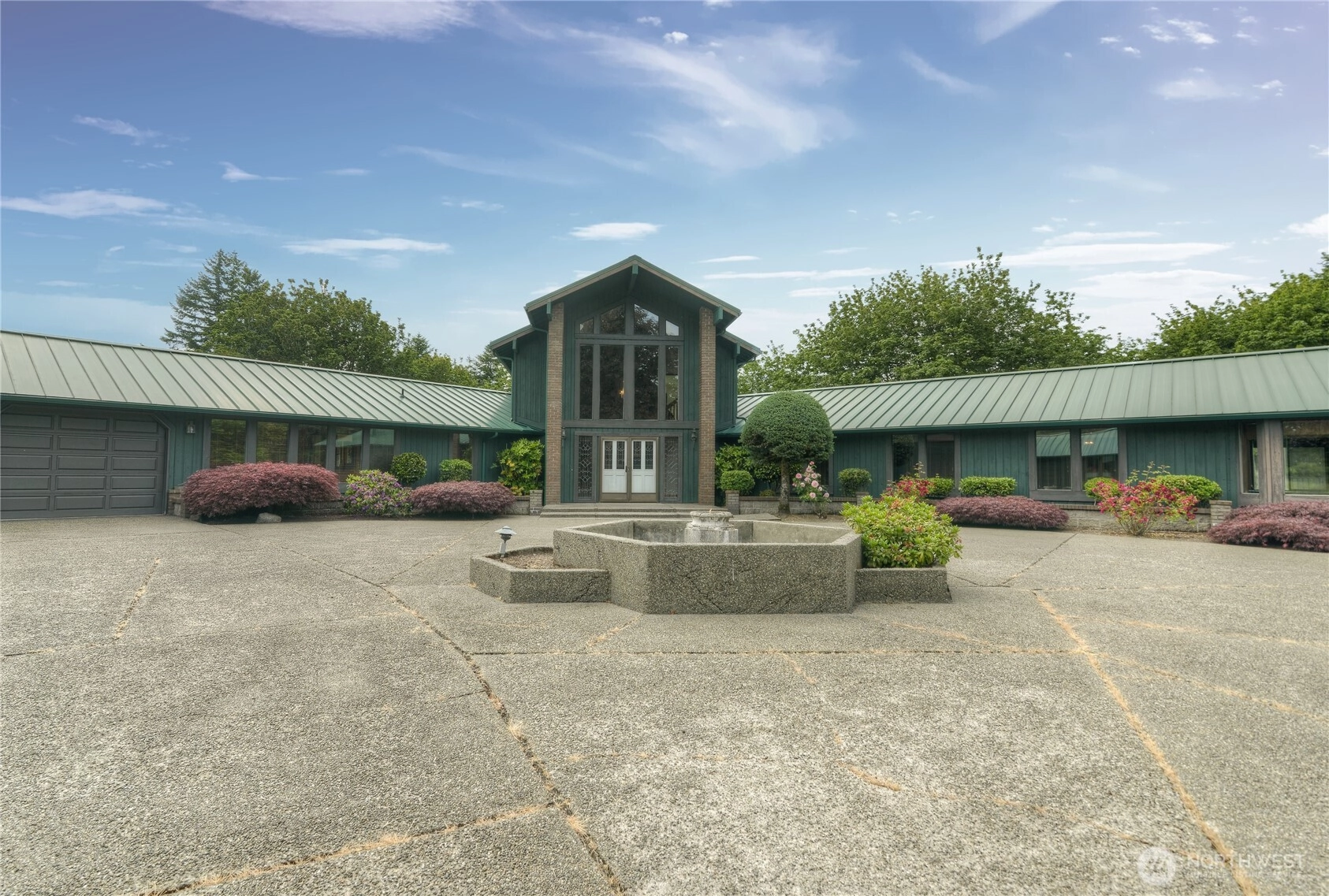 One-of-a-kind 4,680+/- SF rambler on Bush Mt with 5+/- acres and unmatched charm! Featuring 3 bedrooms, 2.5 bathrooms, an office, and a light-filled bonus room. The circular kitchen is wrapped in windows, opening to a spacious patio—perfect for entertaining. Dual-level fireplaces warm the living and bonus rooms, while the primary bedroom retreat offers a cozy fire stove, jetted tub, and walk-in closet. Arrive through a gated drive to a grand courtyard with an oversized 5-car garage. Home is connected to a 60KW Cummins generator. Truly exceptional!