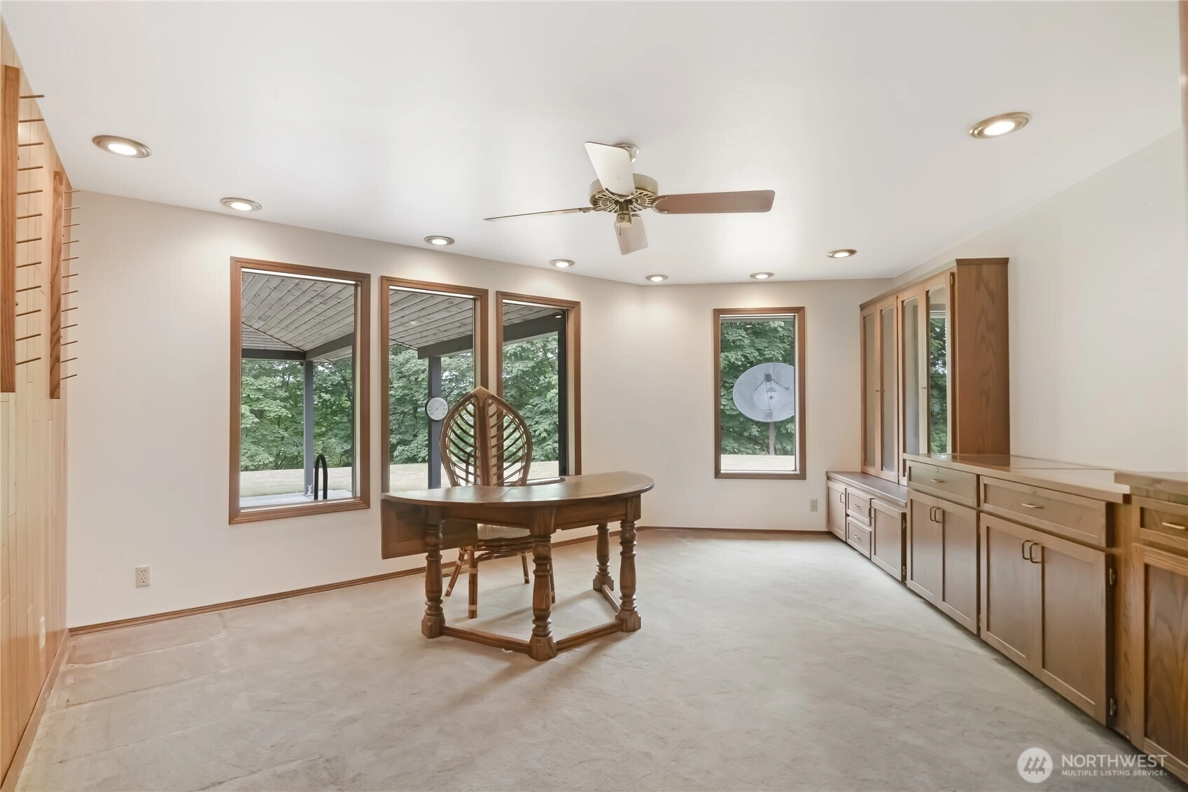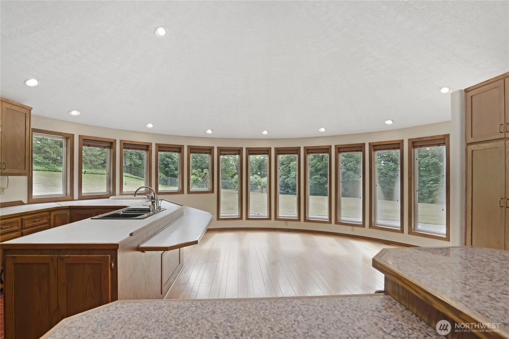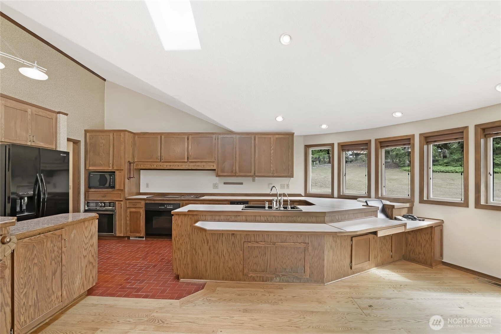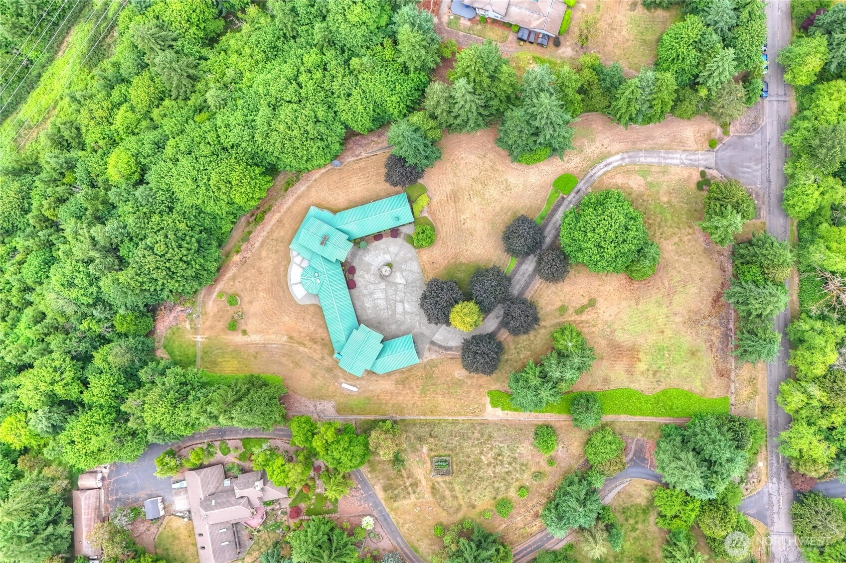 One-of-a-kind 4,680+/- SF rambler on Bush Mt with 5+/- acres and unmatched charm! Featuring 3 bedrooms, 2.5 bathrooms, an office, and a light-filled bonus room. The circular kitchen is wrapped in windows, opening to a spacious patio—perfect for entertaining. Dual-level fireplaces warm the living and bonus rooms, while the primary bedroom retreat offers a cozy fire stove, jetted tub, and walk-in closet. Arrive through a gated drive to a grand courtyard with an oversized 5-car garage. Home is connected to a 60KW Cummins generator. Truly exceptional!
