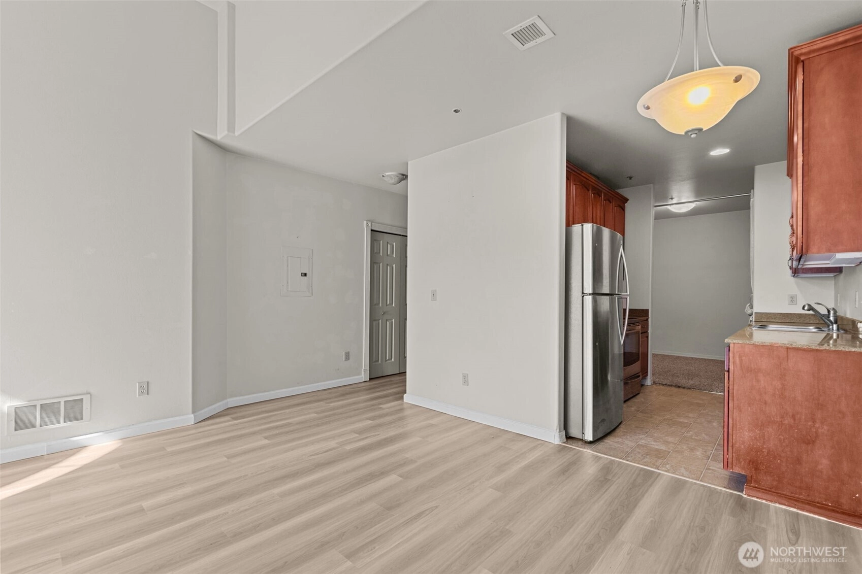 Welcome to Grenwich Condominiums This home is Price to Sell. Only steps away from Downtown Everett, this Urban 1 bedroom 1 full bath Studio has huge potential! Dedicated parking, new LV Flooring (2025) Custom cabinets for ample storage, Massive 20ft high ceilings and a full kitchen and new microwave. This home also includes a large storage unit located in the secure parking garage, right next to your assigned parking spot. Included are stackable washer and dryer in home. The building offers excellent security with only 12 units all on one floor, & friendly neighbors who watch out for each other. Well maintained HOA and VA approved! Please call to book your appointment today! No rental Cap! Seller was renting condo for $1495