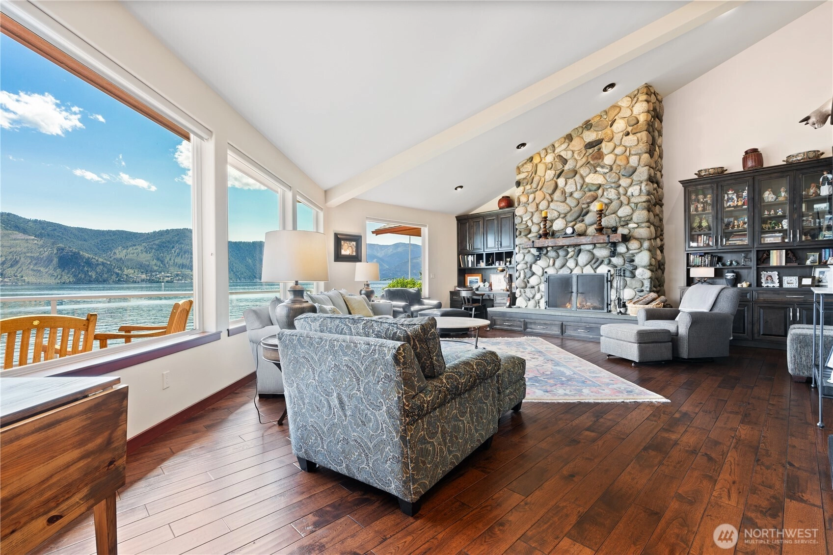 Welcome to Bella Manor — a breathtaking waterfront estate offering 110 feet of pristine shoreline on Lake Chelan. Nestled on a lush, one-acre sanctuary bursting orchard with a bounty of fruit trees and vibrant gardens, from apples and blueberries to vegetables and more.Experience sweeping 200-degree views of the lake from nearly every room in the home, with multiple outdoor and indoor spaces designed for unforgettable entertaining. Don't miss the wood burning pizza oven. This exquisite residence is adorned with high-end finishes, rich hardwood flooring, custom cabinetry, and striking river rock fireplaces that blend natural elegance with modern luxury.Bella Manor is the ultimate expression of refined lakefront living.