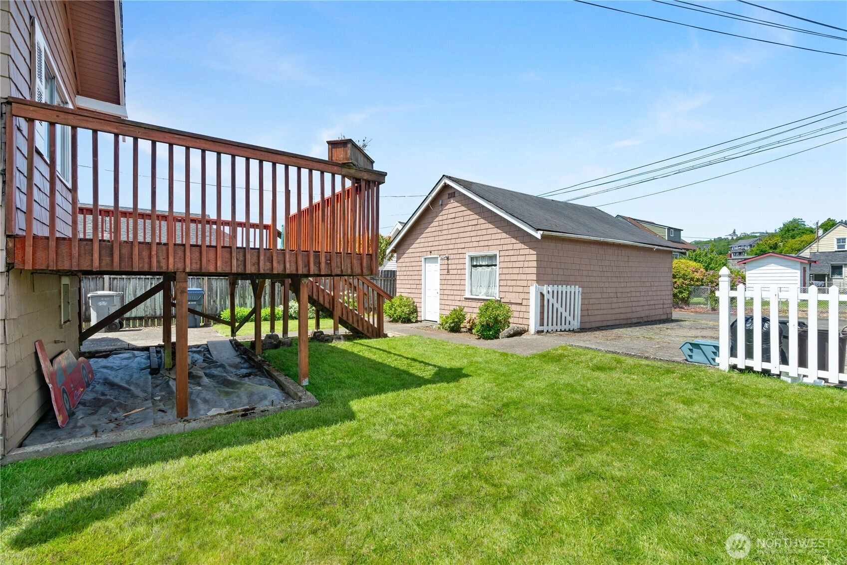 This inviting virtually staged Aberdeen craftsman offers classic charm with functional space rarely available! This well-maintained classic home offers 1184~sqft of spacious living with a 2 beds, 1 full bath. Large living room adorned with a cozy wood-burning fireplace offers a warm and inviting atmosphere. The formal dining room and kitchen provide the perfect space for entertaining, while the two-car garage includes additional storage. Downstairs you'll find large unfinished basement that's walking height! Upstairs is also a large unfinished attic, accessed via staircase in one of the bedrooms. Solid home ready for its new owner!