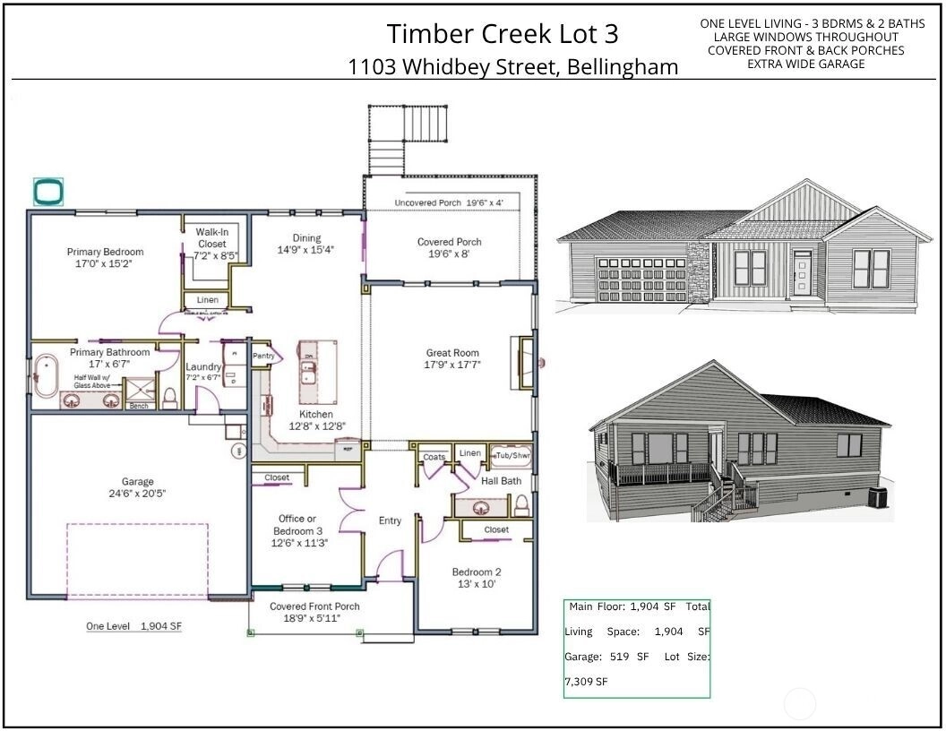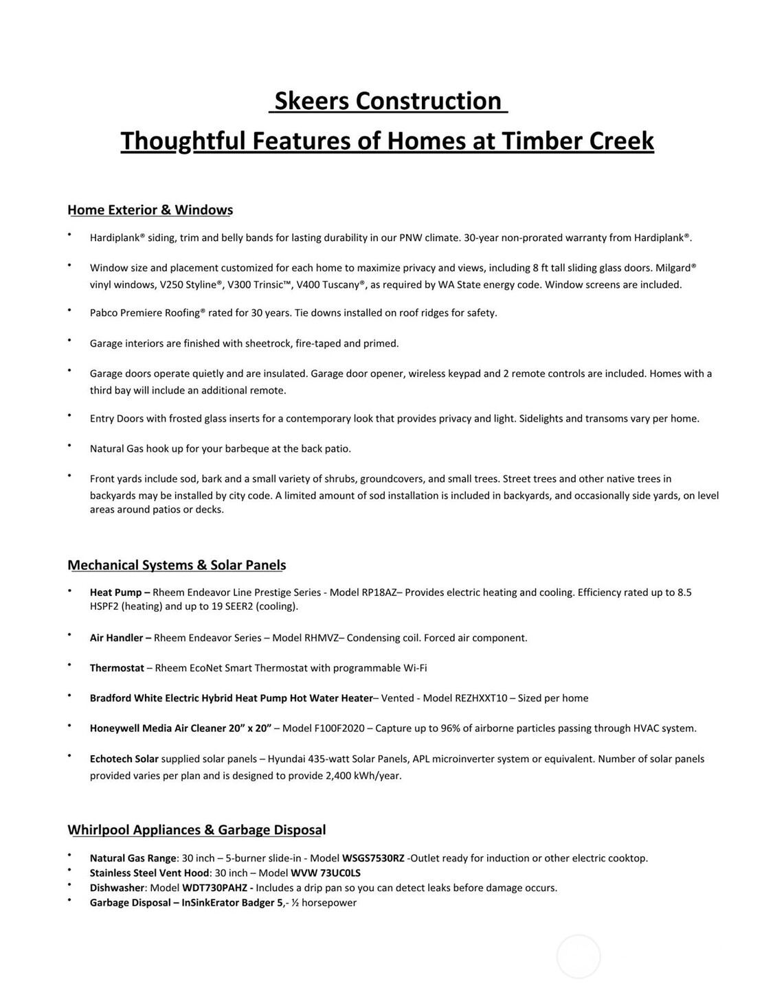 Presenting Timber Creek, the newest neighborhood from Skeers Construction, Bellingham's foremost builder of new home communities. Great location is peaceful and woodsy, but close to Whatcom Falls Park and just two miles from downtown. Mountain bikers can easily access Galbraith Mt from the nearby powerline to Karma Trail. At 1904 sq ft, this is the perfect sized one-level home that is so hard to find, at a rapidly disappearing price point for new homes in town. The great room floor plan is open and spacious, with a wonderful covered deck for year round outdoor enjoyment. Excellent energy efficiency with solar panels, heat pump heating and cooling, and a hybrid heat pump hot water heater. Great schools. On track for end of Sept completion.