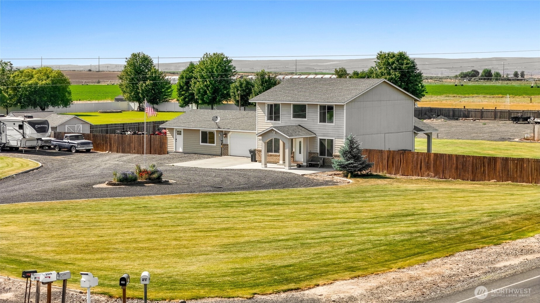 Country Living Close to Town! This 3-bdrm, 2.5-bath home sits on 2.48 fully fenced acres—perfect for animals like cows, horses, or goats. The property includes open space, a dog run, a garden area, a patio, and several outbuildings. There’s about 1,000 feet of fencing and irrigation for the pasture, with water and irrigation costs of around $100 per mo. Inside, you’ll find a walk-in pantry, a walk-in closet, and all appliances included. There’s also an unfinished bonus room—ideal for guests, storage, or a hobby space. Outside, enjoy RV parking with a 50-amp hookup (great for an RV or electric vehicle), a sprinkler system, and a desirable corner lot. Experience peaceful country living with the convenience of being close to downtown Othello!