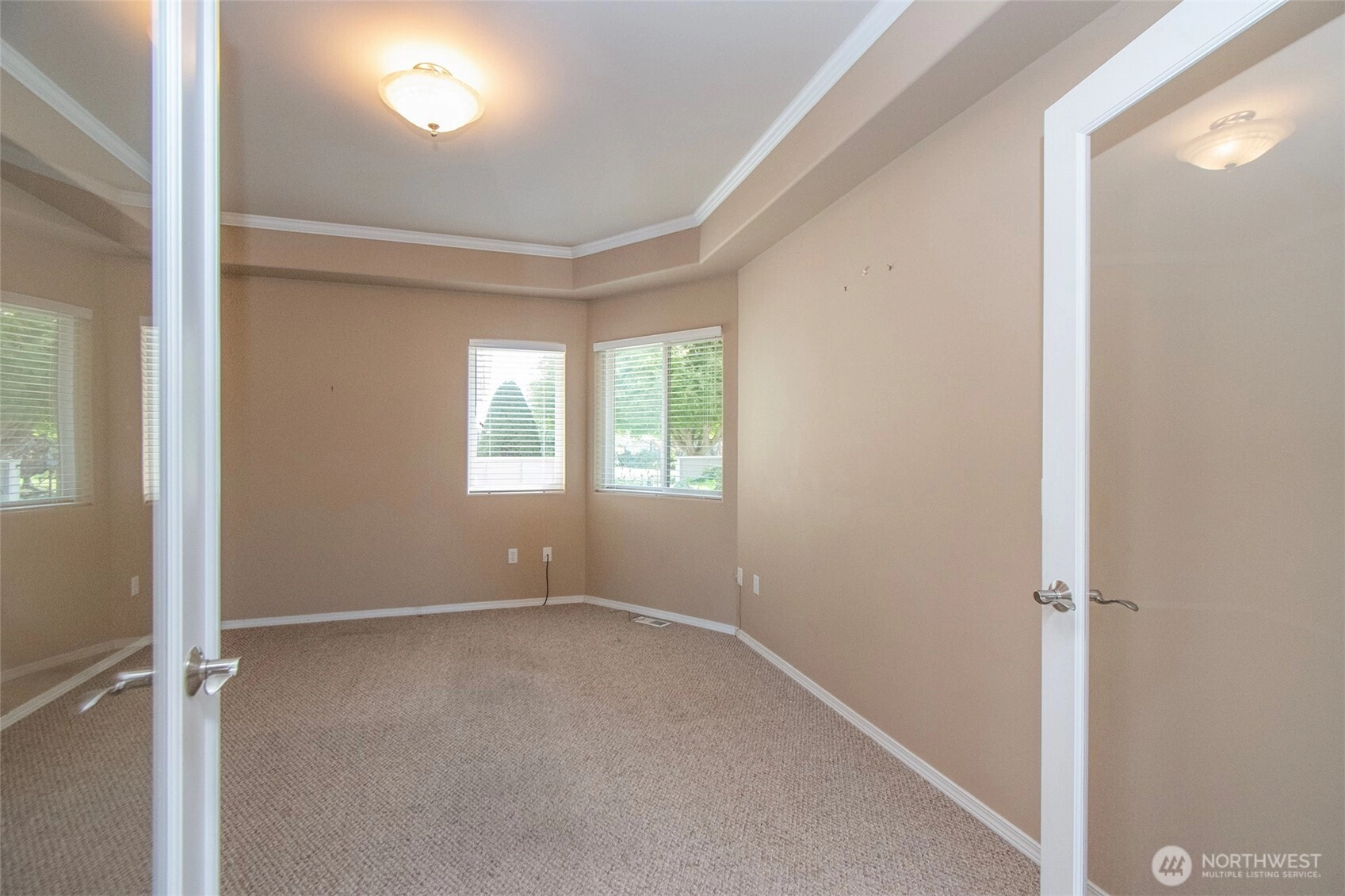 MOUNTAIN VIEW - TOWNHOUSE LIVING AT ITS BEST! Enjoy the grandeur of the Olympics from this townhouse built in 2004 by Estes Builders. Spacious 1,796 sq ft with 2 bed 2 bath and large office/den. Enter through the private gated courtyard w/a tranquil water feature. Great room has 9 ft ceilings, shutters, & propane fireplace. The spacious kitchen has Corian countertops, breakfast bar, & pantry. The large primary bedroom has a walk-in closet & attached en-suite. Newer $20,000 furnace & heat pump. The $395 monthly fee covers the exterior maintenance, landscaping, & insurance. Sunland water & sewer is $132 monthly - fixed amt. Sunland HOA is $33 a month - swimming pool, tennis & pickle ball courts, clubhouse, community beach, & meeting places.