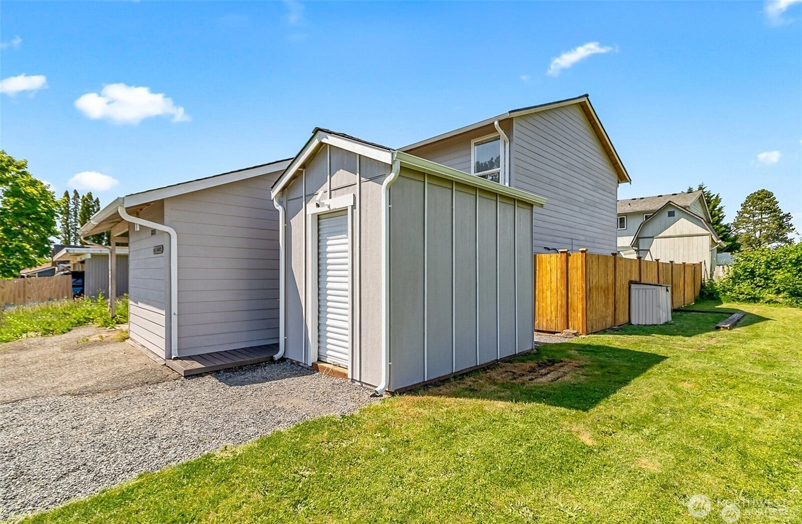 Move-In Ready 2-Bedroom Townhome in Prime Lake Stevens Location! This beautifully updated 2 bed, 1 bath townhome offers 896 sq ft of smart living space in the heart of Lake Stevens, just steps from a city park and close to shopping, dining, and highly desirable Lake Stevens School District. Newer roof and Hardie Plank siding for long-lasting durability. Timber tech deck out front, carport converted into a versatile bonus room or ideal home office. New tool shed and fence for added storage and privacy. This townhome offers both value and lifestyle. Whether you're a first-time buyer or looking to downsize, this home checks all the boxes.