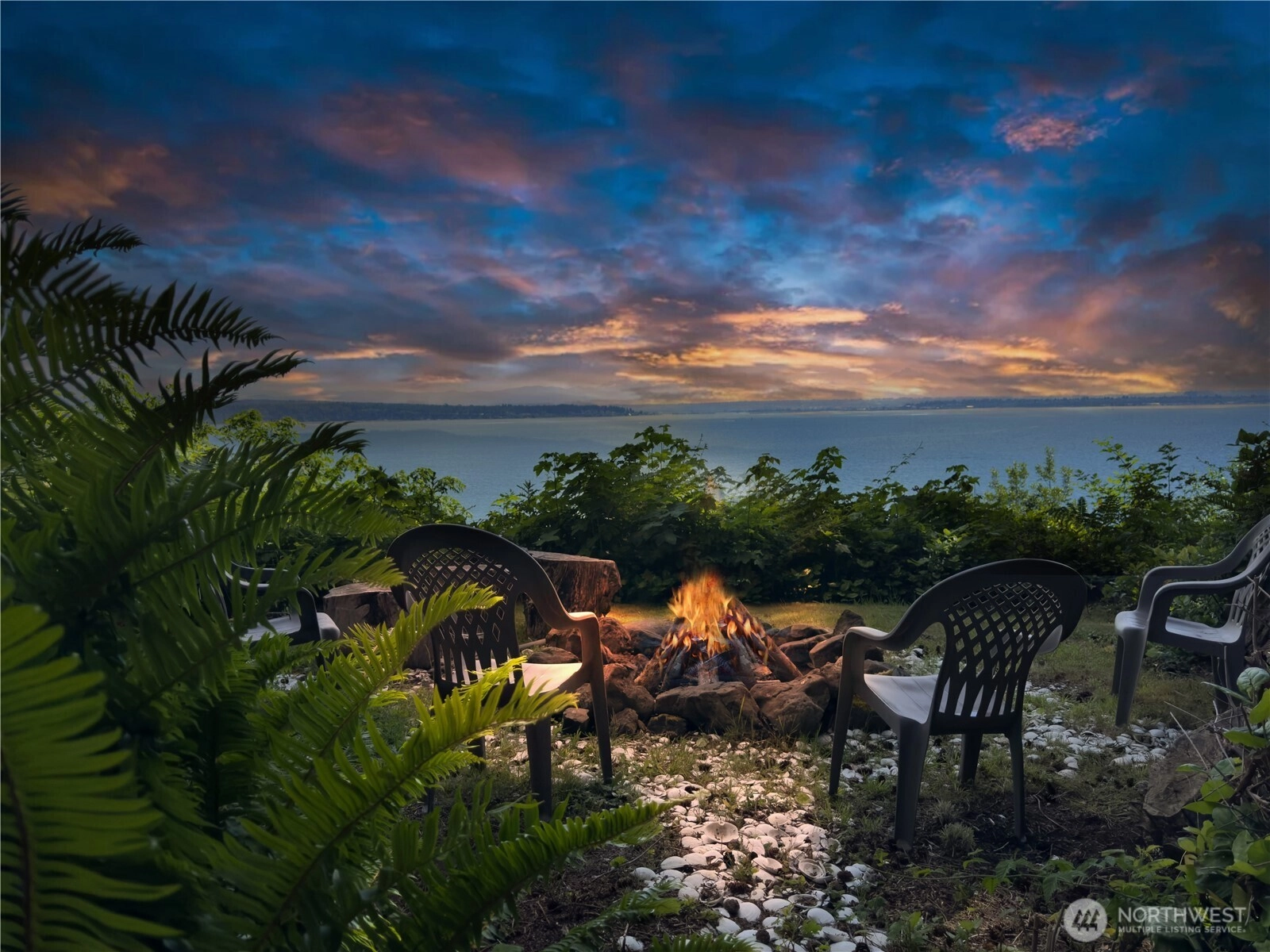 Private Island retreat with Breathtaking Views. Proven Rental Income. Nestled at end of a secluded lane, on nearly one acre with potential to build 2nd View Home or divide & sell. Rare east-facing retreat with soaring windows for sunrise views over the Cascades. Relax, entertain and watch whales on your large, wraparound deck. 3-level, open-concept home with wood-burning stove for cozy evenings. Spacious kitchen and laundry room. Primary suite with views & balcony. Custom bunk room, game room, sleeps 14, tons of storage. Firepit with views. Partially furnished. Ready to enjoy right away. Hat Island boasts 9-hole USGA Golf Course, 6-day/week private ferry, community garden, beaches, eagles, whales, crabbing, fishing, so much more.