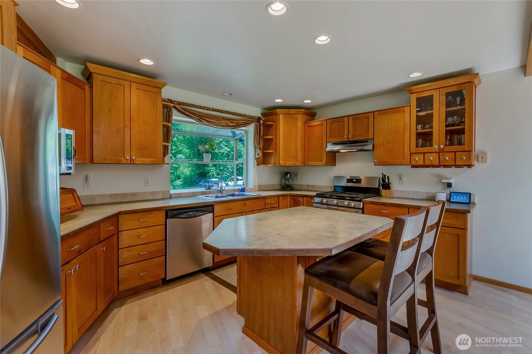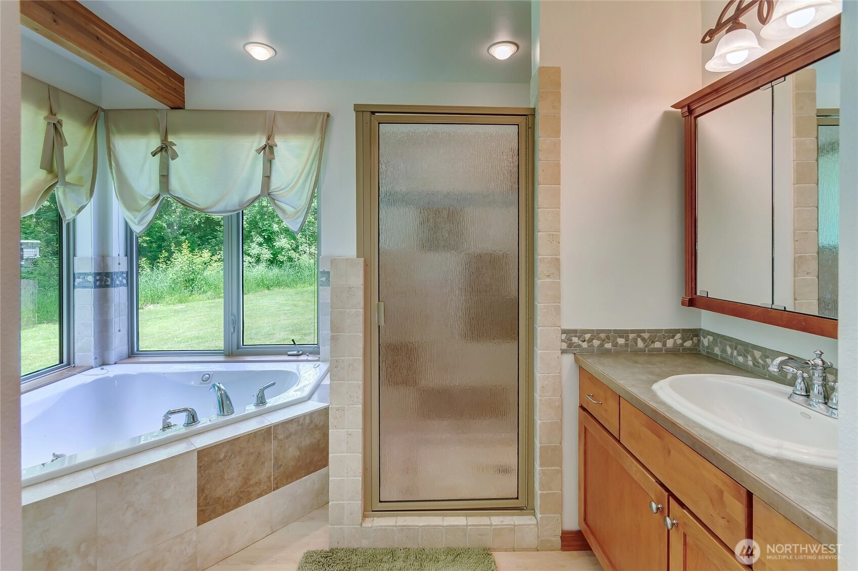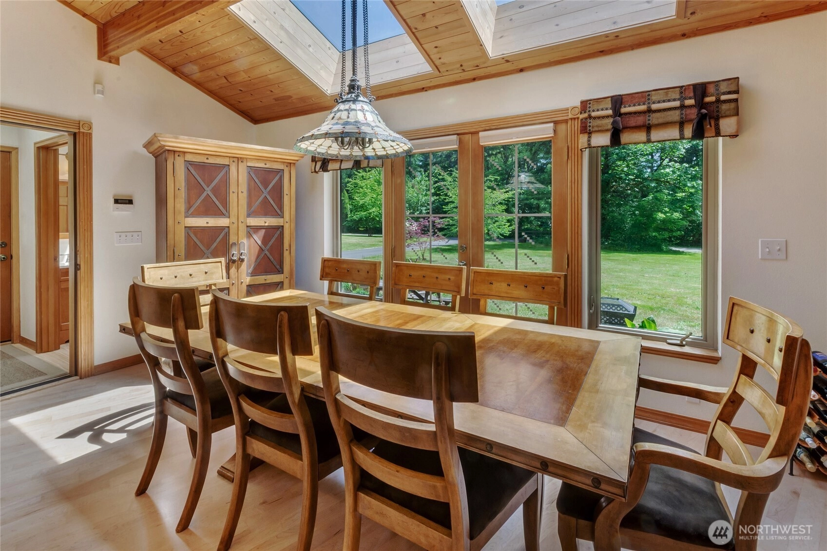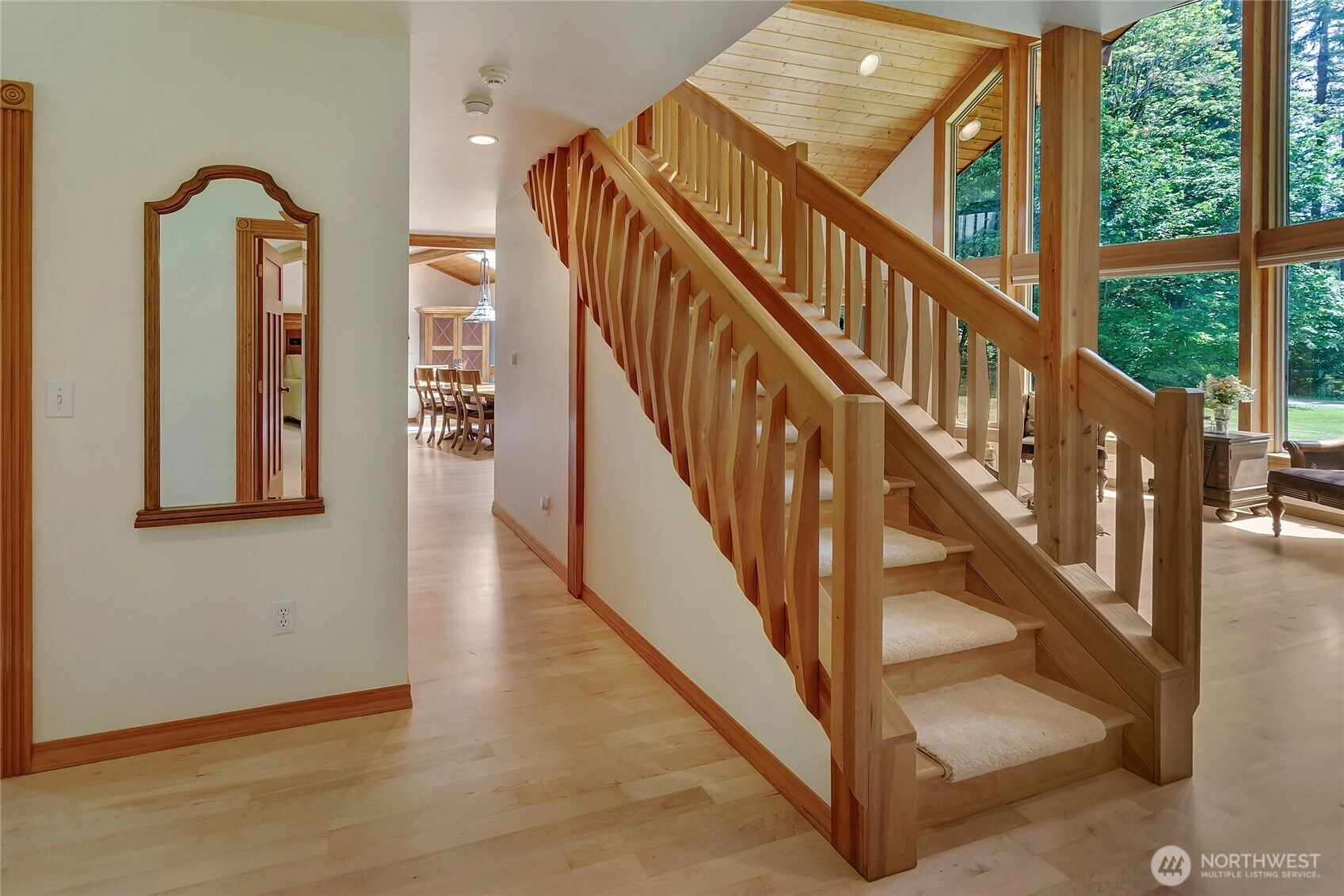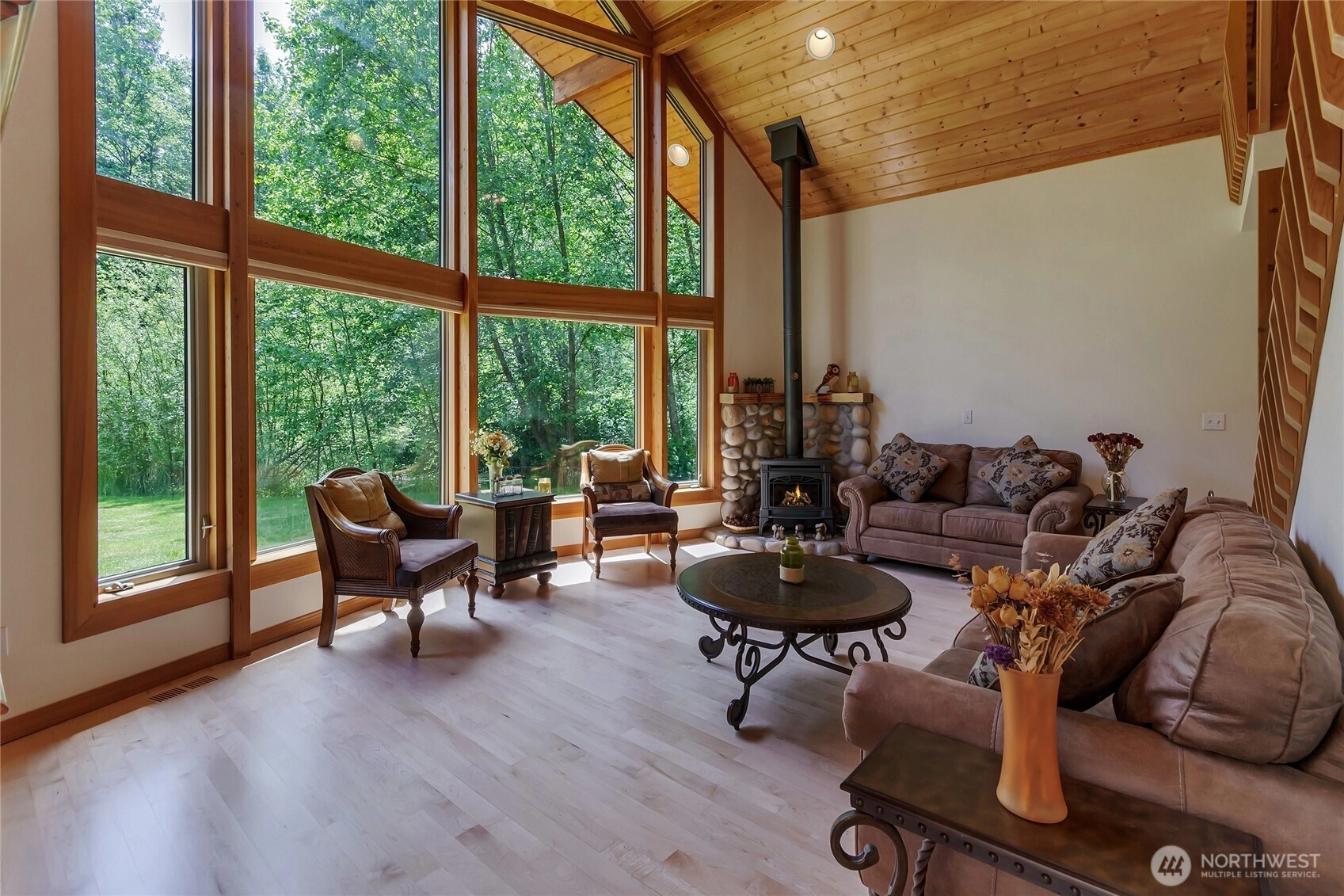 Step into your own PNW retreat w/this original-owner Lindal Cedar Home, exuding rustic charm & modern comfort*Nestled on a park-like 5-acre parcel with two access points*Main residence (2386 SF) boasts vaulted T&G ceilings that enhance the spacious, cabin-like ambiance*Expansive windows provide natural light, highlighting the finishes & create an inviting atmosphere*Features include a master on main level w/attached bath, NEW roof, NEW carpet, fresh exterior stain, heat pump, & 3-car garage*Detached barn (ADU) includes 3 stalls, versatile shop area, & 1,100 sq ft of living space on 2nd floor, complete w/full kitchen + bath*Perfect for a guest suite or MIL*Situated on a dead-end paved cul-de-sac*Ideal setting for privacy & country living