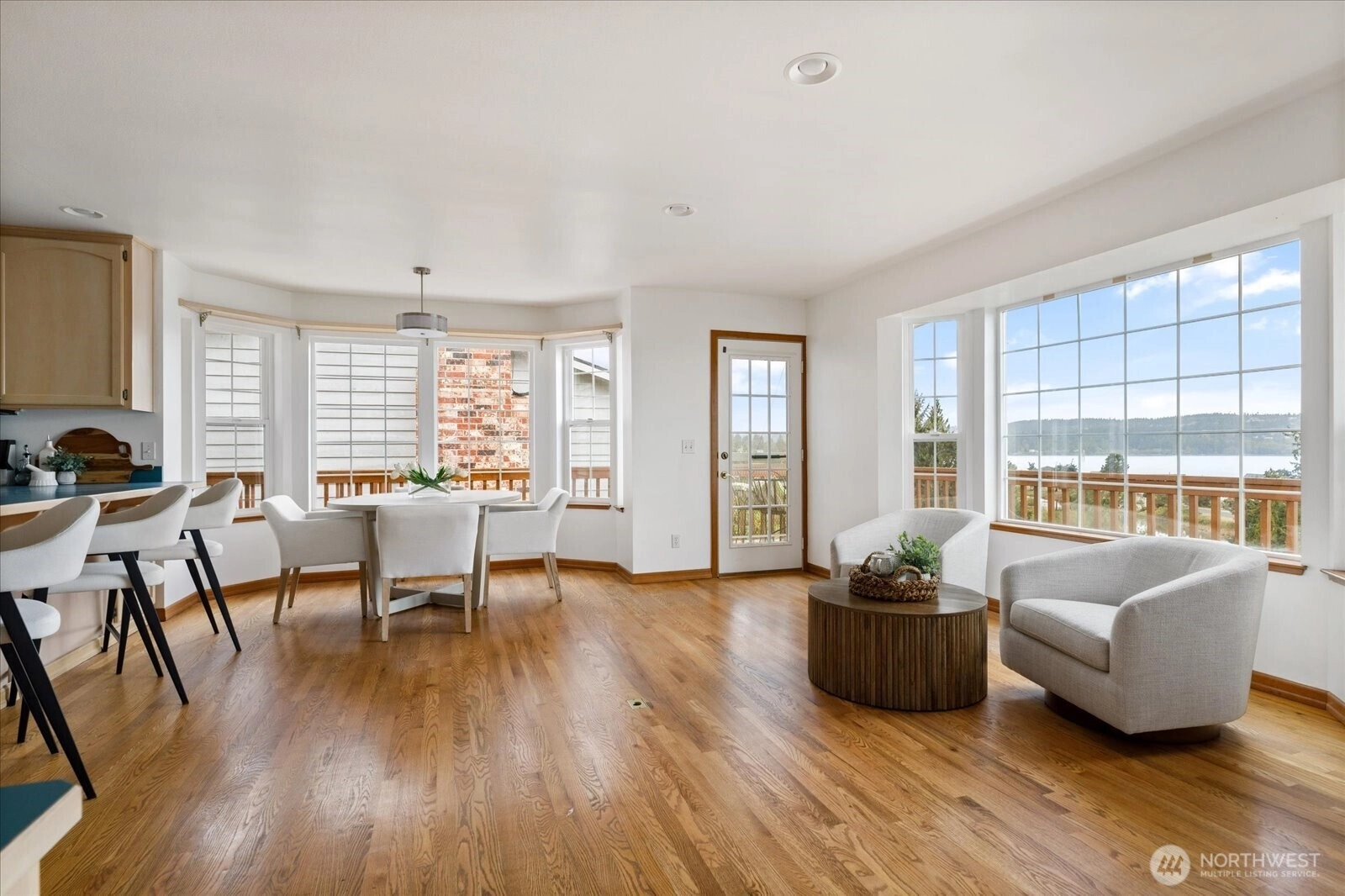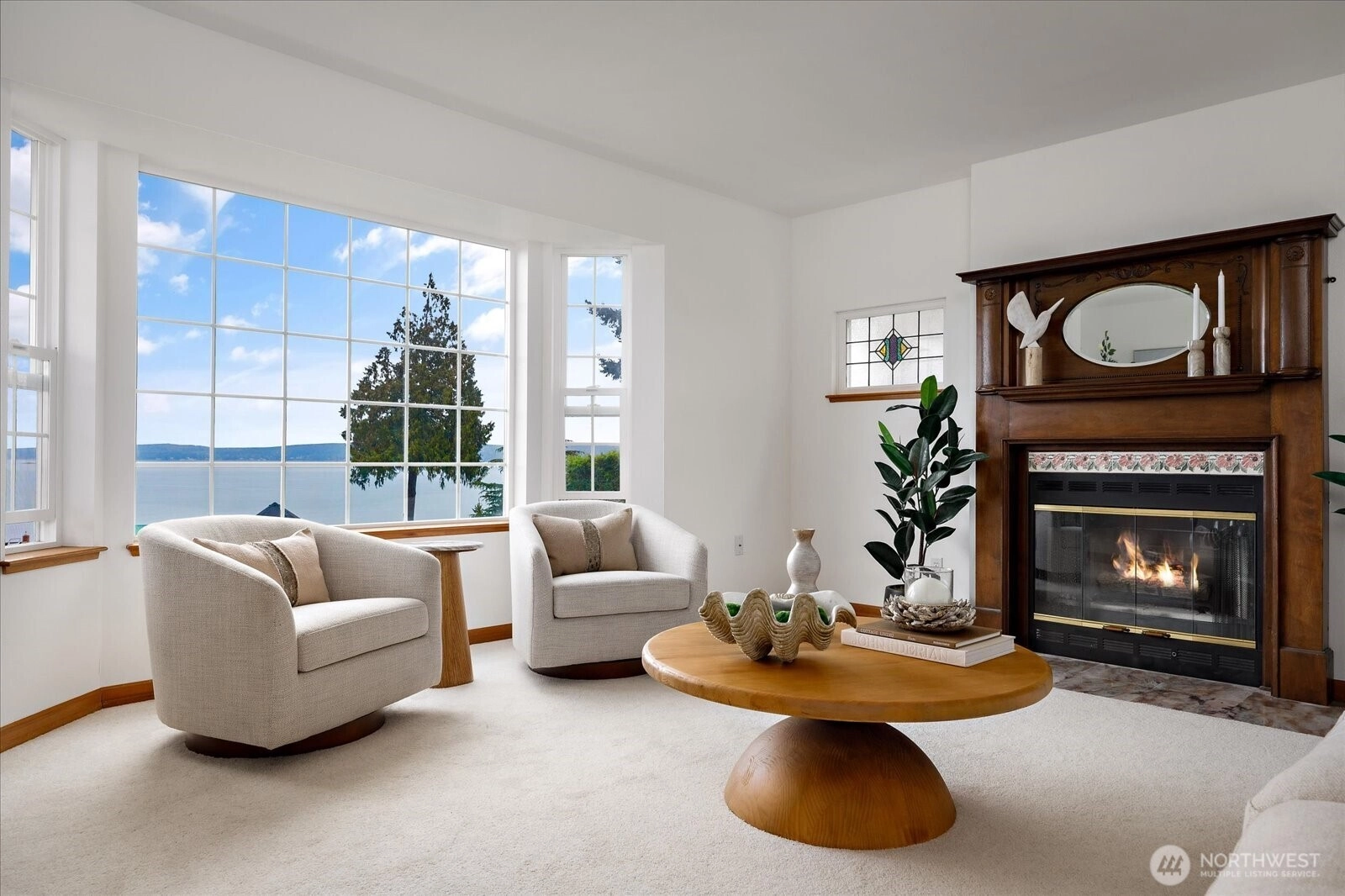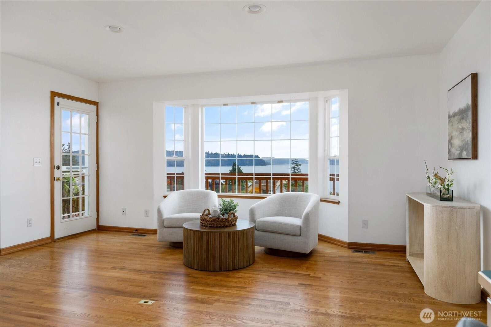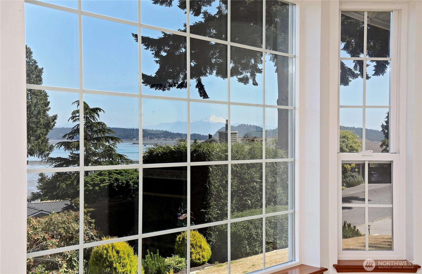 Just staged and huge price drop on this spectacular home with views of Dugualla Bay. Situated on the hillside overlooking the 29 acre Dugualla Hts Conservation Easement protected by the Whidbey Camano Land Trust. Imagine waking up every day with this peaceful setting and views from all your main living spaces. Sunny and bright with loads of windows & 3 skylights. Charming & unique touches- vintage mantel w/ mirror, stained glass windows, leaded glass, hardwood fls, 1 gas and 1 wood burning fireplace, den w/ trundle bed, and much more. Front deck to sit, relax, take in sunsets & sunrise with eagles flying by. Huge upper back yard waiting for creative touches. Minutes to the community beach and clubhouse to drop your kayak or paddle board.