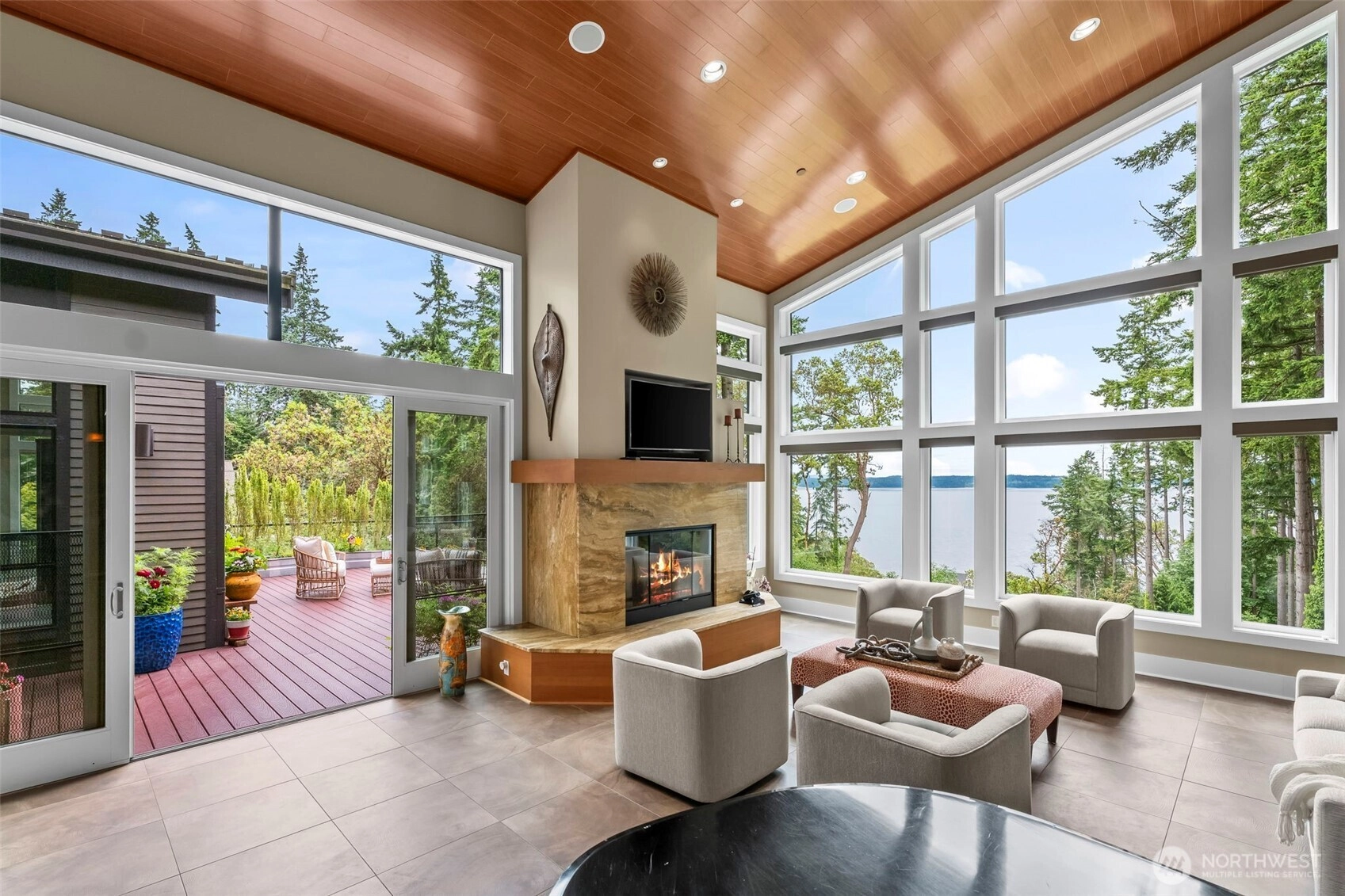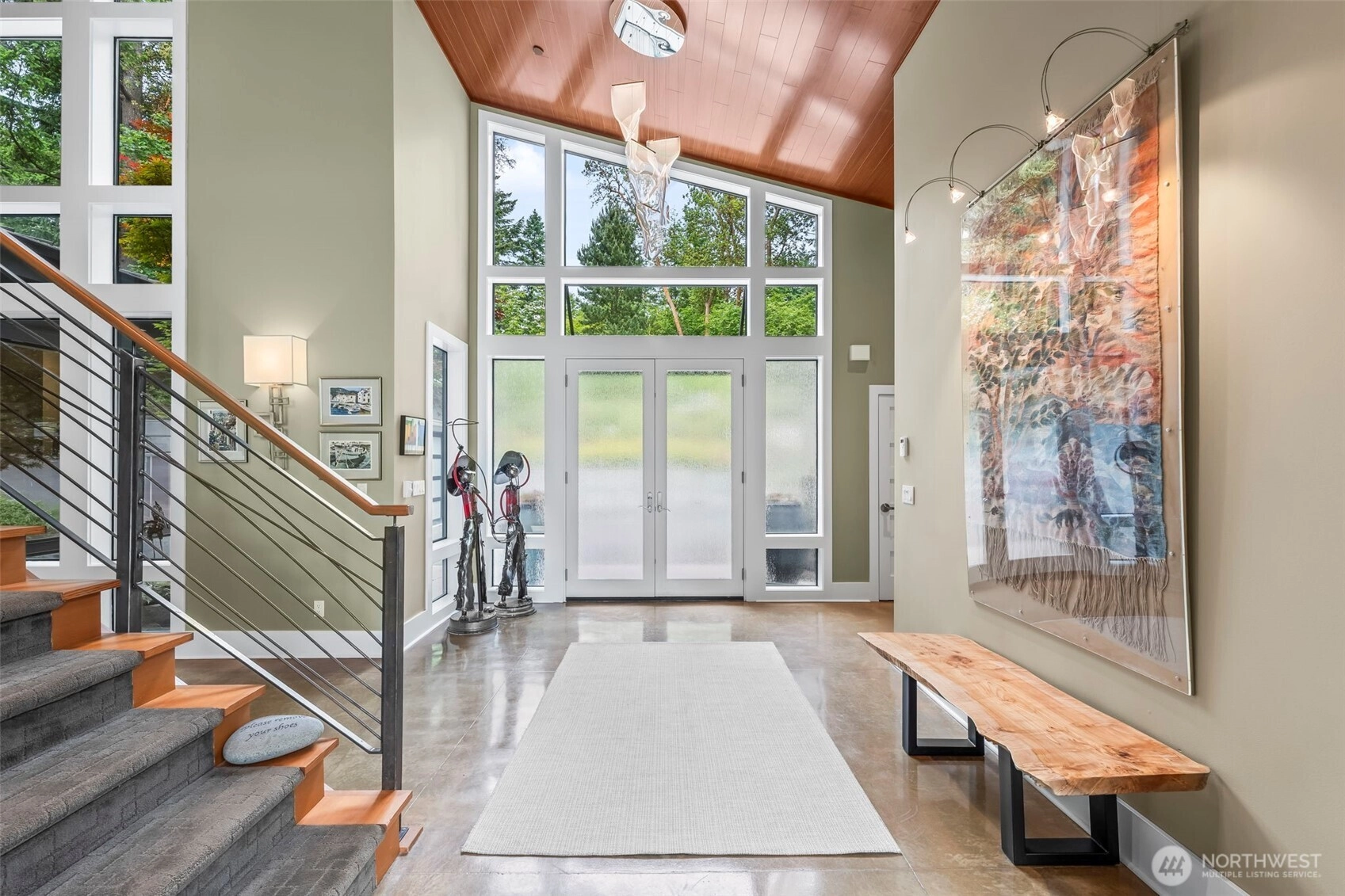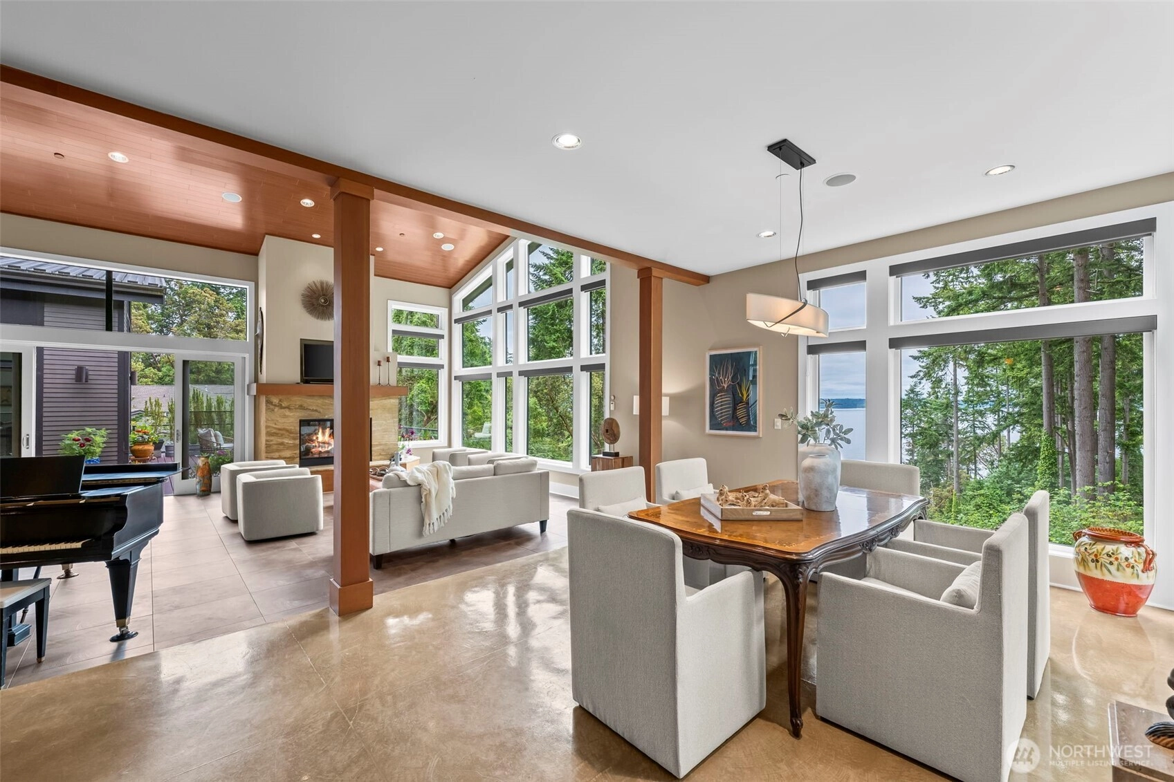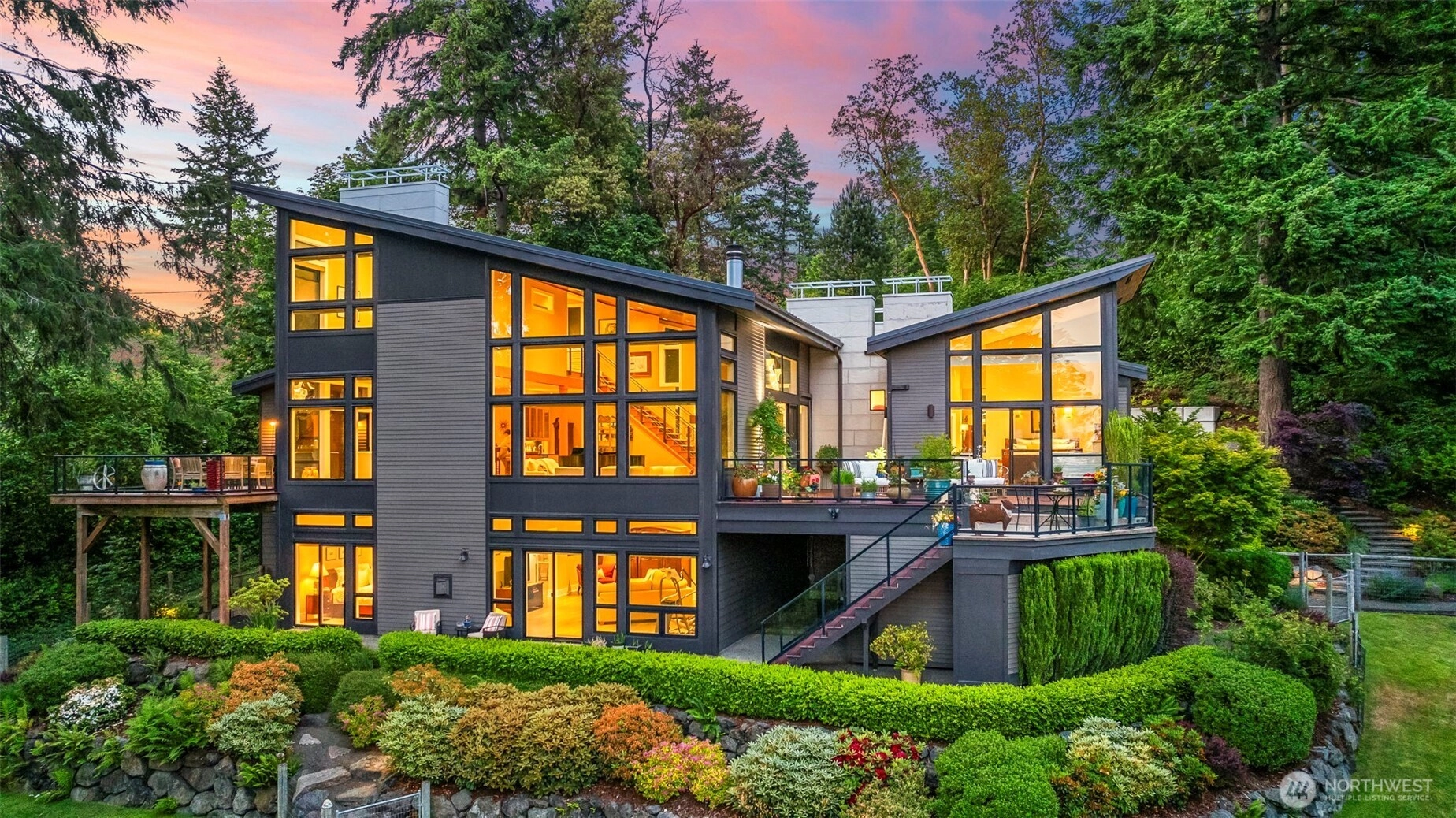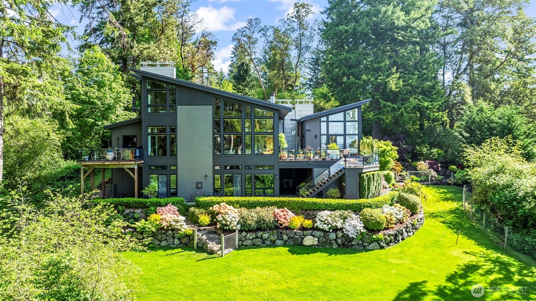 Sleek, striking, and set apart—this modern masterpiece is nestled on nearly 3 acres with dramatic views over Carr Inlet. A true expression of design and lifestyle, it offers over 5,000 SF of curated living space for those who value architectural integrity and the quiet luxury of privacy. Walls of glass flood the interiors with natural light and ever-changing views. Radiant heated floors, clean lines, and artisan craftsmanship define the open-concept spaces. The main-level primary suite is a serene escape with a sunken soaking tub and private outdoor atrium shower—spa living at home. Grand yet welcoming, sophisticated yet warm—this is a home that inspires. For entertaining, for retreat, for those who expect more.