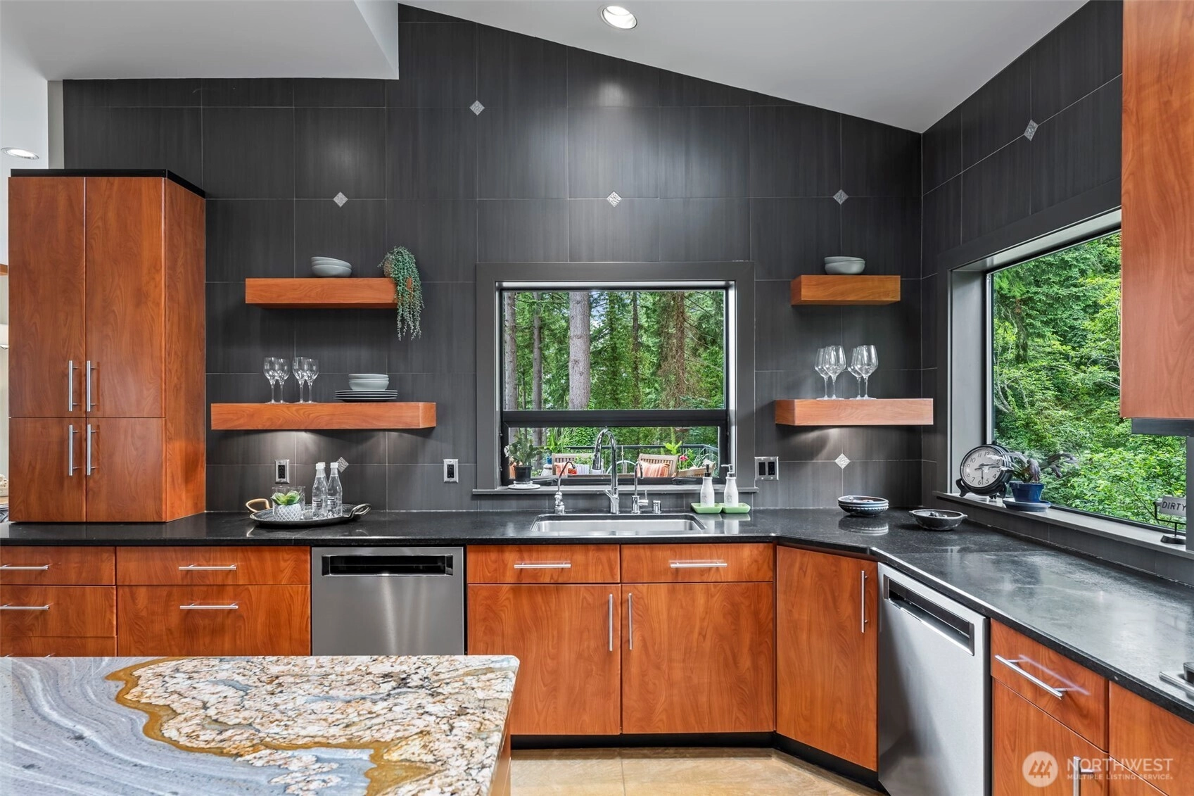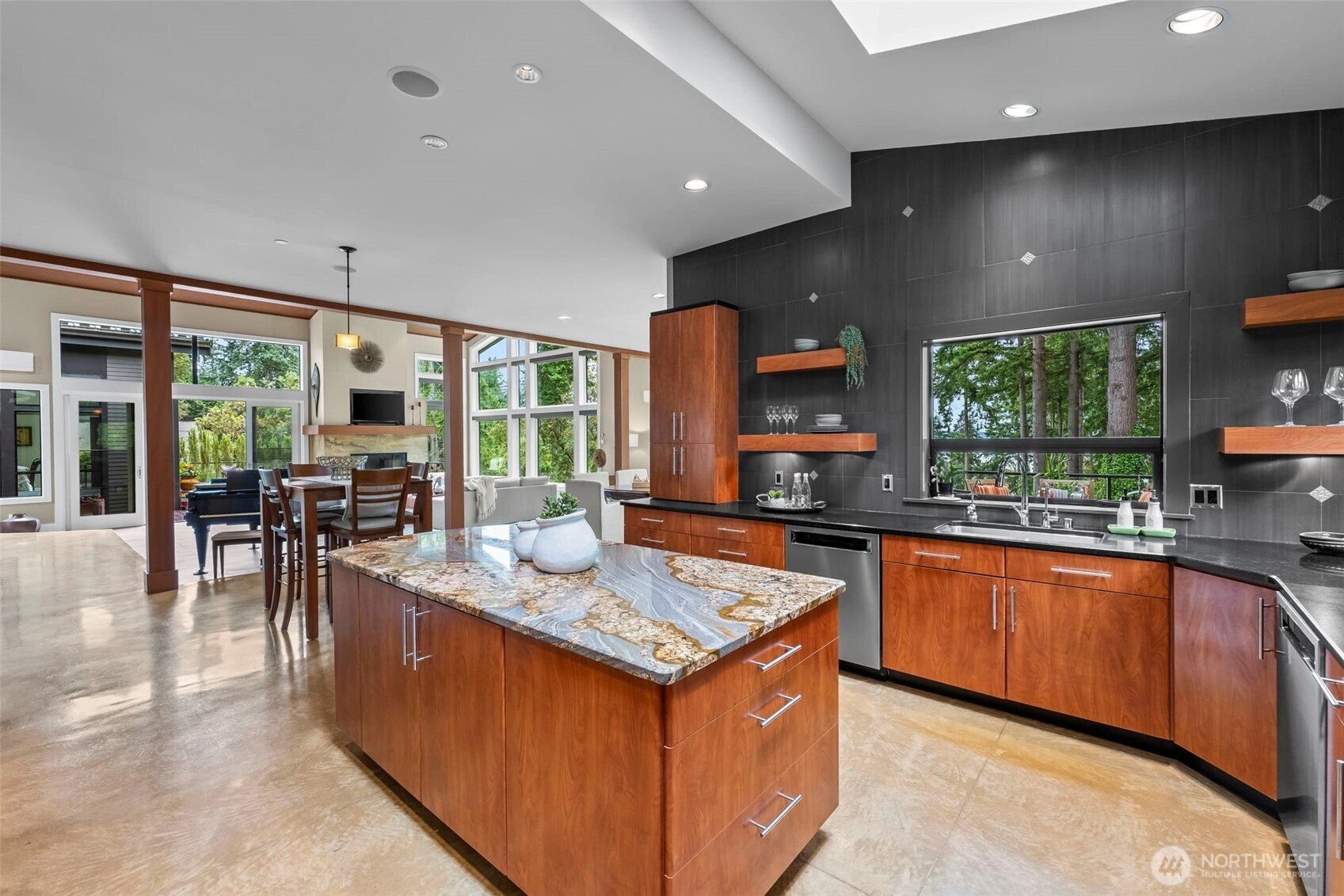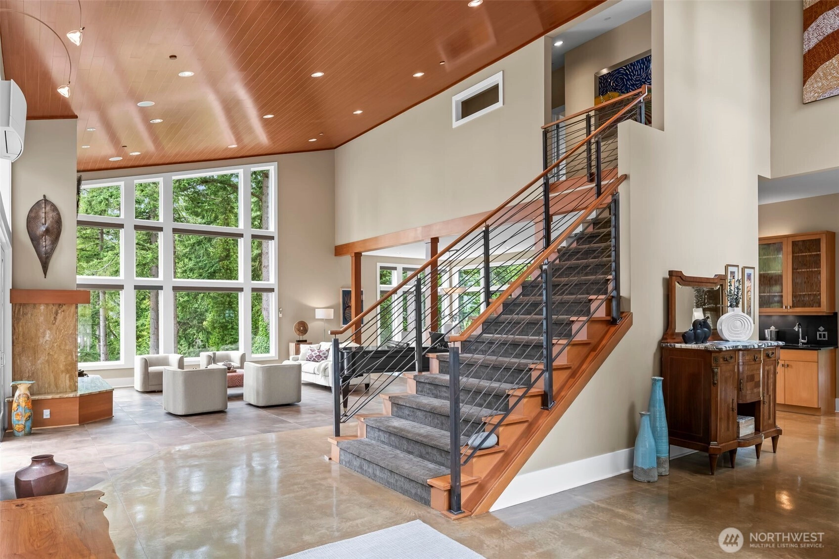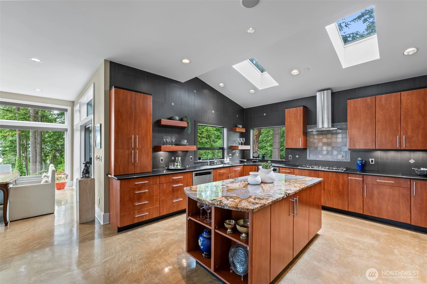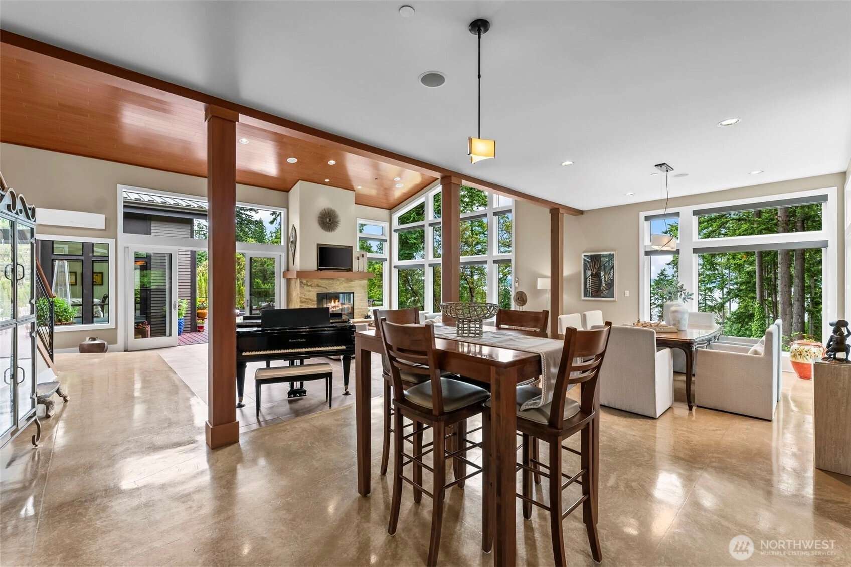 Sleek, striking, and set apart—this modern masterpiece is nestled on nearly 3 acres with dramatic views over Carr Inlet. A true expression of design and lifestyle, it offers over 5,000 SF of curated living space for those who value architectural integrity and the quiet luxury of privacy. Walls of glass flood the interiors with natural light and ever-changing views. Radiant heated floors, clean lines, and artisan craftsmanship define the open-concept spaces. The main-level primary suite is a serene escape with a sunken soaking tub and private outdoor atrium shower—spa living at home. Grand yet welcoming, sophisticated yet warm—this is a home that inspires. For entertaining, for retreat, for those who expect more.