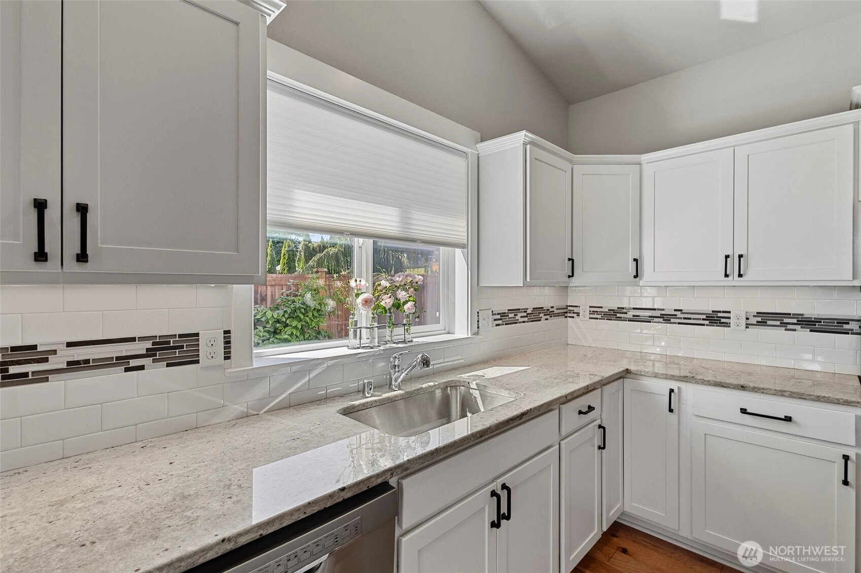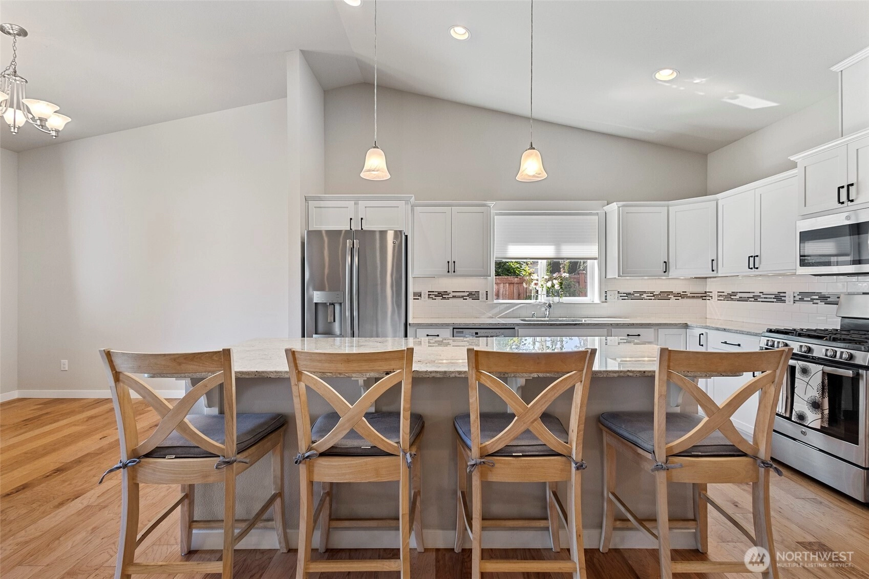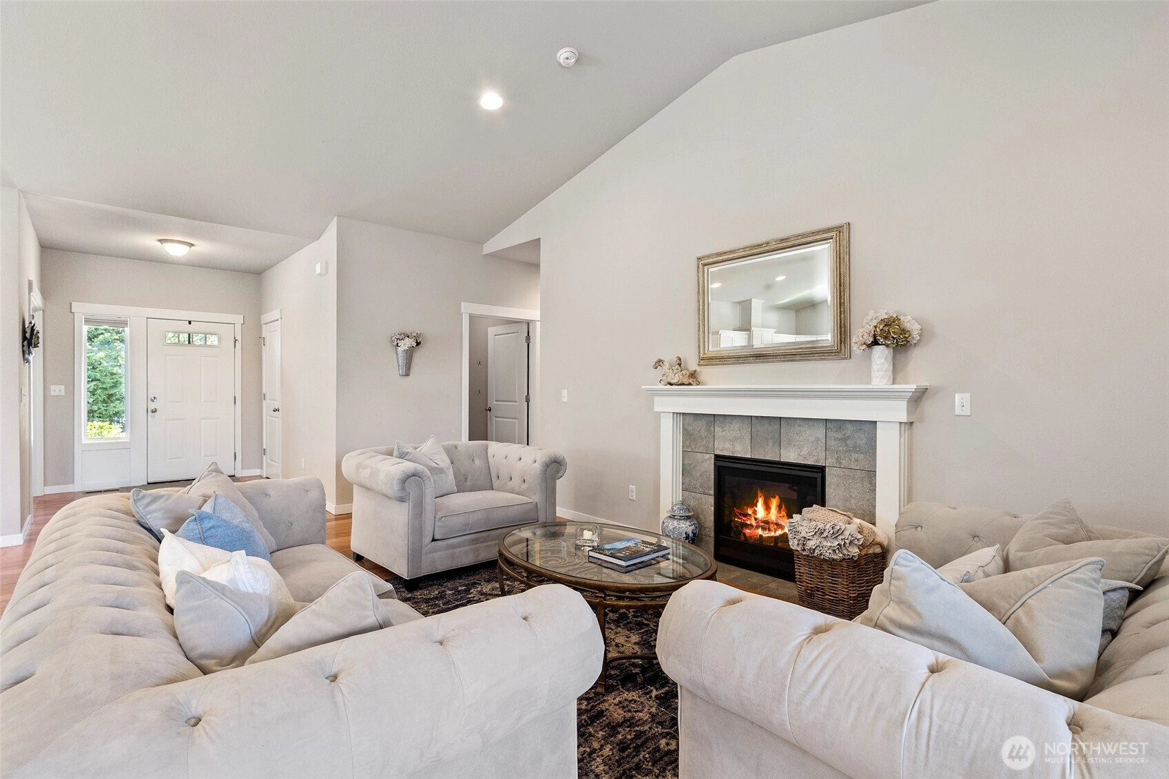 Well-maintained, one-owner rambler w/ NO-STAIR ENTRY in just over 2000 Sqr ft. The fourth bedroom offers flexibility as an office, bonus room and extra living space. Great room/open living concept, engineered hrdwd floors, cozy gas frplc and vaulted ceilings add plenty of natural light. The kitchen features a large island, granite ctps, white cabinets, SS appliances, 5-burner gas stove, pantry & ample dining area. Spacious primary suite w/ walk-in closet & private bath w/ double vanity. Enjoy a heat pump w/AC & a tankless water heater for year-round comfort. Oversized garage w/ utility sink. Level, fully fenced corner lot w/ mature landscape. Community trail & GREAT location to schools, medical, parks, pickleball crts & easy access to I-5.