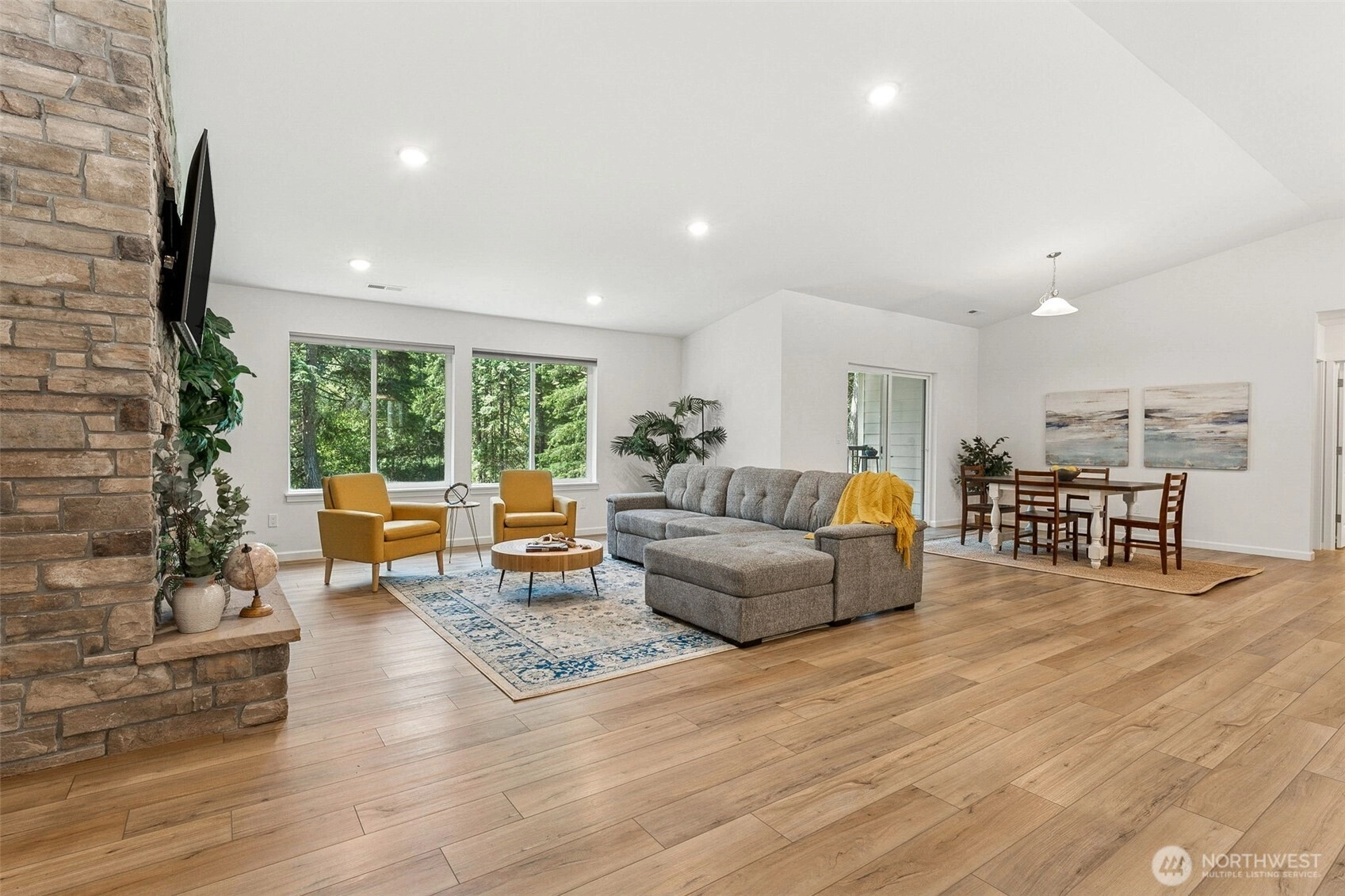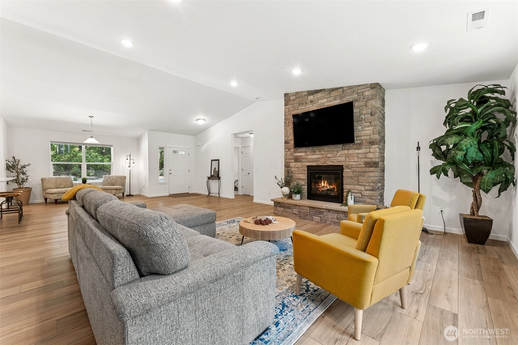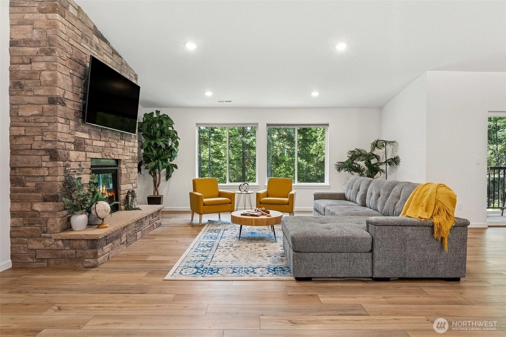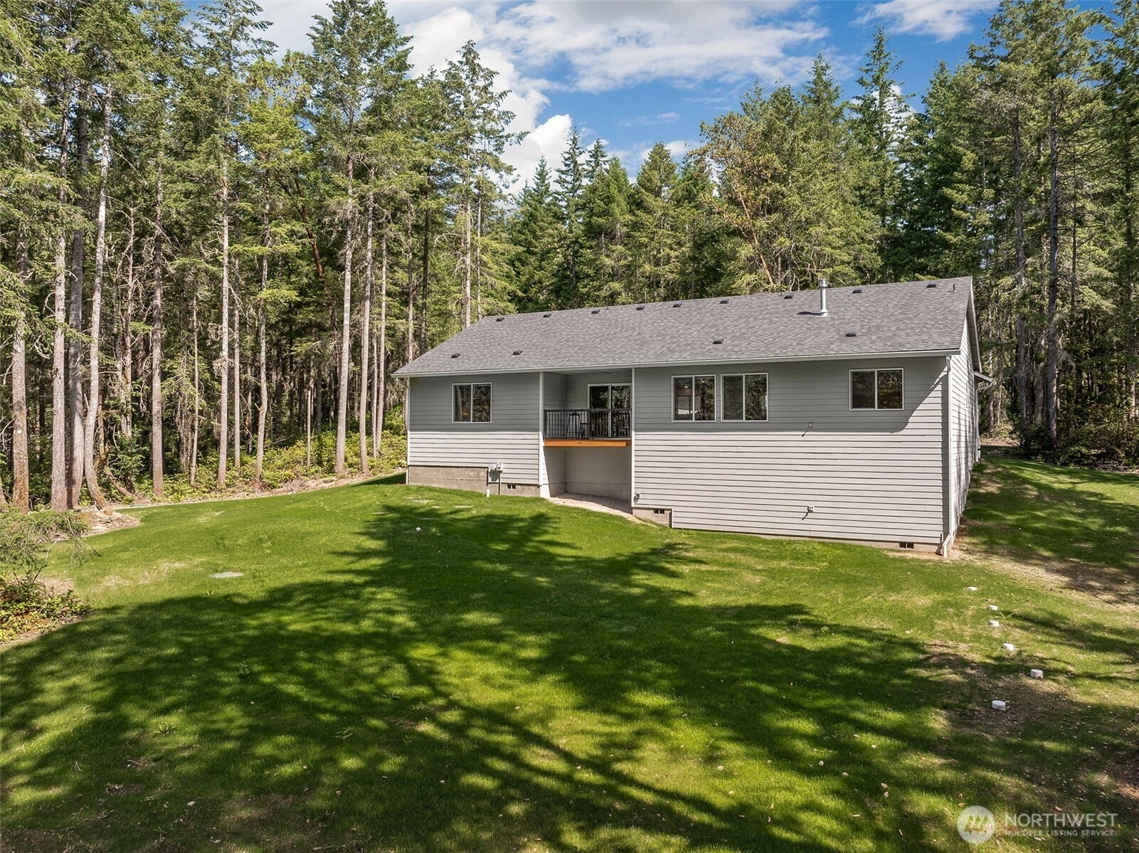Impeccable newly built 2,128 sq ft rambler on 2+ acres, just 10 min from Gig Harbor & 2 min to the freeway. Sprawling open-concept design with vaulted ceiling & towering stone fireplace all overlooking your personal nature preserve. The primary suite boasts a huge room, walk-in closet, big shower & soaking tub. Two additional bedrooms share a full bath at the opposite end for privacy. Enjoy a lush lawn encircled by towering trees, blacktop driveway & paved parking pad & TONS of room for parking your toys, RVs & guests. Whole home heat pump to keep you toasty warm or ice cold depending on the season. Huge, high ceiling, unfinished basement ready for you to build out an ADU & plenty of room to build your dream shop on the property as well!