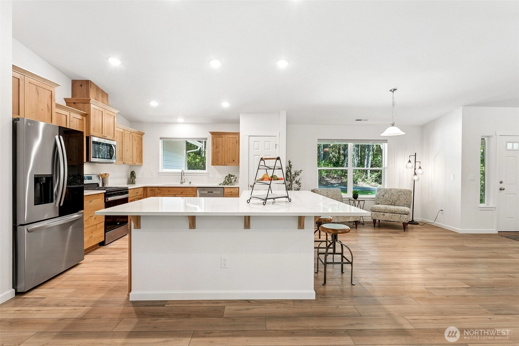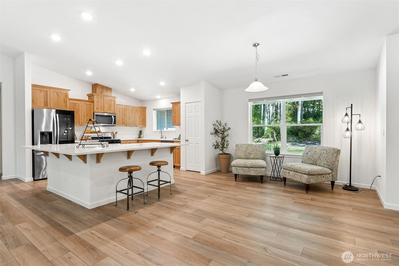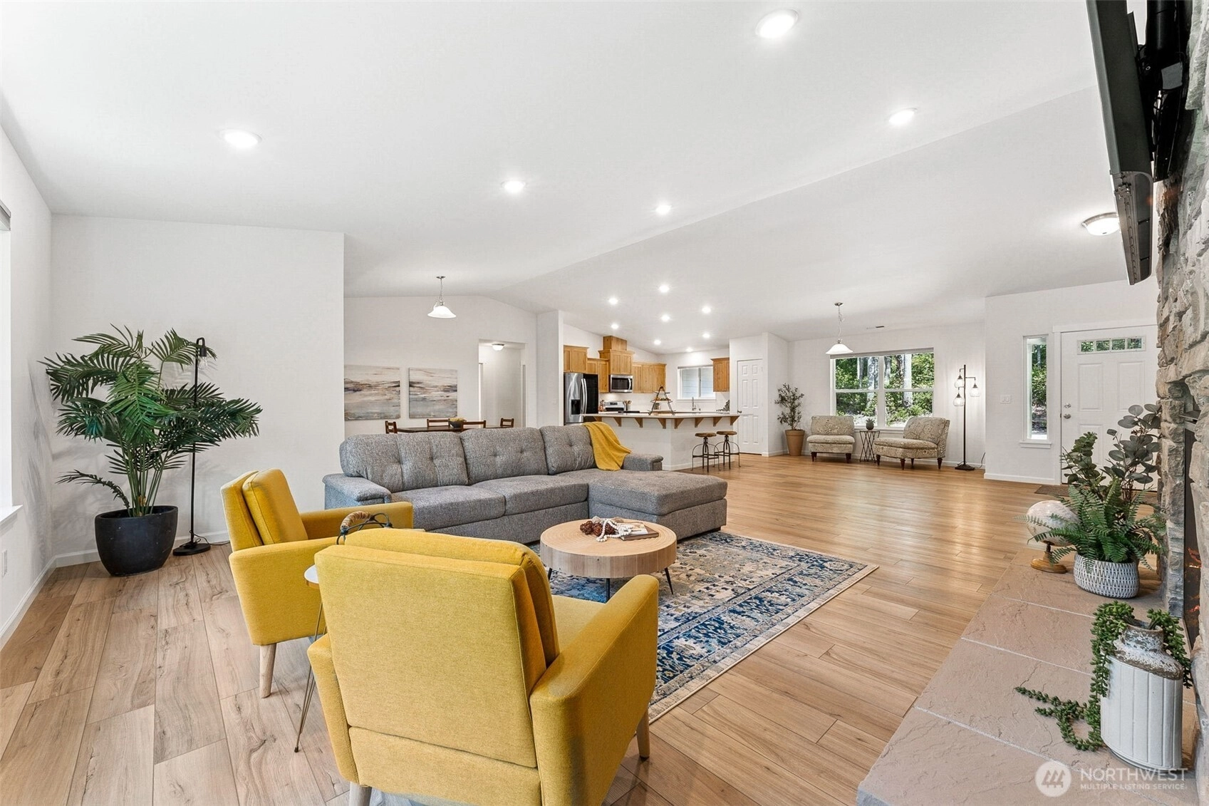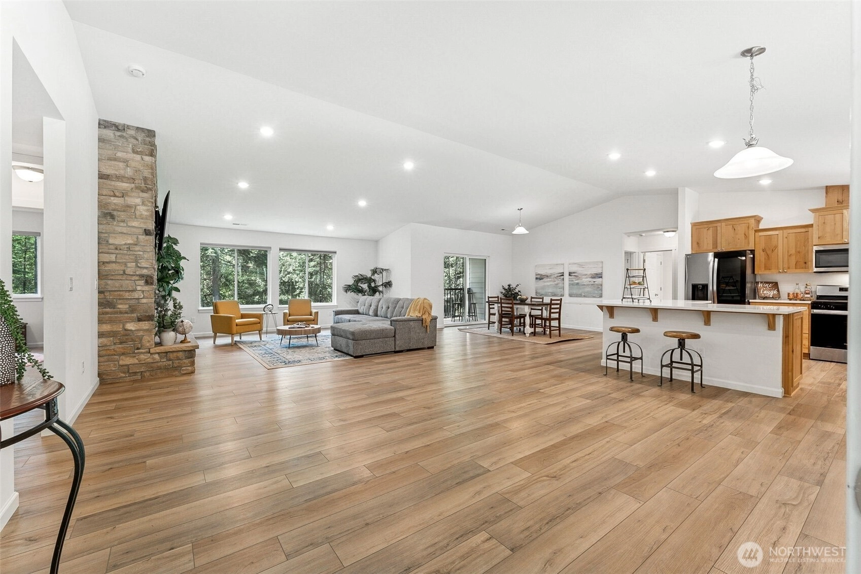 Impeccable newly built 2,128 sq ft rambler on 2+ acres, just 10 min from Gig Harbor & 2 min to the freeway. Sprawling open-concept design with vaulted ceiling & towering stone fireplace all overlooking your personal nature preserve. The primary suite boasts a huge room, walk-in closet, big shower & soaking tub. Two additional bedrooms share a full bath at the opposite end for privacy. Enjoy a lush lawn encircled by towering trees, blacktop driveway & paved parking pad & TONS of room for parking your toys, RVs & guests. Whole home heat pump to keep you toasty warm or ice cold depending on the season. Huge, high ceiling, unfinished basement ready for you to build out an ADU & plenty of room to build your dream shop on the property as well!