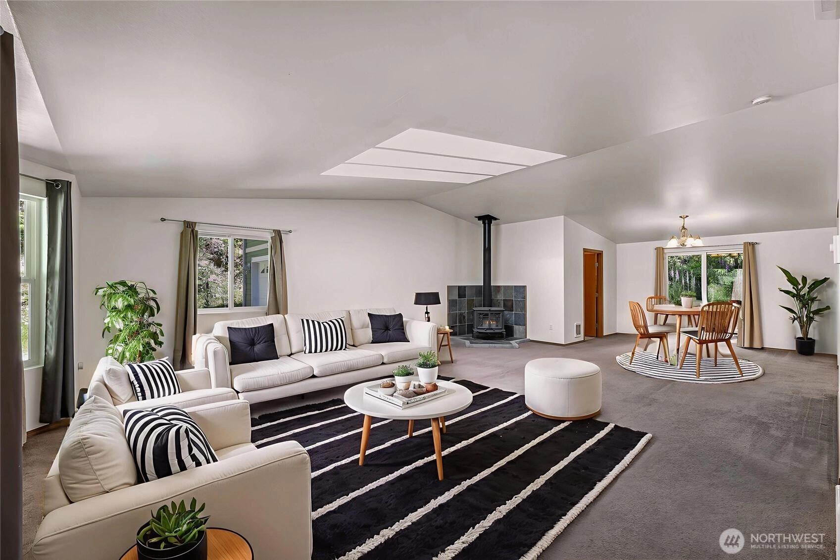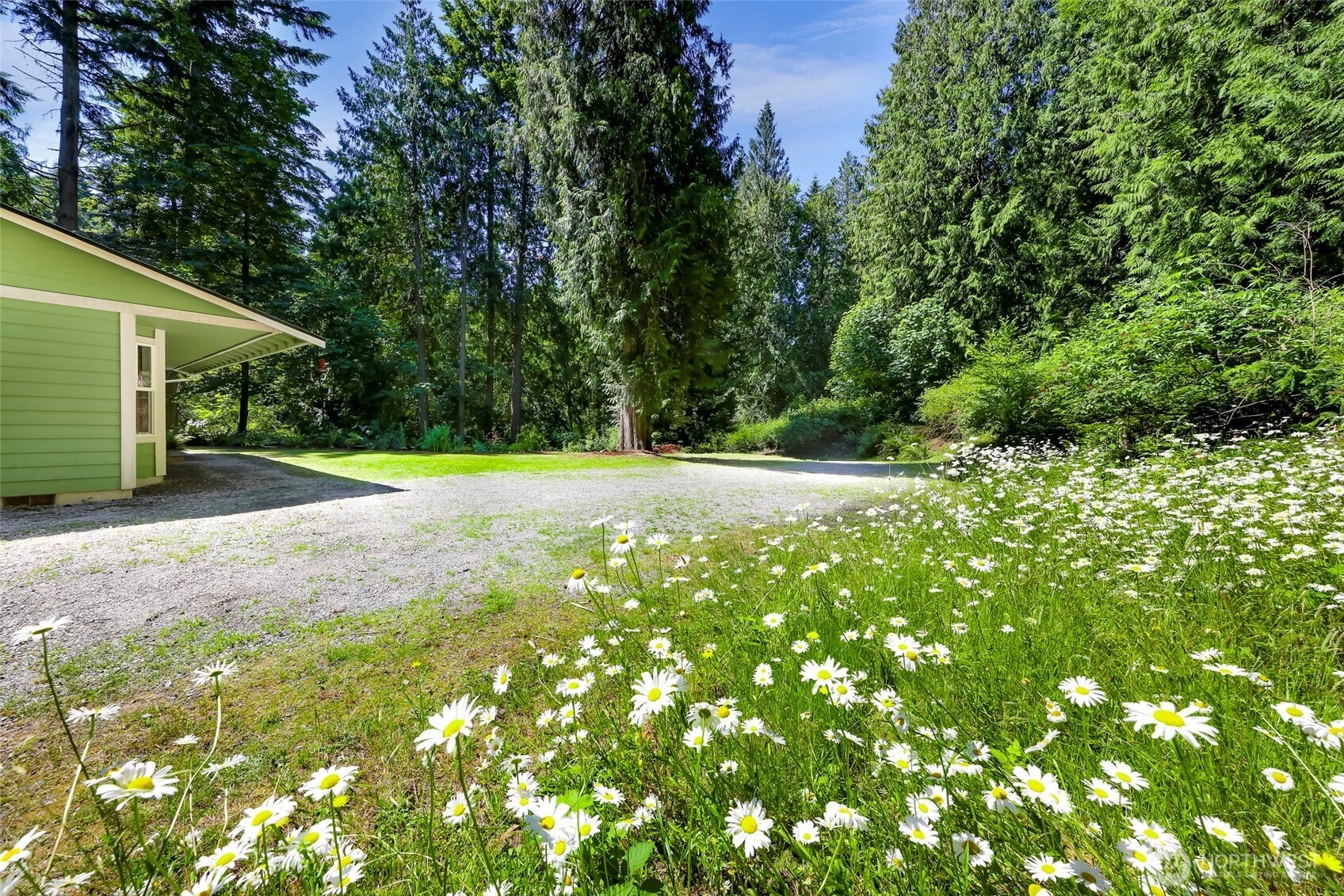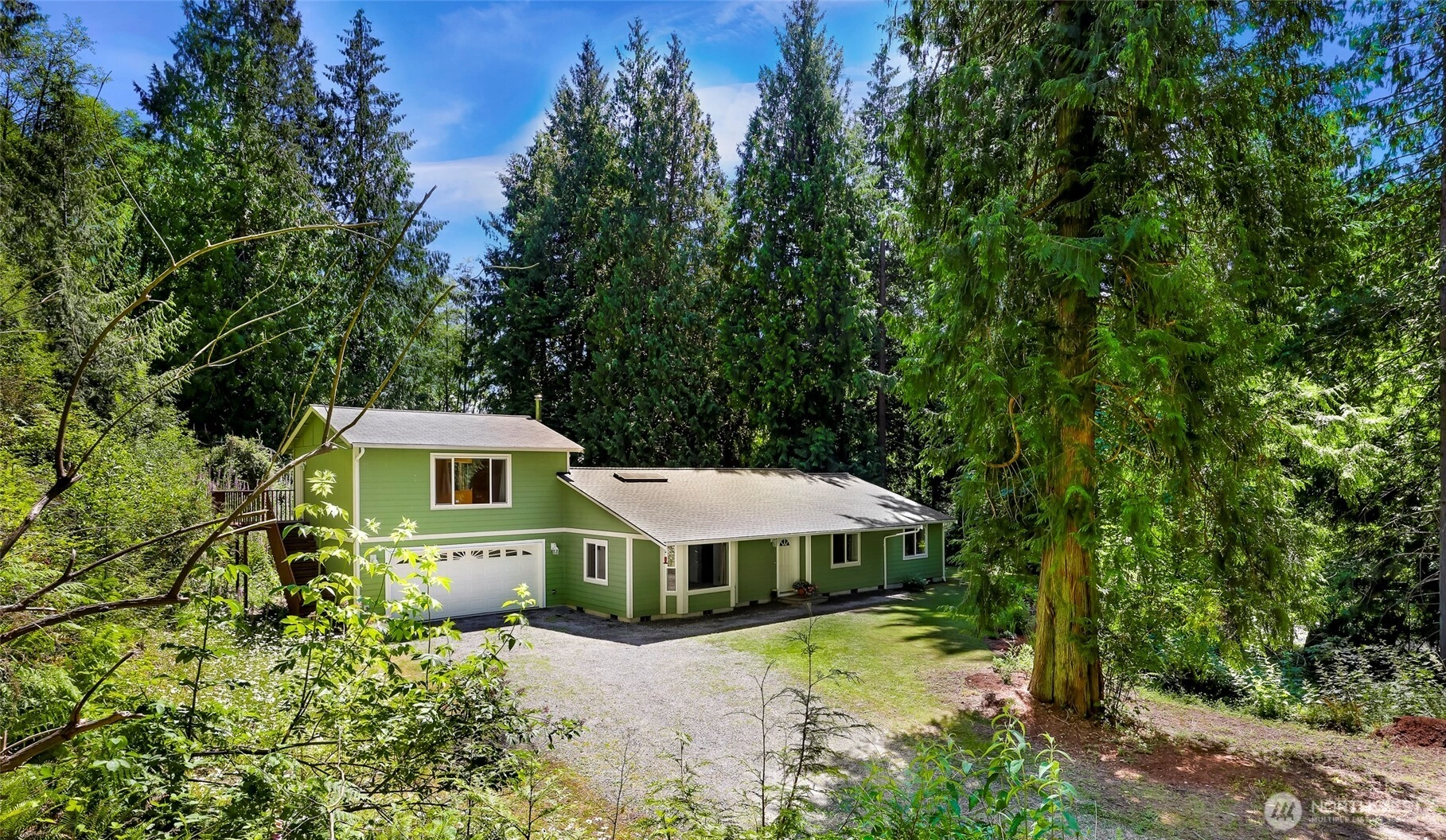 **HUGE PRICE DROP!! - 5 ACRE PARADISE** Perfect Home and Business opportunity. Stunning & magical property PERFECT for anyone who has a home based business - work from home, art studio, homeschoolers, yoga or dance studio - LIVE YOUR DREAM! Enjoy a large, freshly painted, two-car garage with private studio above with it's own entrance - easy to add some amenities to make an ADU. Rest of home is one-level living including huge living room w/ wood stove, cozy kitchen, large bedrooms incl. massive primary suite. New roof, fresh paint in most rooms. Nestled in trees yet plenty of backyard space to be your canvas of your landscaping dreams. Lovely private trails on property. Possible sites for outbuildings. 1mi to ferry - EZ for commuters too!
