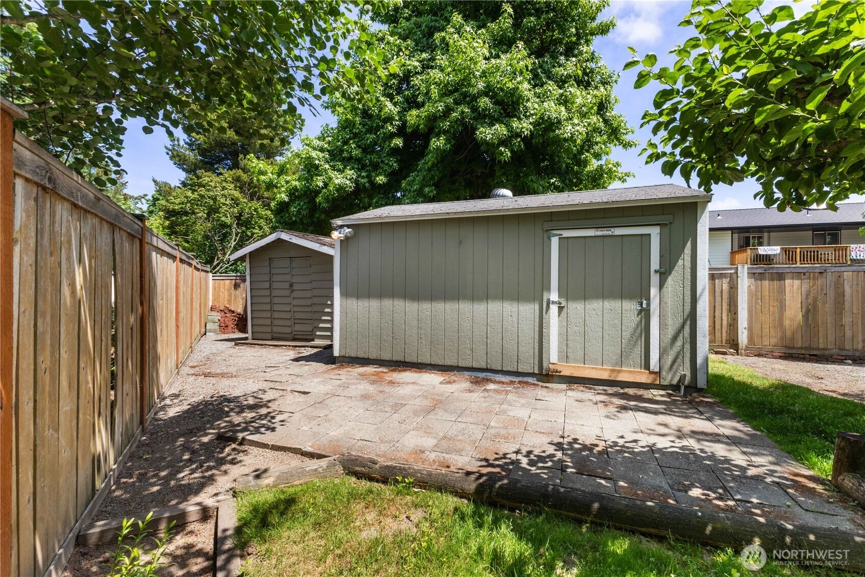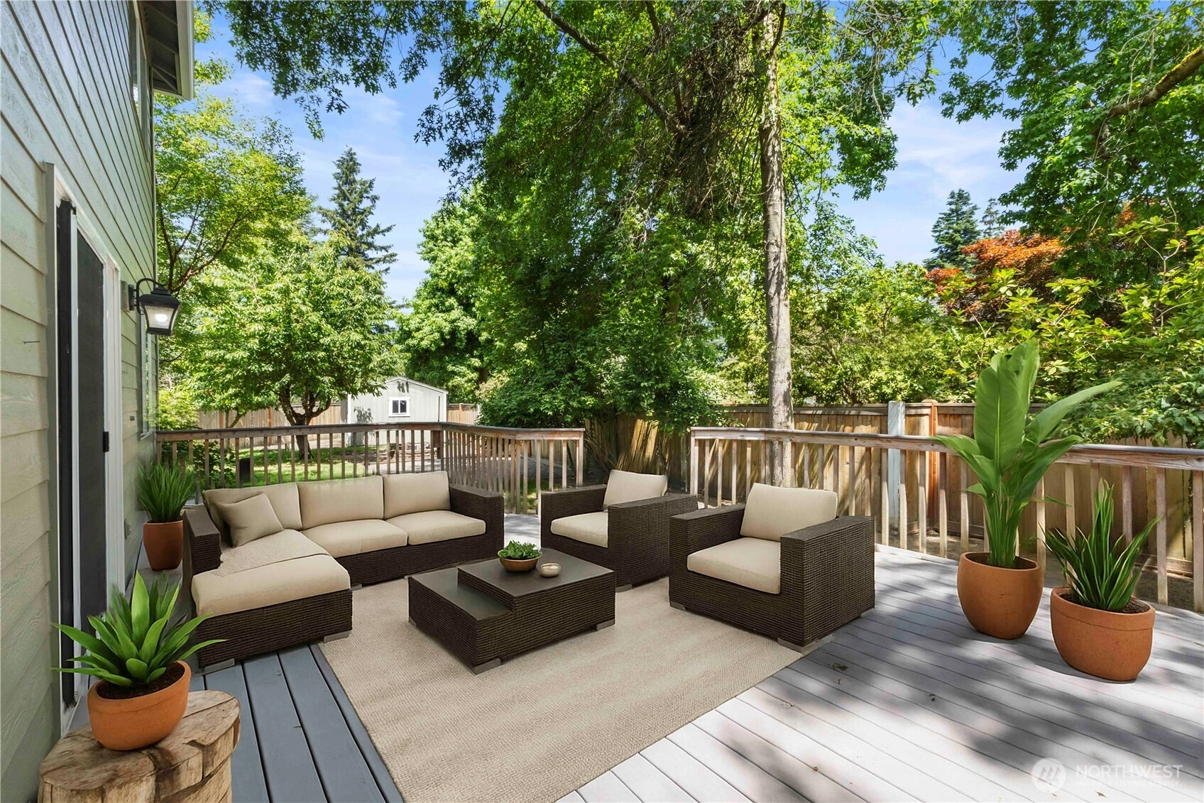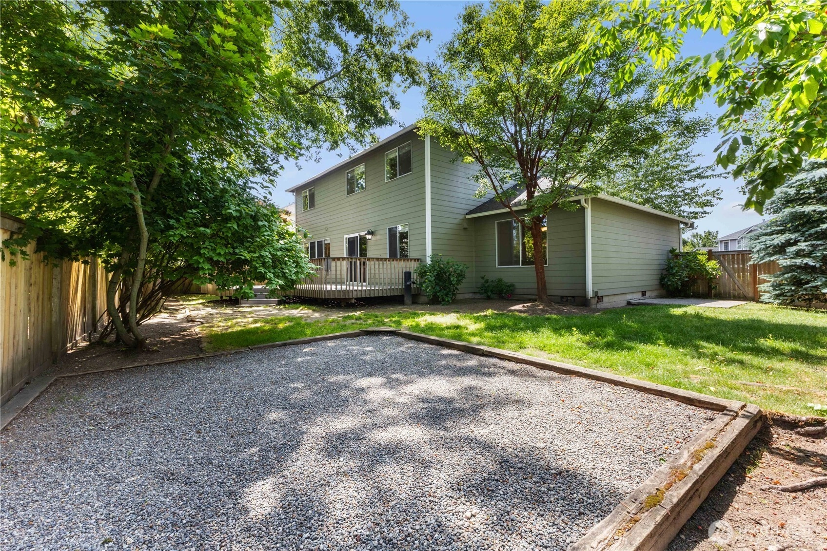 Discover the perfect blend of comfort & functionality in this beautiful Willowgate home, nestled on a quiet cul-de-sac. The inviting entry features stunning floors that set the tone for this charming residence. Indulge in the completely remodeled primary bathroom, featuring a spacious walk-in shower & the luxury of a heated towel rack. A modern touch also extends to the updated downstairs half bath. This home goes above & beyond w/ two convenient laundry areas – a dedicated room downstairs & a setup upstairs. Step out onto the generous Trex deck, ideal for outdoor dining & relaxation. For all your storage & hobby needs, you'll appreciate the 2 well-appointed outbuildings, including a larger one w/ dedicated power & a tandem garage.