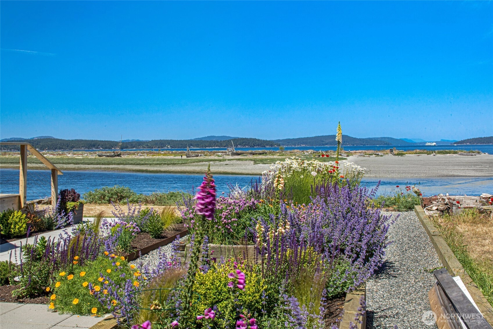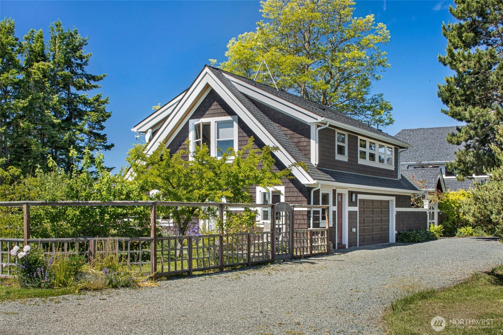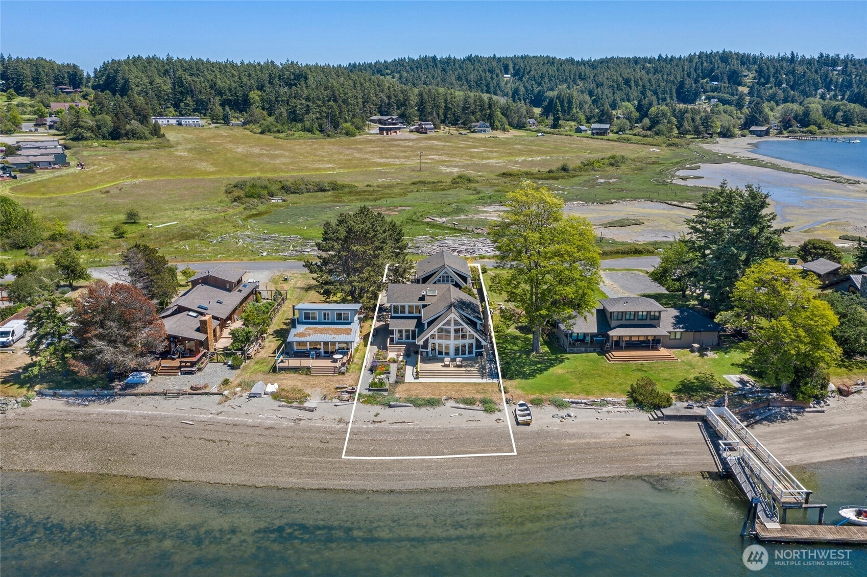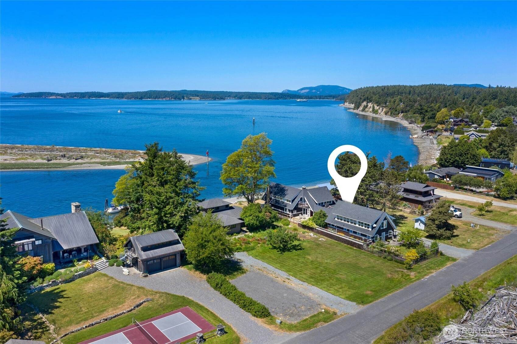 Exceptional west-facing waterfront retreat on Weeks Point, overlooking the entrance to Fisherman’s Bay. Enjoy over 60’ of no-bank shoreline, vibrant sunsets, and thoughtfully designed indoor-outdoor living on a beautifully landscaped .33-acre parcel. The 2319 sf main home showcases cedar ceilings, a chef’s kitchen, custom built-ins, and an open floor plan ideal for entertaining. The home includes 3 beds/4 baths, plus a dedicated office with fiber internet—perfect for remote work. A 1616 sf guest house offers 1 bed/1 bath, full kitchen, and spacious living area, ideal for guests or multigenerational living. Immaculately landscaped, connected to public water and sewer, and just minutes to Lopez Village. Luxury island living at its best!