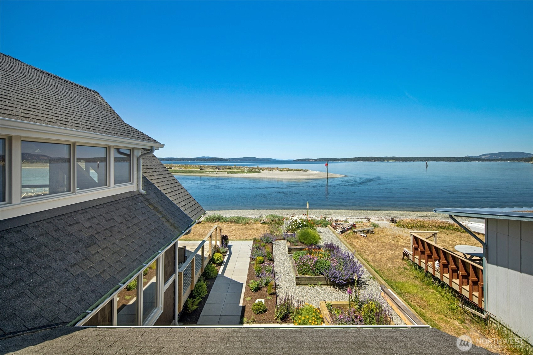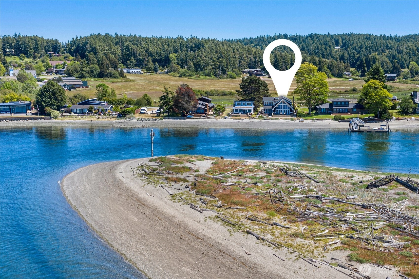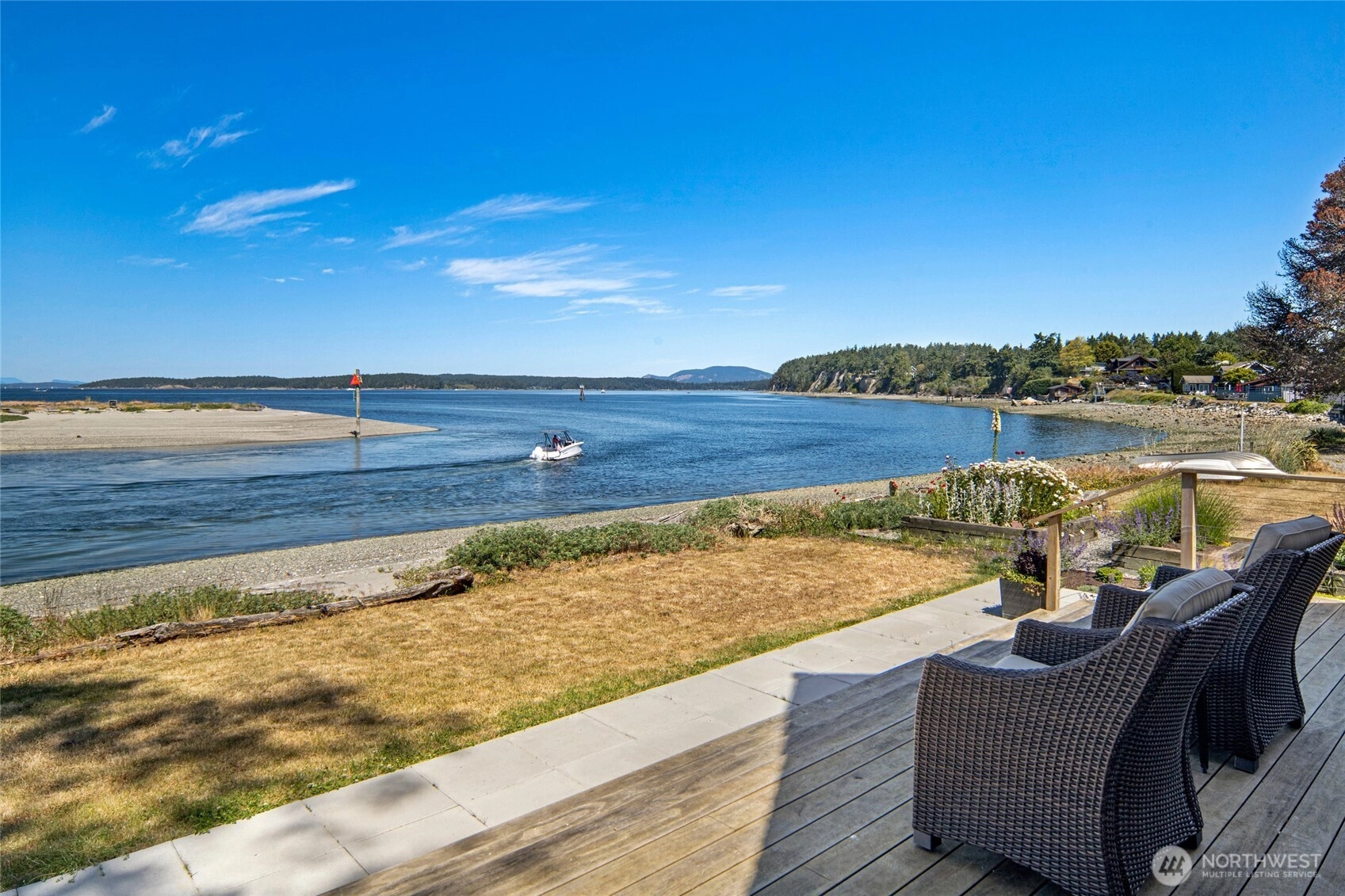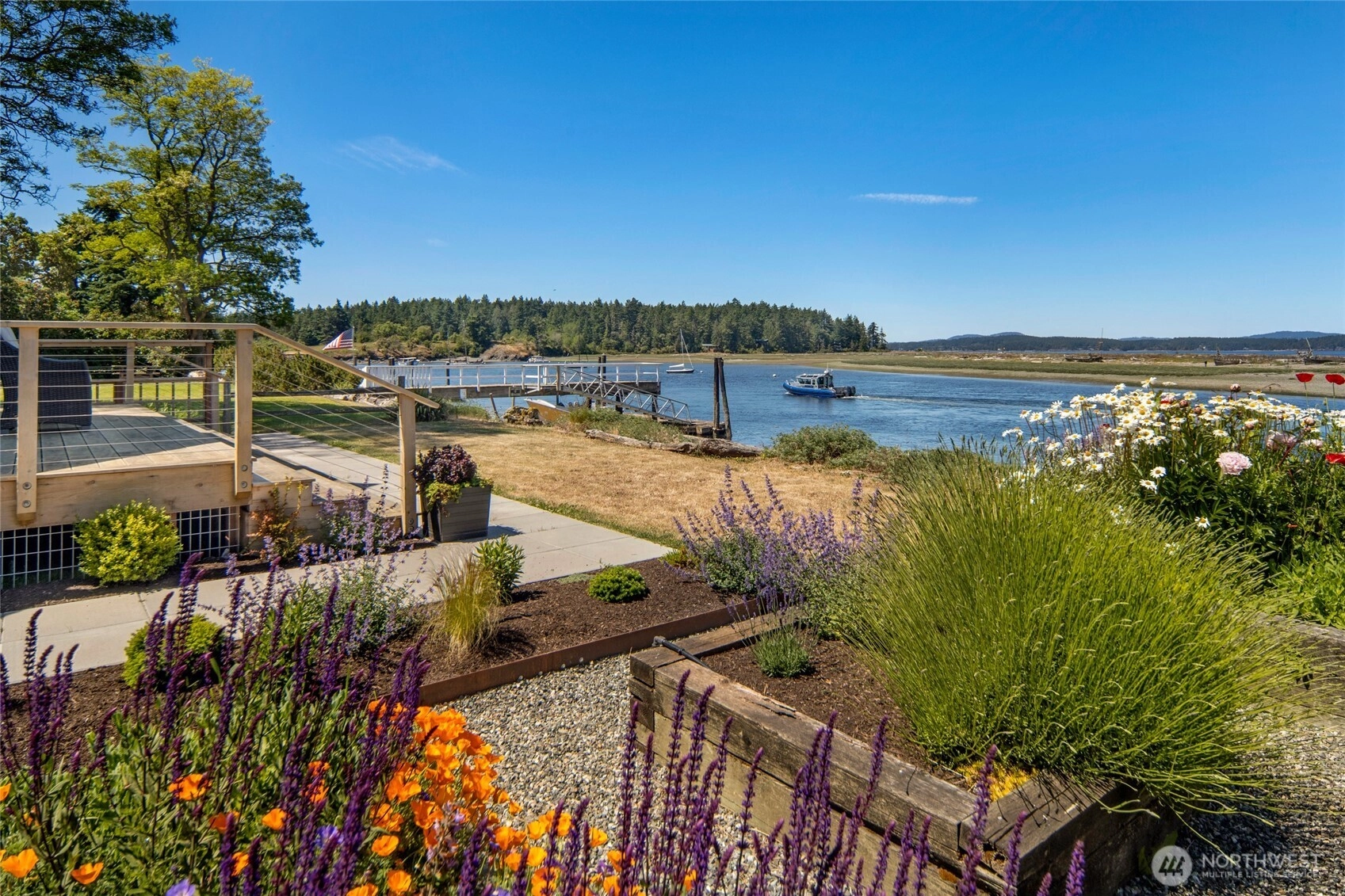 Exceptional west-facing waterfront retreat on Weeks Point, overlooking the entrance to Fisherman’s Bay. Enjoy over 60’ of no-bank shoreline, vibrant sunsets, and thoughtfully designed indoor-outdoor living on a beautifully landscaped .33-acre parcel. The 2319 sf main home showcases cedar ceilings, a chef’s kitchen, custom built-ins, and an open floor plan ideal for entertaining. The home includes 3 beds/4 baths, plus a dedicated office with fiber internet—perfect for remote work. A 1616 sf guest house offers 1 bed/1 bath, full kitchen, and spacious living area, ideal for guests or multigenerational living. Immaculately landscaped, connected to public water and sewer, and just minutes to Lopez Village. Luxury island living at its best!
