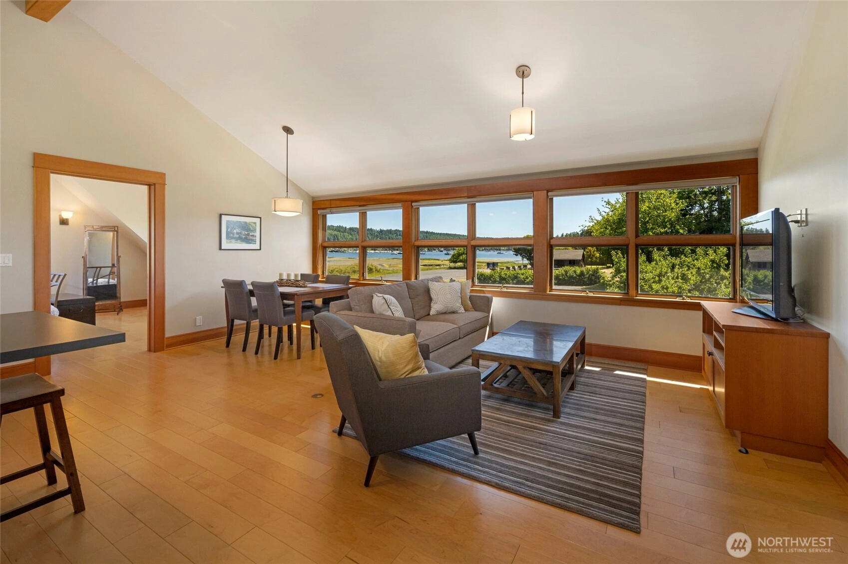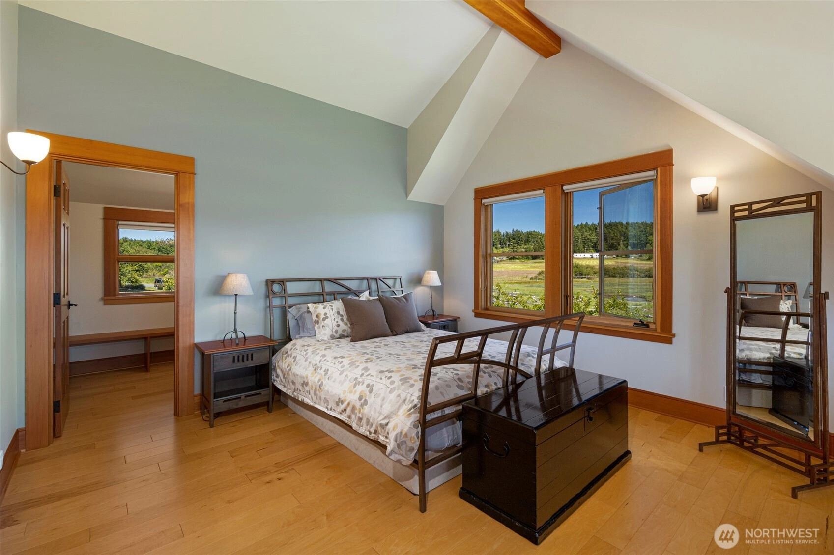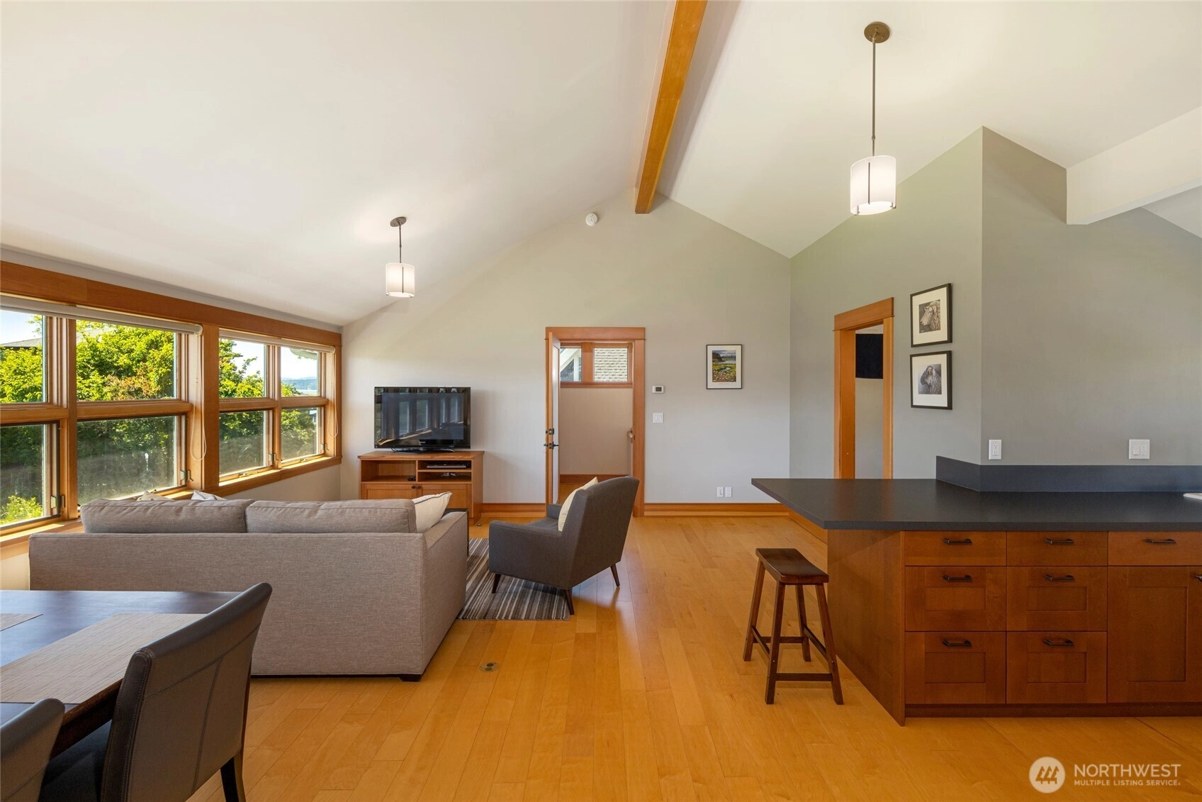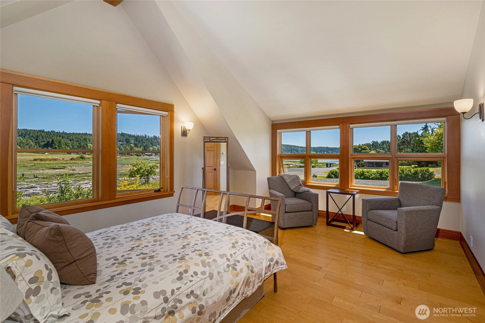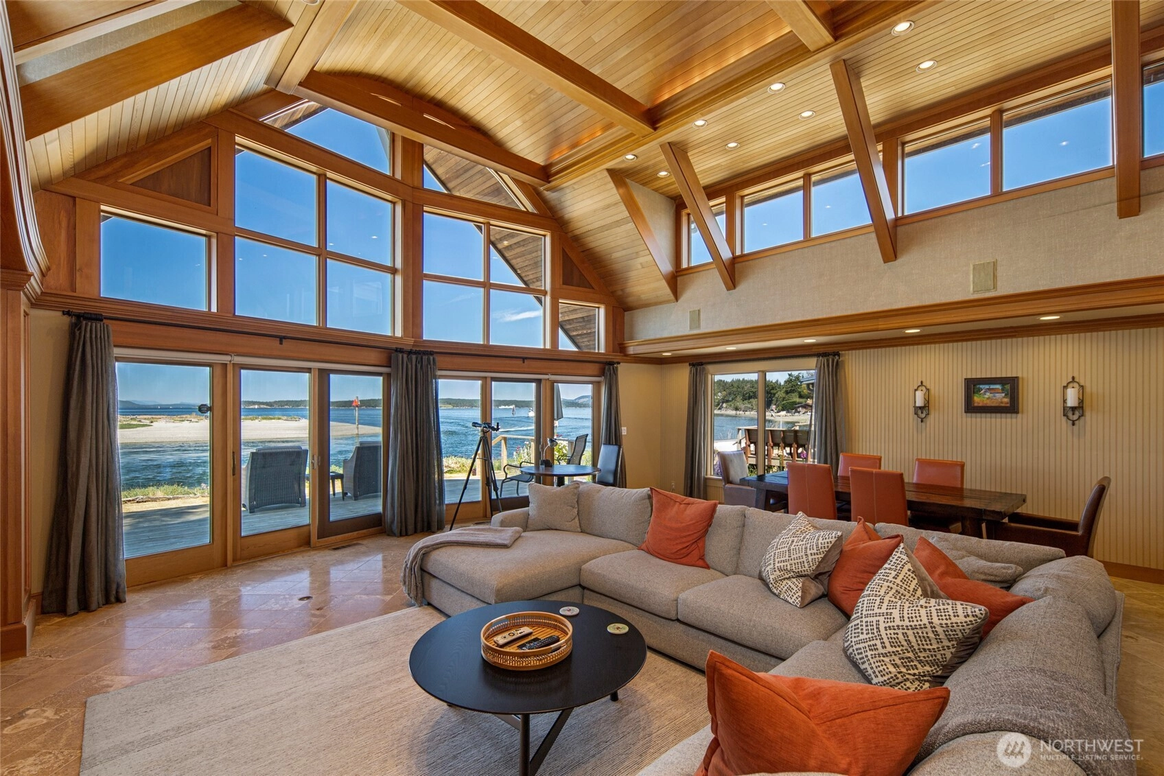 Exceptional west-facing waterfront retreat on Weeks Point, overlooking the entrance to Fisherman’s Bay. Enjoy over 60’ of no-bank shoreline, vibrant sunsets, and thoughtfully designed indoor-outdoor living on a beautifully landscaped .33-acre parcel. The 2319 sf main home showcases cedar ceilings, a chef’s kitchen, custom built-ins, and an open floor plan ideal for entertaining. The home includes 3 beds/4 baths, plus a dedicated office with fiber internet—perfect for remote work. A 1616 sf guest house offers 1 bed/1 bath, full kitchen, and spacious living area, ideal for guests or multigenerational living. Immaculately landscaped, connected to public water and sewer, and just minutes to Lopez Village. Luxury island living at its best!
