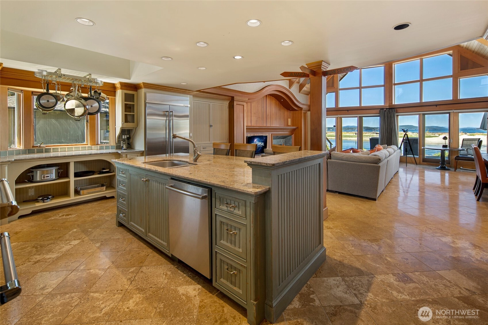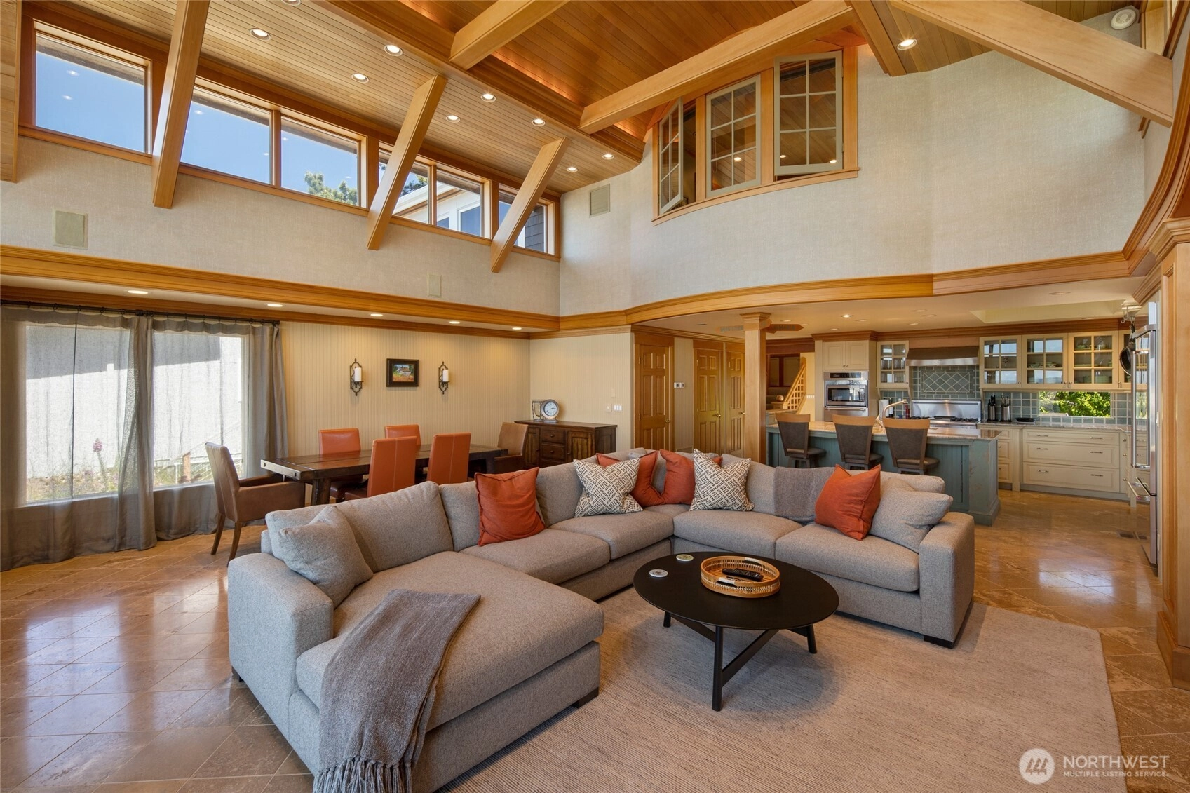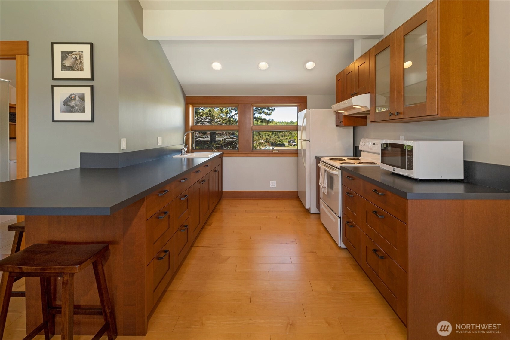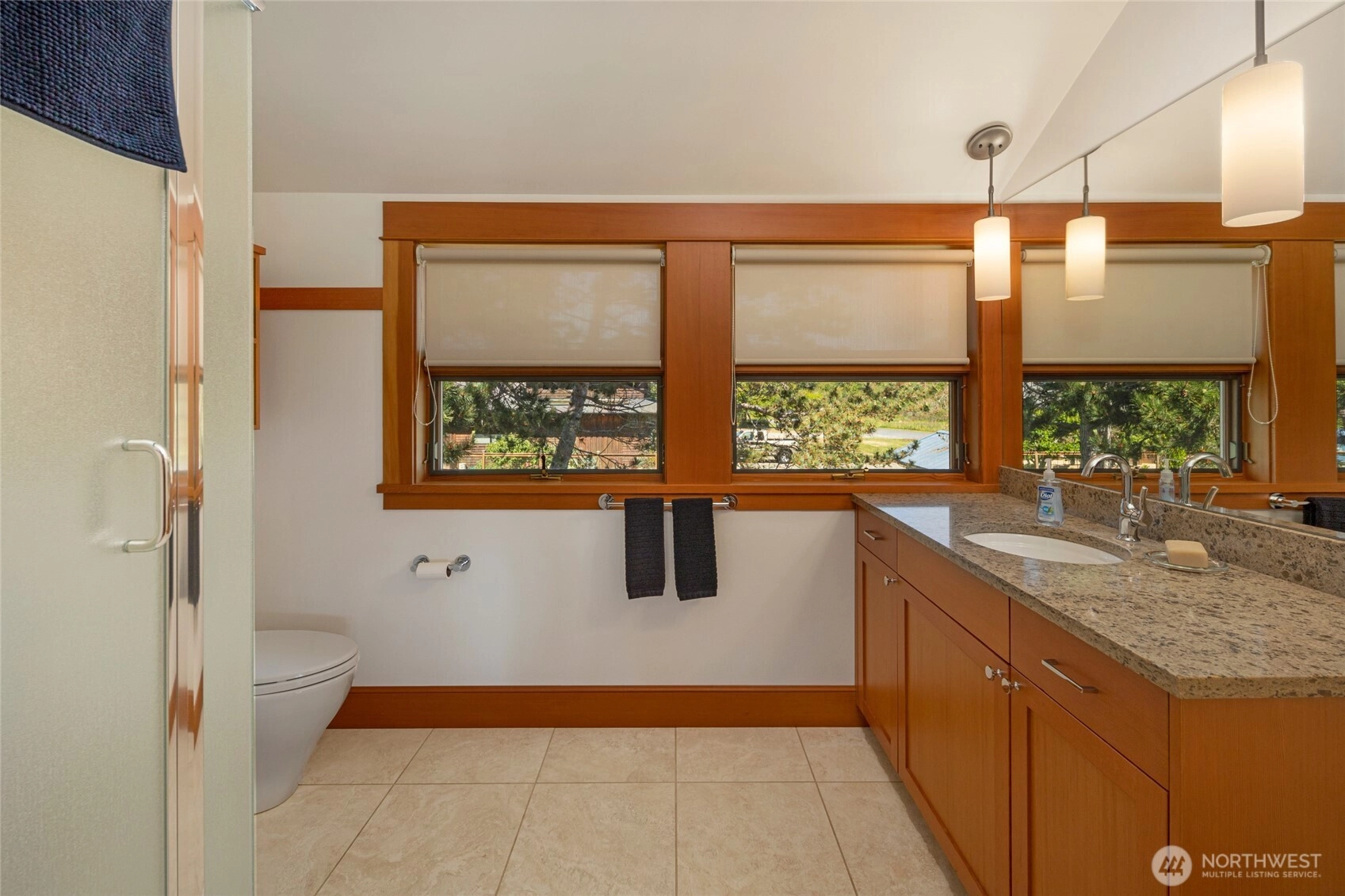 Exceptional west-facing waterfront retreat on Weeks Point, overlooking the entrance to Fisherman’s Bay. Enjoy over 60’ of no-bank shoreline, vibrant sunsets, and thoughtfully designed indoor-outdoor living on a beautifully landscaped .33-acre parcel. The 2319 sf main home showcases cedar ceilings, a chef’s kitchen, custom built-ins, and an open floor plan ideal for entertaining. The home includes 3 beds/4 baths, plus a dedicated office with fiber internet—perfect for remote work. A 1616 sf guest house offers 1 bed/1 bath, full kitchen, and spacious living area, ideal for guests or multigenerational living. Immaculately landscaped, connected to public water and sewer, and just minutes to Lopez Village. Luxury island living at its best!