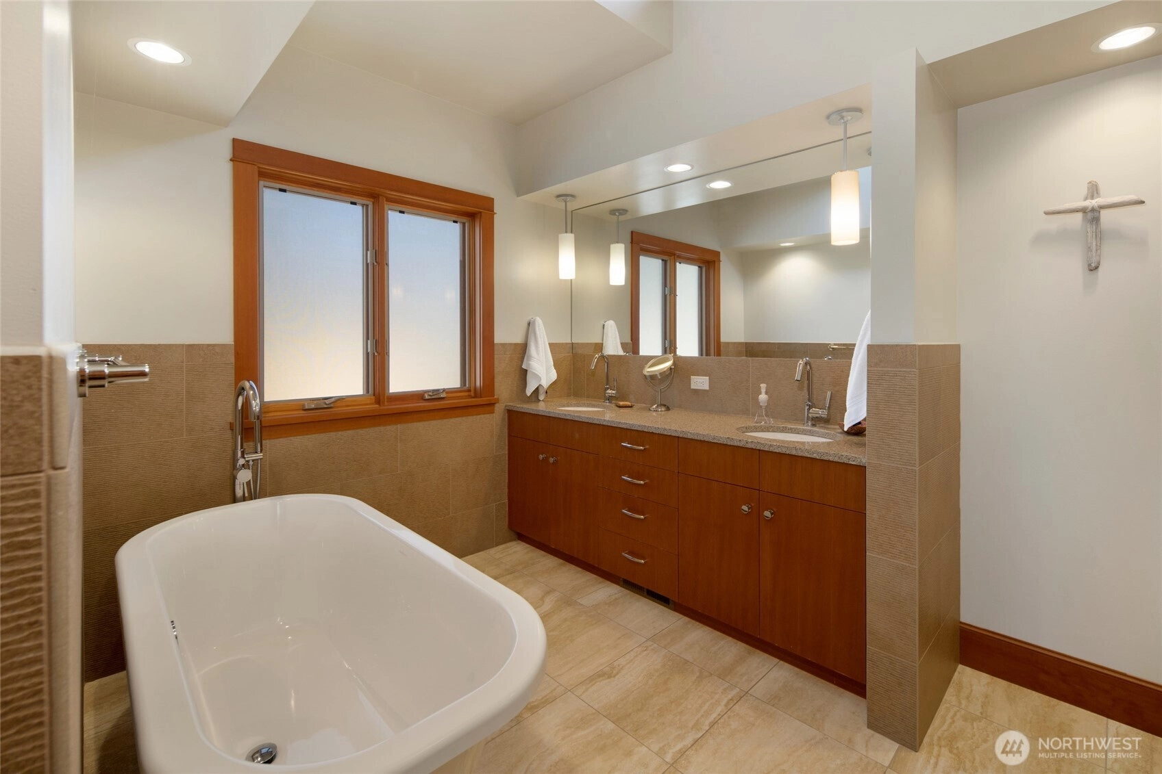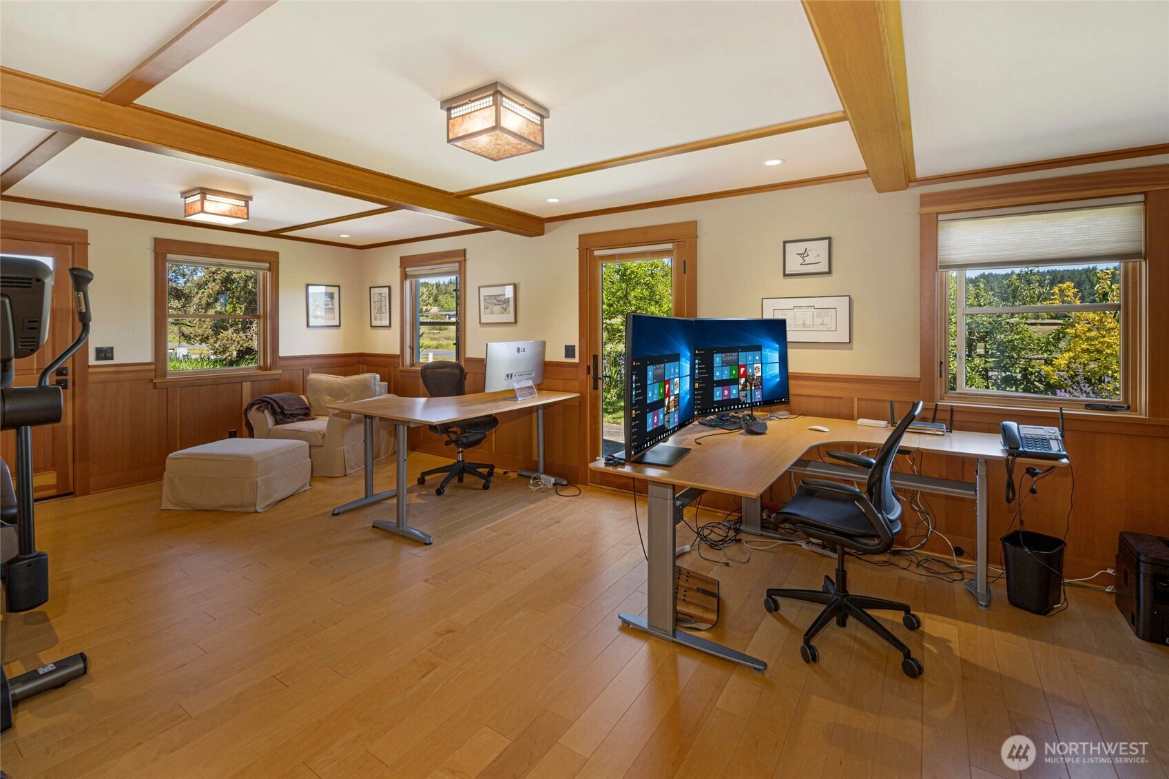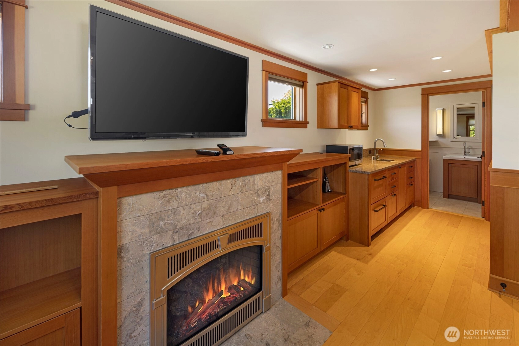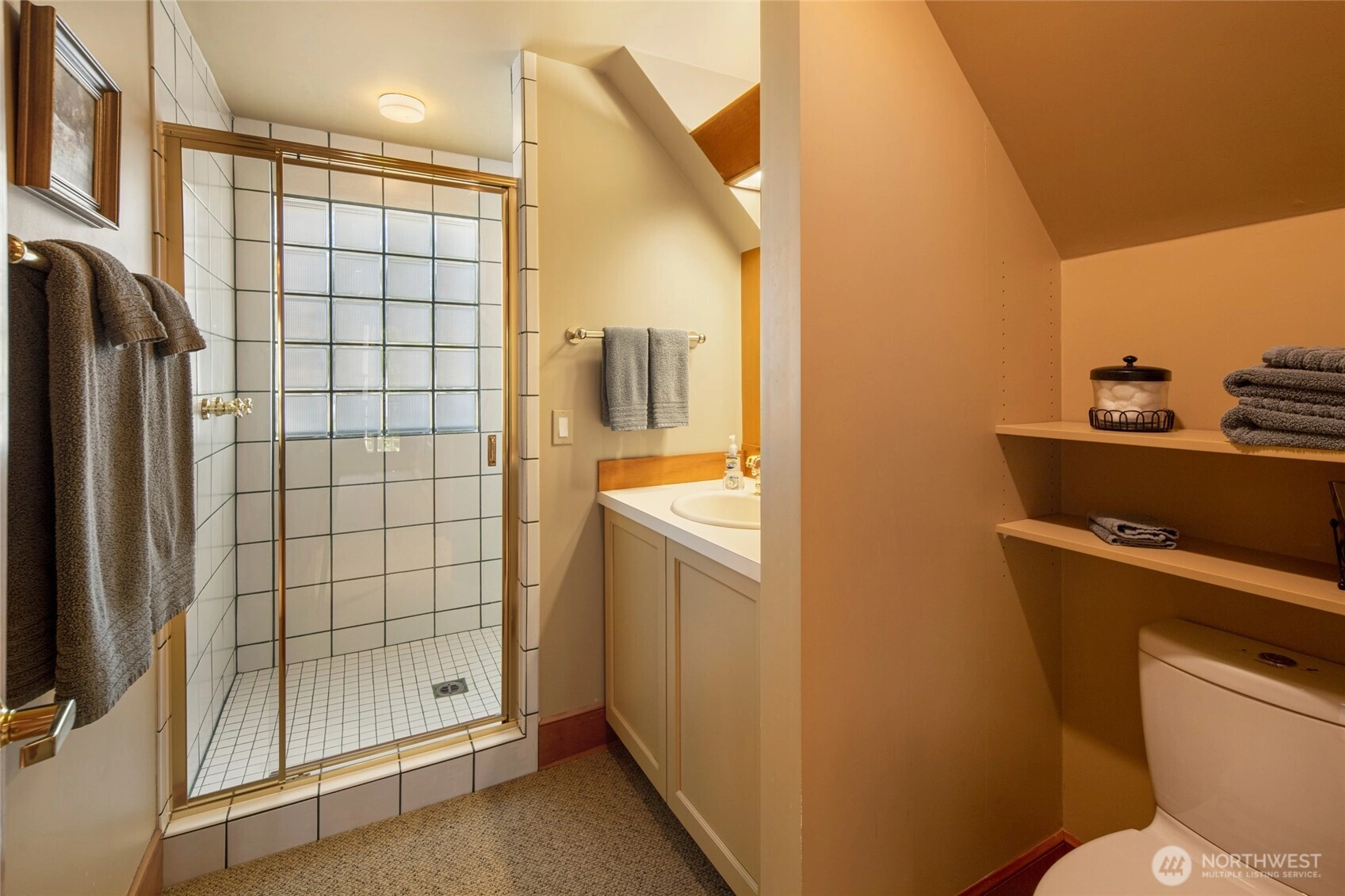 Exceptional west-facing waterfront retreat on Weeks Point, overlooking the entrance to Fisherman’s Bay. Enjoy over 60’ of no-bank shoreline, vibrant sunsets, and thoughtfully designed indoor-outdoor living on a beautifully landscaped .33-acre parcel. The 2319 sf main home showcases cedar ceilings, a chef’s kitchen, custom built-ins, and an open floor plan ideal for entertaining. The home includes 3 beds/4 baths, plus a dedicated office with fiber internet—perfect for remote work. A 1616 sf guest house offers 1 bed/1 bath, full kitchen, and spacious living area, ideal for guests or multigenerational living. Immaculately landscaped, connected to public water and sewer, and just minutes to Lopez Village. Luxury island living at its best!