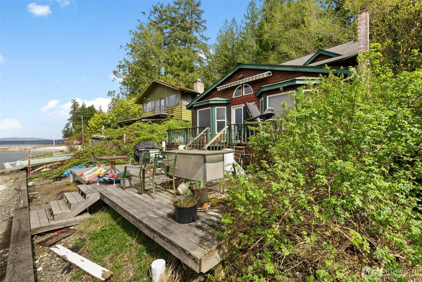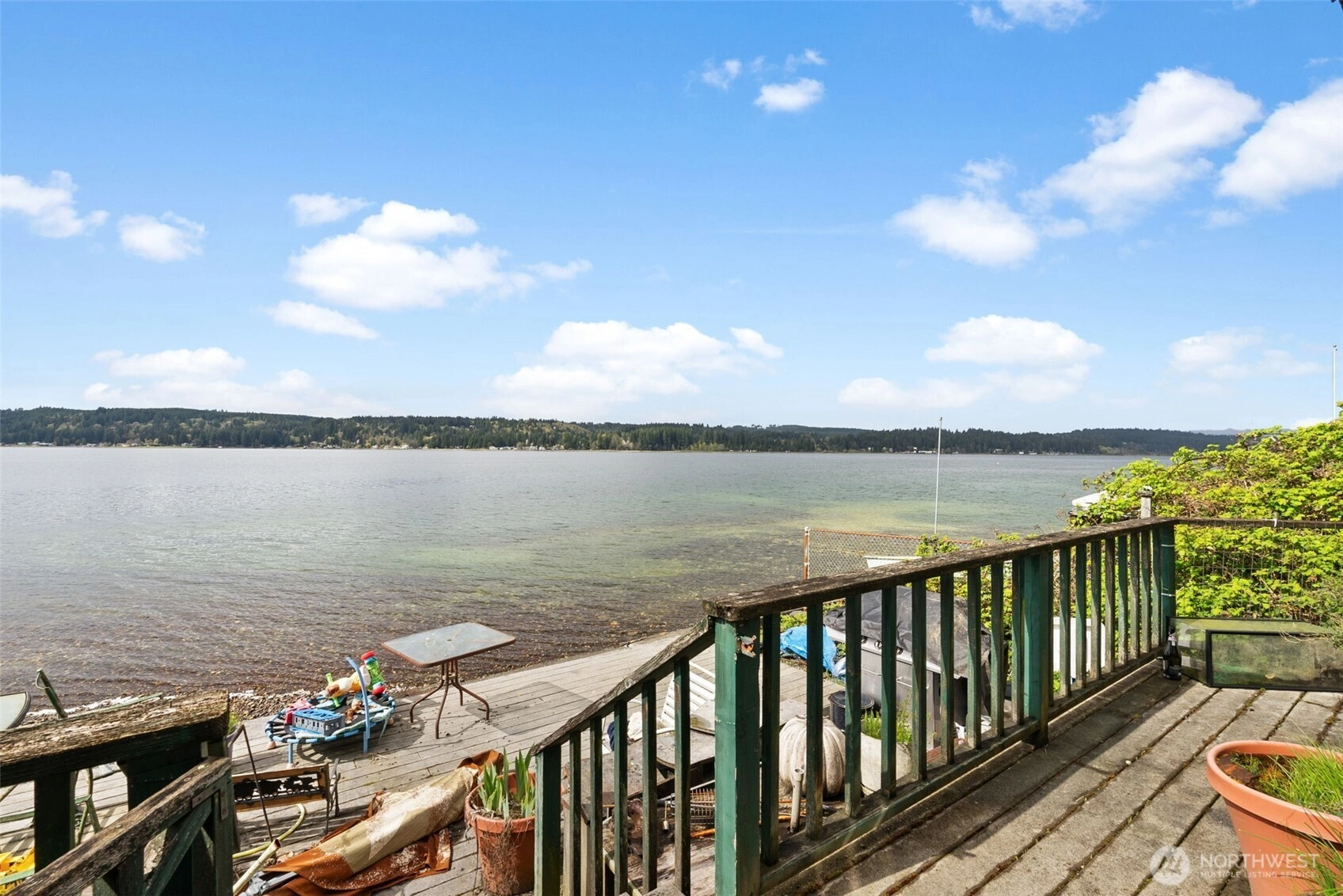 Waterfront living on the Hood Canal! This 2-bedroom home with an additional office offers rare low-bank access just steps from the beach. Harvest oysters, clams, crab, and shrimp right outside your door, then take in breathtaking sunsets over the Olympic Mountains from the spacious west-facing deck. Inside, enjoy cozy evenings by the wood-burning fireplace and year-round views of the water. Priced with its condition in mind, this is an incredible opportunity to update and make it your own. Tenant-occupied—please do not disturb. Showings available after mutual acceptance. Photos reflect current condition; tenant will vacate at closing. Home is sold as-is, where is. Located on a quiet dead-end road—drive-bys are not ideal, dog on premises.