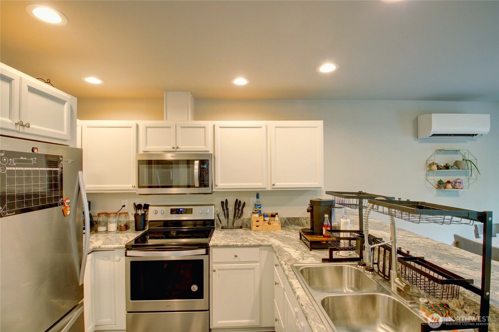 Summer Wind Condo in beautiful Oak Harbor! This light and bright 2-bedroom, 1.75-bath condo offers comfort and convenience with brand-new flooring throughout, in-unit washer and dryer, and air conditioning for year-round enjoyment. The open-concept layout features spacious living and dining areas that flow effortlessly to your private patio—perfect for relaxing or entertaining. Enjoy the ease of assigned covered off-street parking, plus a prime location just minutes from NAS Whidbey, shopping, schools, parks, and the beach. VA & FHA approved with no rental cap—ideal for homeowners or investors! Best of all, take advantage of an assumable VA loan at just 2.5% interest—a rare opportunity with only a small gap to cover. Don’t miss this one!