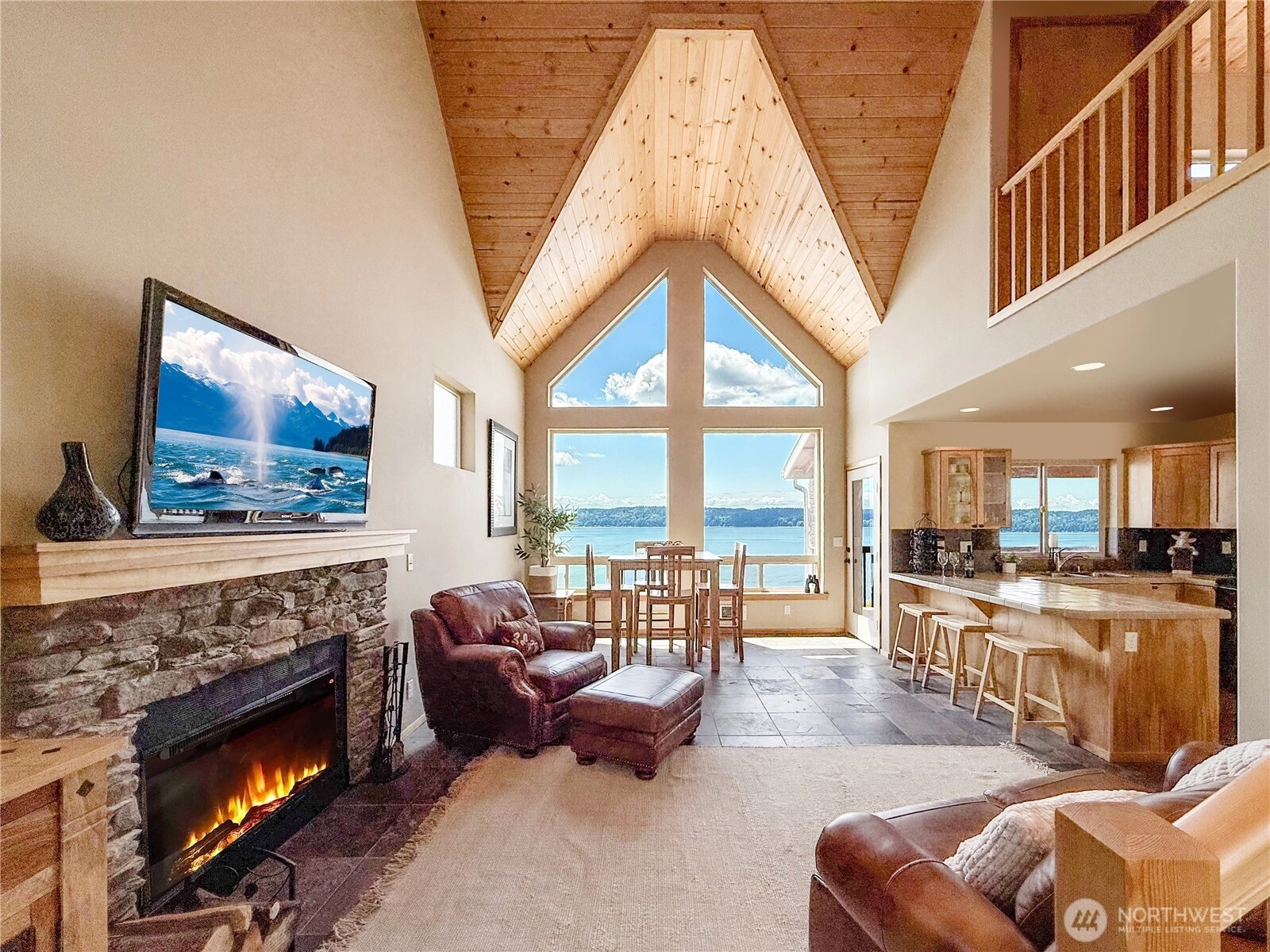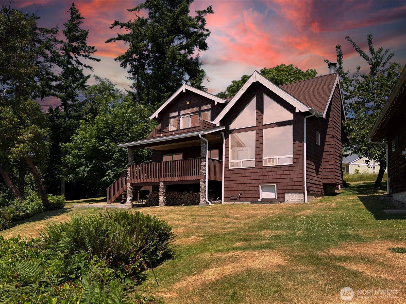 Upscale Cape Cod style home with incredible west-facing ocean and sunset views. 2nd adjacent lot provides generous yard and expansive views. Lovingly maintained, fully furnished turn-key two-story home on private Hat Island, truly turn-key. Nearly every room and 2 decks offer breathtaking vistas of Puget Sound and the Olympic Mountains. Unobstructed panoramic views for whale watching, sunsets, and easy beach access. Hat Island delivers a one-of-a-kind lifestyle with its private 9-hole USGA golf course, scenic nature trails, pristine beaches, crabbing, clamming, fishing, summer beach concerts, yacht club happy hours, tennis, pirate ship playground. A rare invitation to embrace peace, adventure, and an unforgettable island lifestyle.