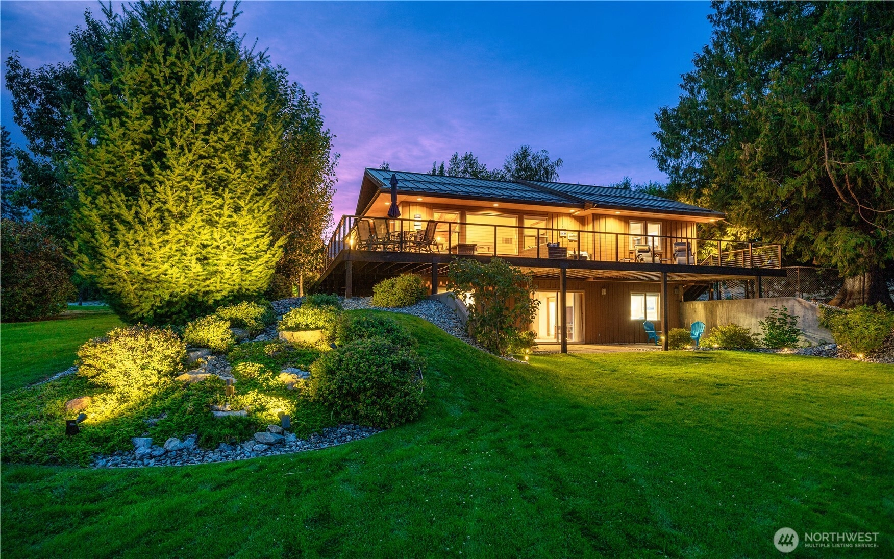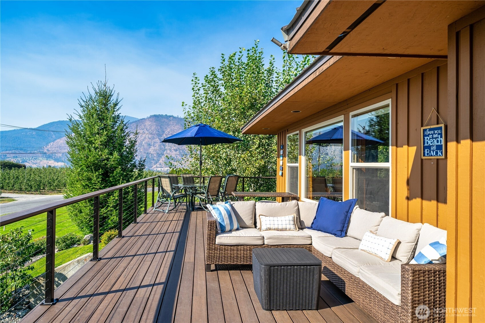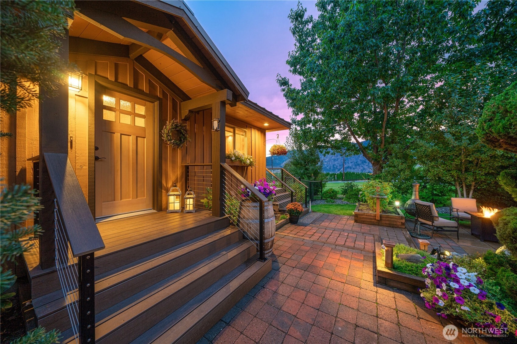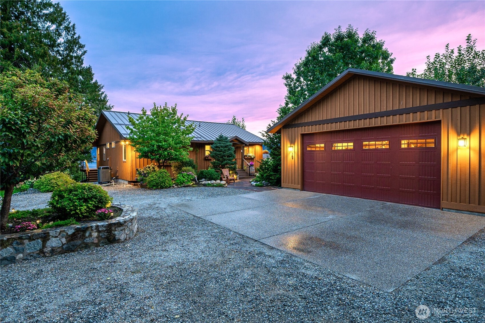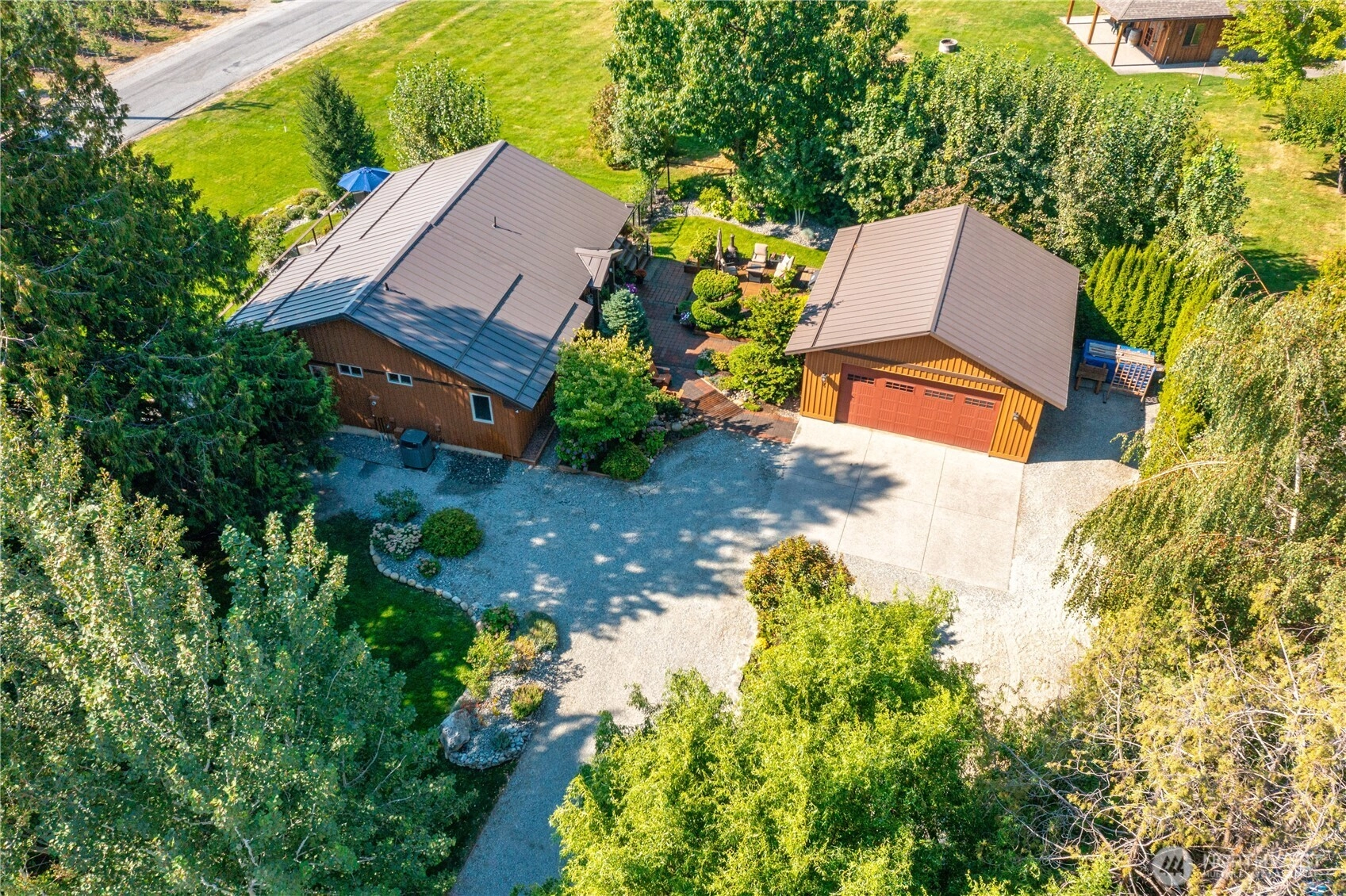 This Lake Chelan view home features a gorgeous park-like setting within a fully-fenced half acre lot - all just 5 minutes from Downtown Manson. With 4 bedrooms & 2.75 baths, it features a 52' wraparound deck, reclaimed wood timber frame & a detached 2-car garage/shop with 50-amp RV/boat parking. The main level includes a vaulted great room, kitchen, primary suite, guest room/office & full bath. Downstairs offers 2 more bedrooms, den, bonus room ideal for a gym or wine storage & a patio with hot tub. Mature landscaping creates a private, fairytale-like setting offering multiple outdoor entertaining areas. Surrounded on 3 sides by HOA-maintained open space, this beautiful property also includes access to the Sienna community clubhouse.