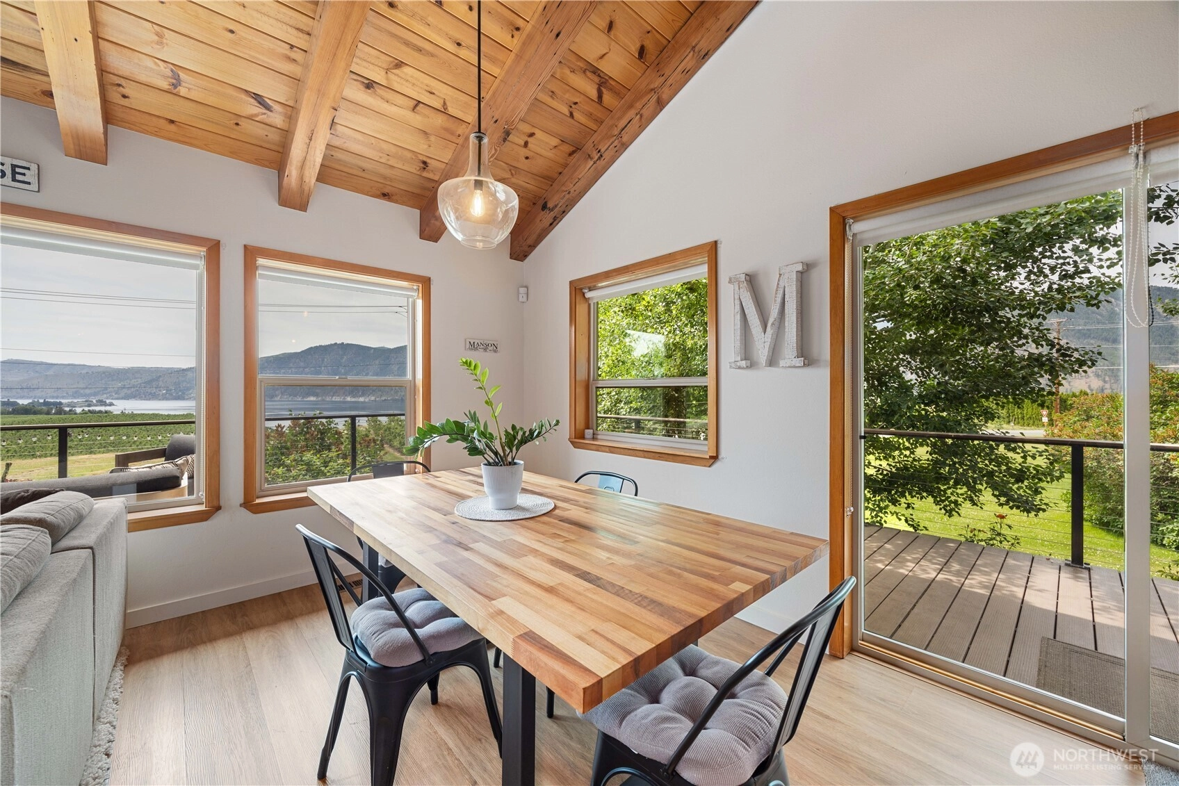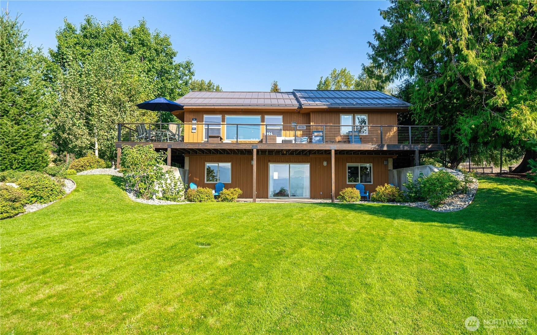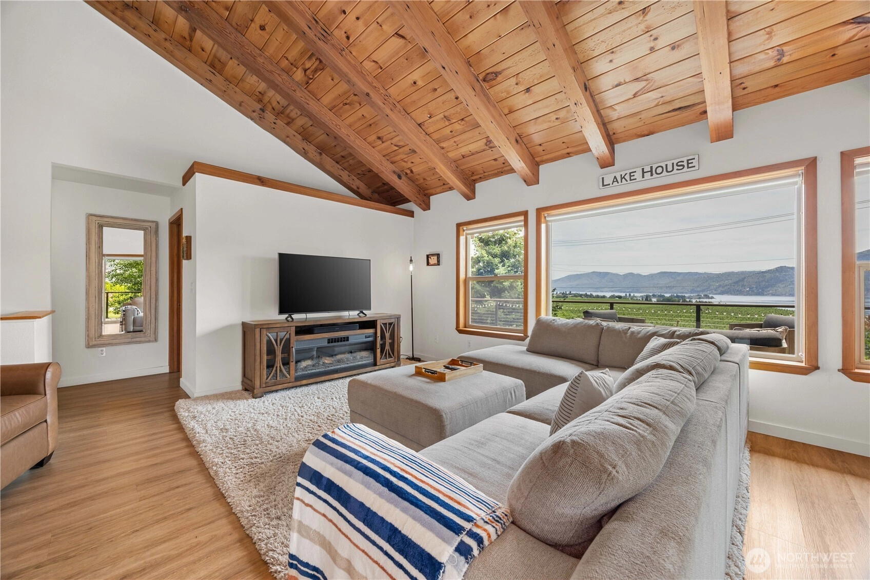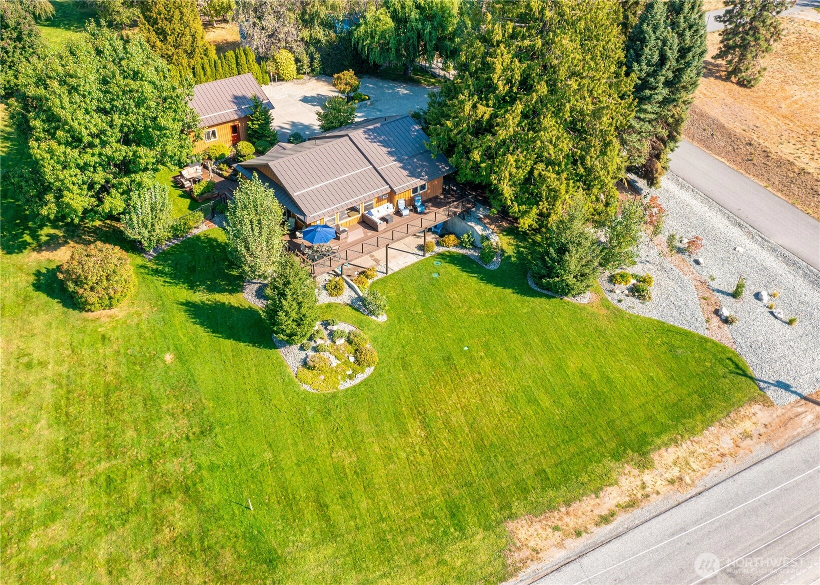 This Lake Chelan view home features a gorgeous park-like setting within a fully-fenced half acre lot - all just 5 minutes from Downtown Manson. With 4 bedrooms & 2.75 baths, it features a 52' wraparound deck, reclaimed wood timber frame & a detached 2-car garage/shop with 50-amp RV/boat parking. The main level includes a vaulted great room, kitchen, primary suite, guest room/office & full bath. Downstairs offers 2 more bedrooms, den, bonus room ideal for a gym or wine storage & a patio with hot tub. Mature landscaping creates a private, fairytale-like setting offering multiple outdoor entertaining areas. Surrounded on 3 sides by HOA-maintained open space, this beautiful property also includes access to the Sienna community clubhouse.