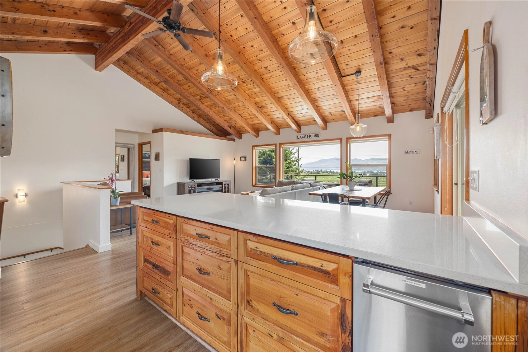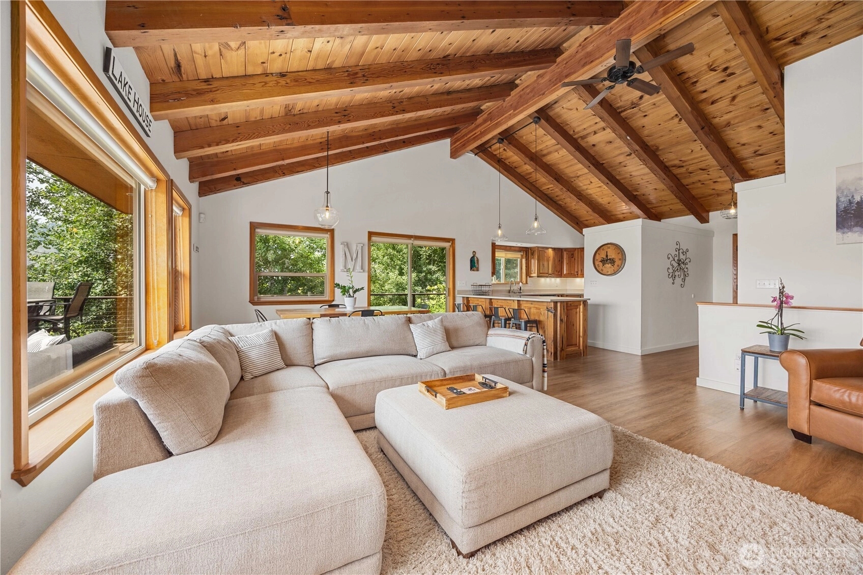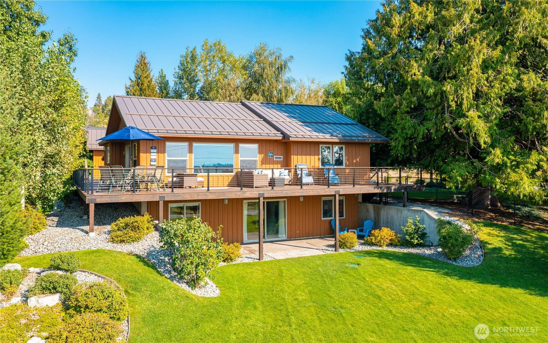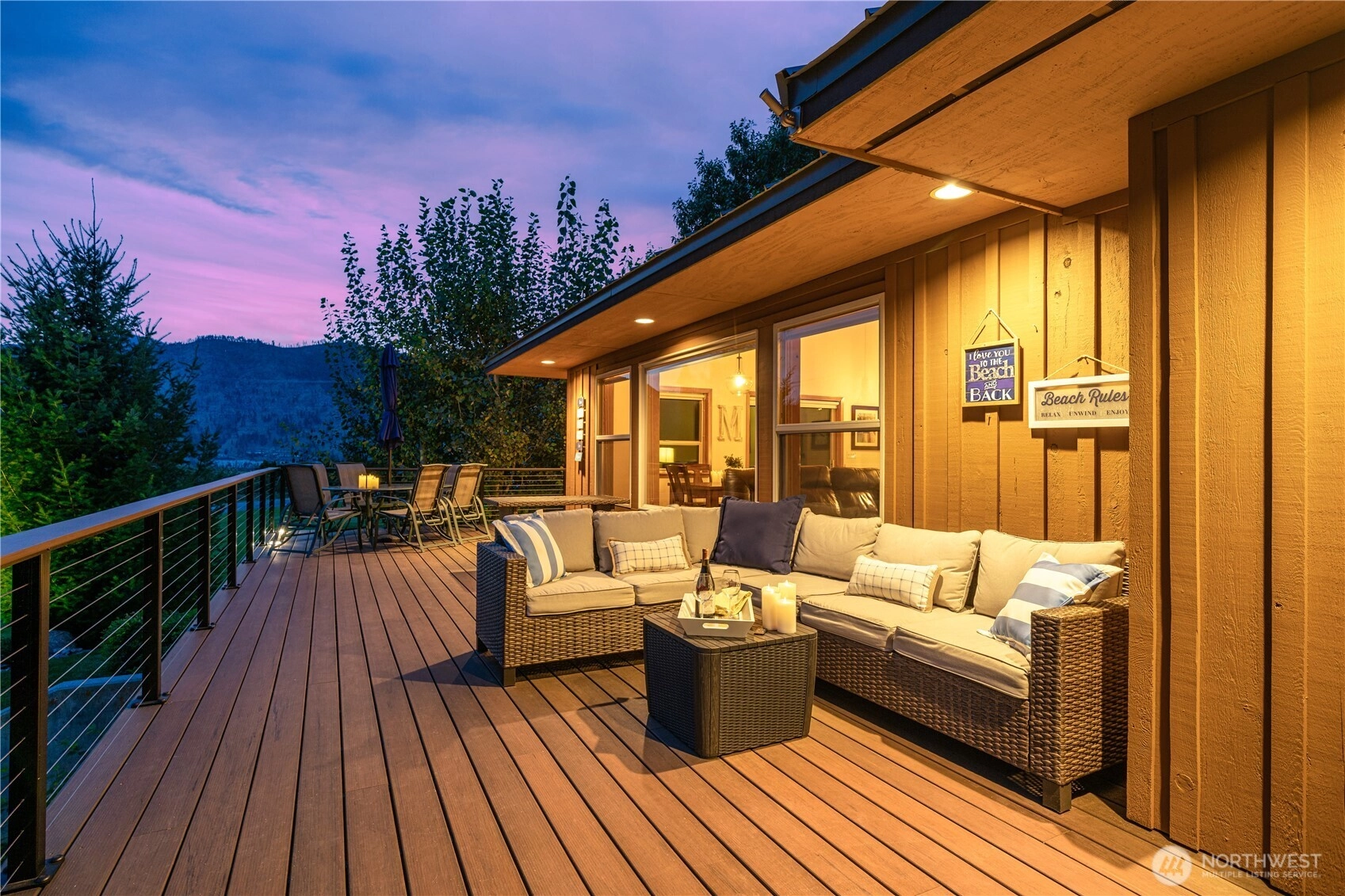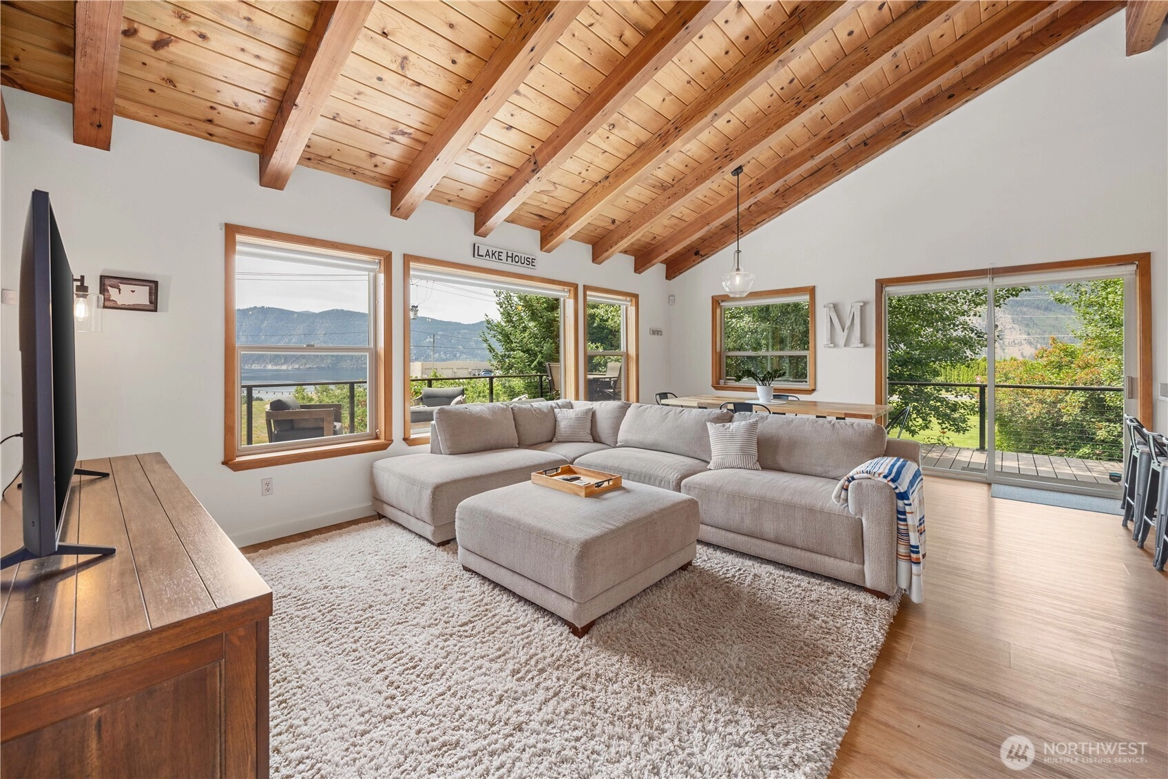 This Lake Chelan view home features a gorgeous park-like setting within a fully-fenced half acre lot - all just 5 minutes from Downtown Manson. With 4 bedrooms & 2.75 baths, it features a 52' wraparound deck, reclaimed wood timber frame & a detached 2-car garage/shop with 50-amp RV/boat parking. The main level includes a vaulted great room, kitchen, primary suite, guest room/office & full bath. Downstairs offers 2 more bedrooms, den, bonus room ideal for a gym or wine storage & a patio with hot tub. Mature landscaping creates a private, fairytale-like setting offering multiple outdoor entertaining areas. Surrounded on 3 sides by HOA-maintained open space, this beautiful property also includes access to the Sienna community clubhouse.