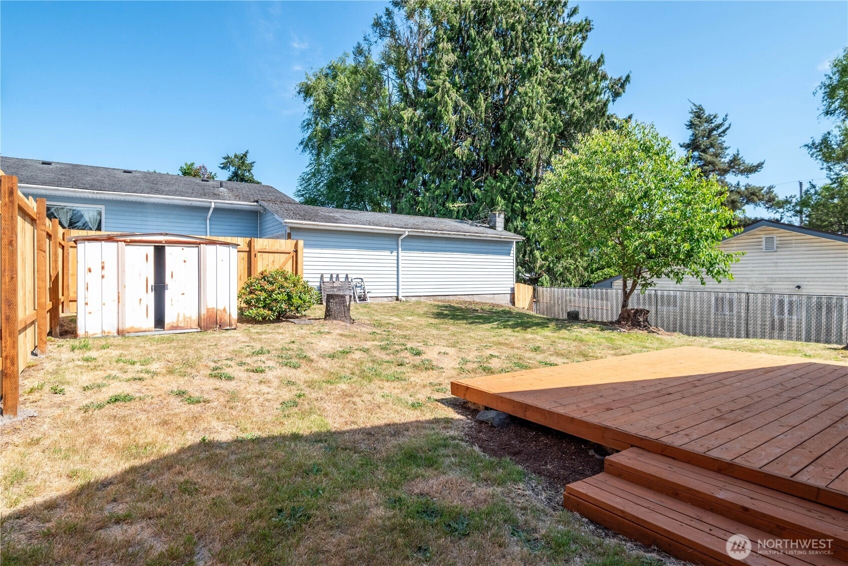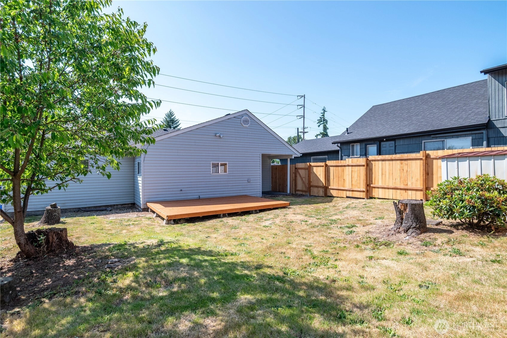 Welcome home! This charming 3 bedroom, 1.75 bath home is move-in ready and waiting for its next chapter. The primary bedroom includes a full bath. The kitchen flows into a cozy dining area and the separate laundry room offers direct access to the backyard. Additional highlights include a single-car garage with basement storage space and a fully fenced yard with a spacious deck—perfect for entertaining or relaxing outdoors. Fresh paint, new flooring, and updated trim add to the home's appeal. Don’t miss your opportunity to make it yours!