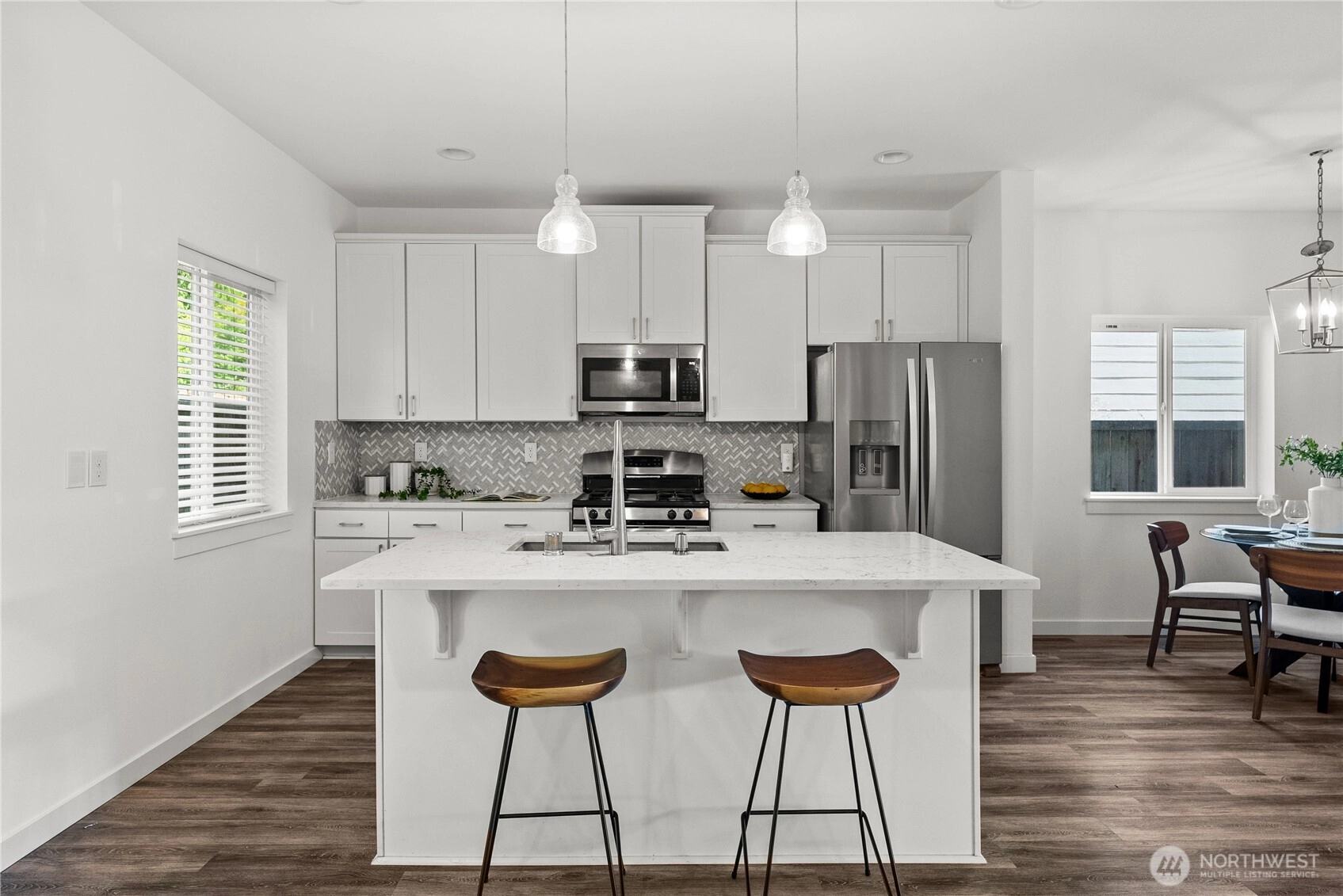 Welcome home! This 3-bedroom gem in Barber Glen is move-in ready and full of charm. Step inside to an open, bright layout featuring a spacious living area with a fireplace—perfect for cooler months. The kitchen boasts an island with bar seating, ideal for casual meals. Minisplit units provide AC for summer comfort as well! Upstairs offers 3 roomy bedrooms, including a primary suite with a gorgeous statement chandelier, 5-piece attached bathroom, and a generous walk-in closet. The low-maintenance yard includes turf, minimal grass, and an even a putting green! There’s also an EV charger in the garage! Located in a quiet development with easy highway access, this is a commuter’s dream. Don’t miss out on this Auburn gem—schedule to tour today!