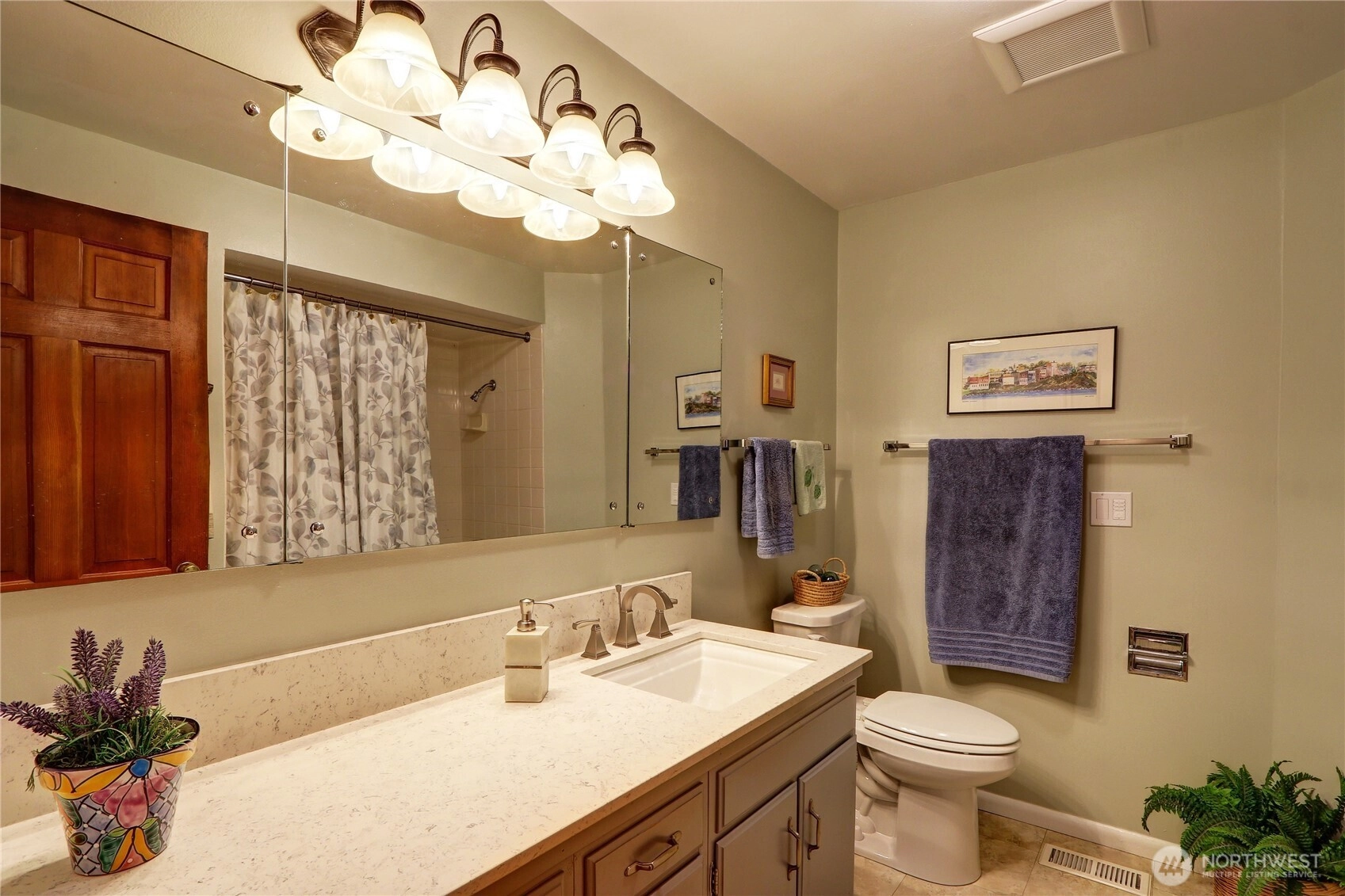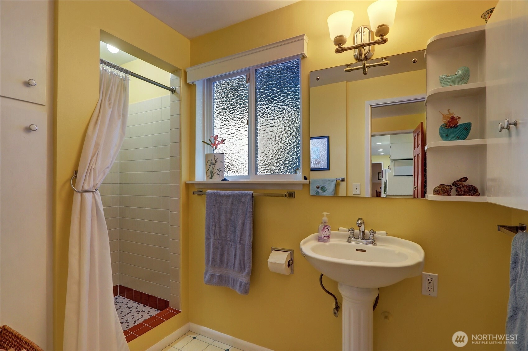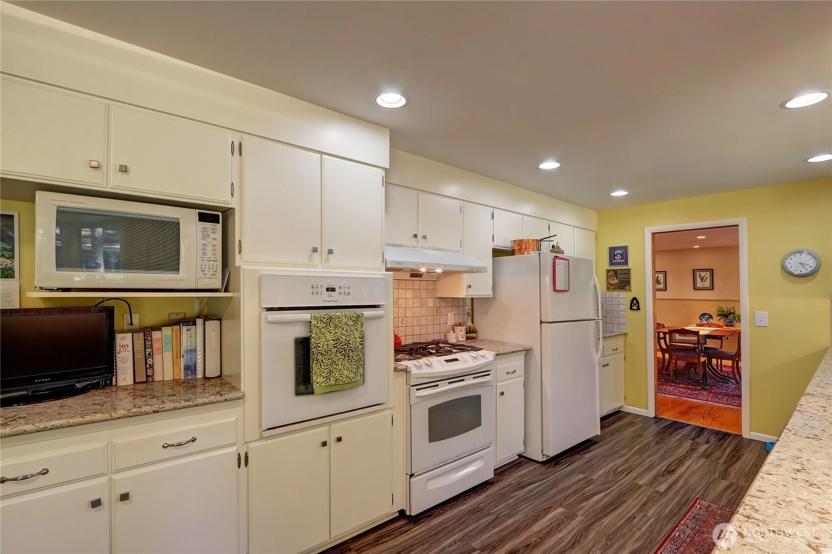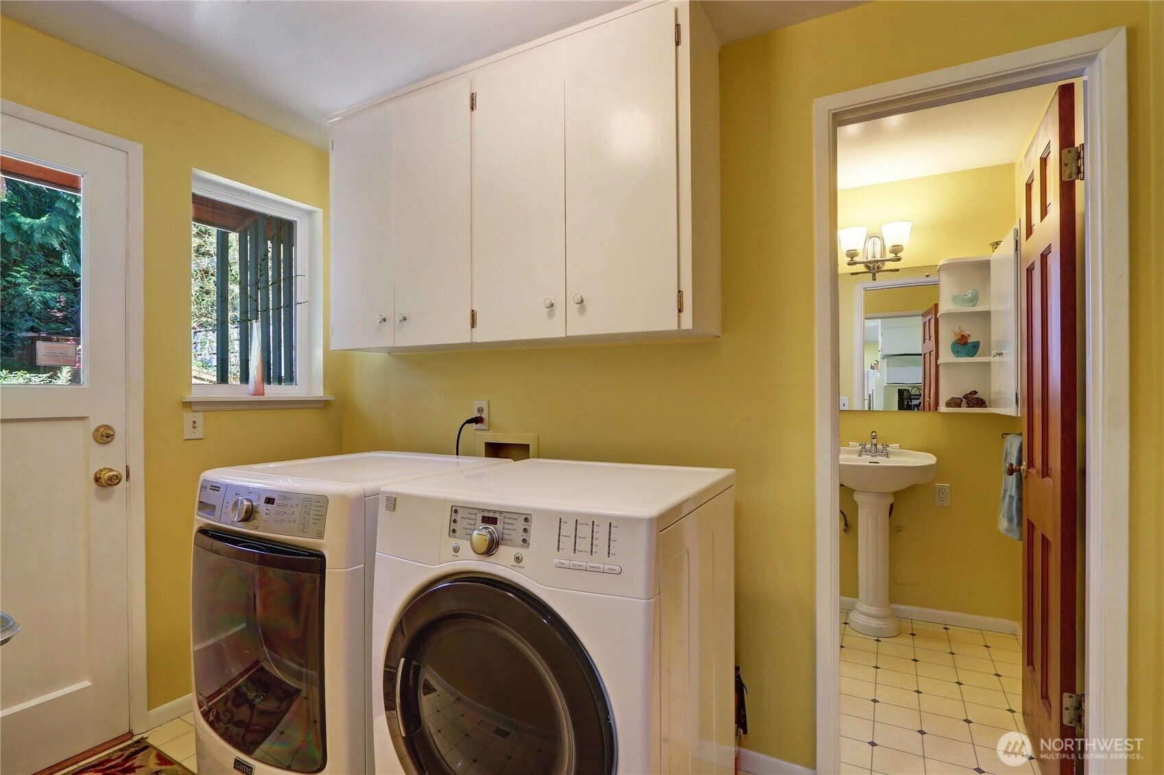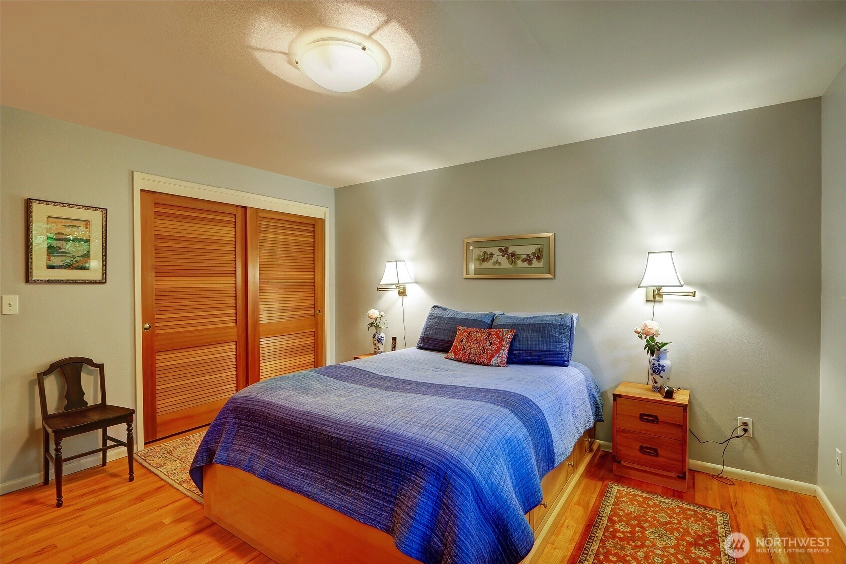 Coveted Lake Forest Park! Classic mid-century rambler sited on serene 12,500+ sq ft lot. Gracious one level living with 3 bedrooms, 3 baths, huge 3 car garage (4th bedroom and more potential). Serene end of cul de sac location. Extraordinary grounds are your own private arboretum, including stamped concrete patio and a garden house with covered deck for year round enjoyment. Large living room with paneled walls, fireplace, new picture windows. Bonus room with second fireplace. Eat in kitchen with handy 3/4 bath off it; between garage and garden. Primary bedroom with private bath. Stunning original slate entry and solid wood doors throughout. Lovingly cared for and upgraded over the years with recent roof, windows, flooring, furnace, + more