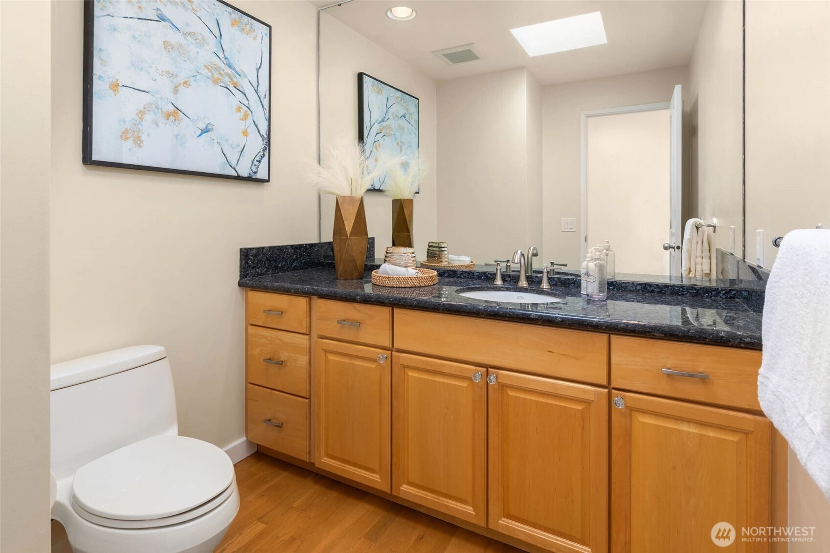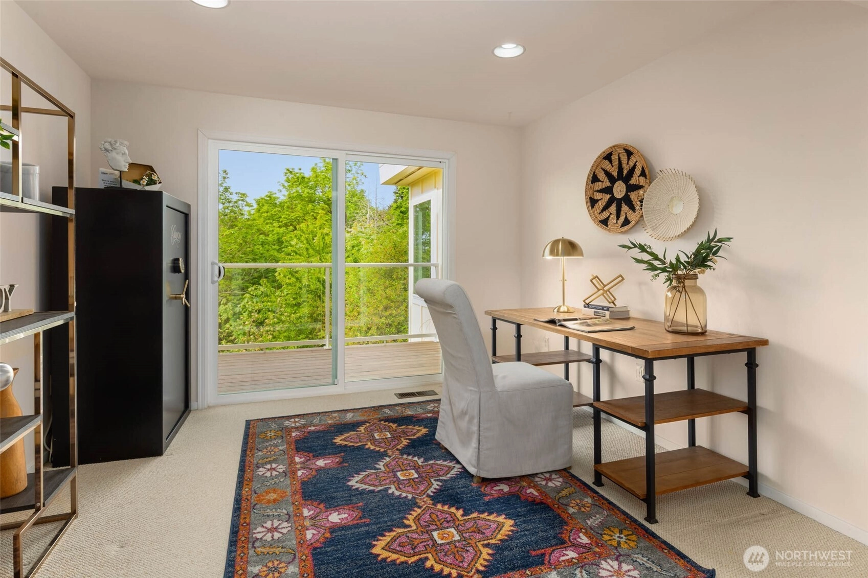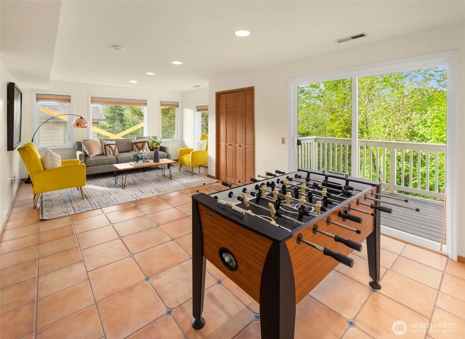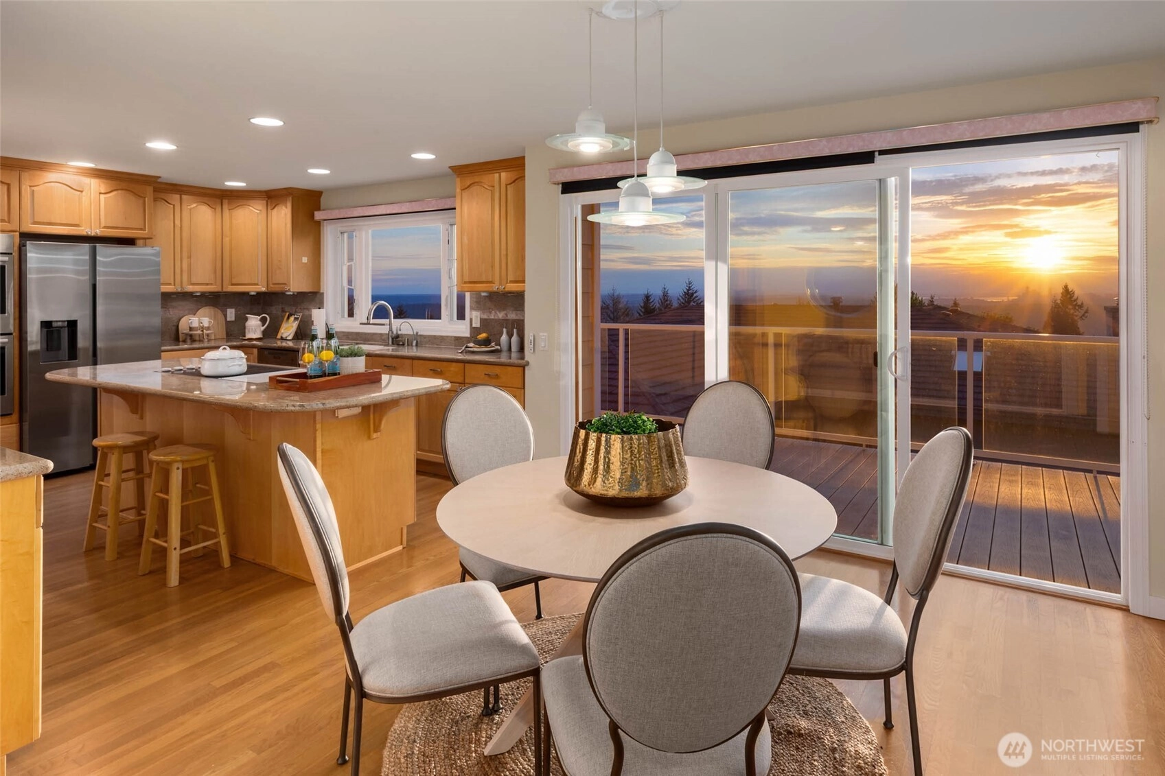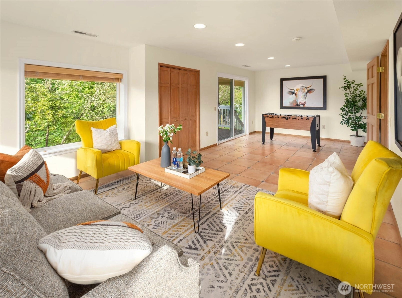 Stunning 5 bed, 3.5 bath updated home in the heart of Somerset with breathtaking Water, Mountain & City views! Nestled in a quiet neighborhood, this light-filled gem features big windows, skylights, and an expansive deck with Trex materials for easy maintenance. Main level boasts a grand foyer, spacious living/family rooms, gourmet kitchen, and a view-facing primary suite. Enjoy the convenience of an office/flex room on the main. Downstairs offers 4 bedrooms, bonus/gym, 2nd office, and a high-end media room. Luxurious steam shower & massage tub for ultimate relaxation. Lush landscaping backs to greenbelt, with a swing set and level backyard Top-rated Somerset schools, minutes to parks, Factoria, and Bellevue DT.