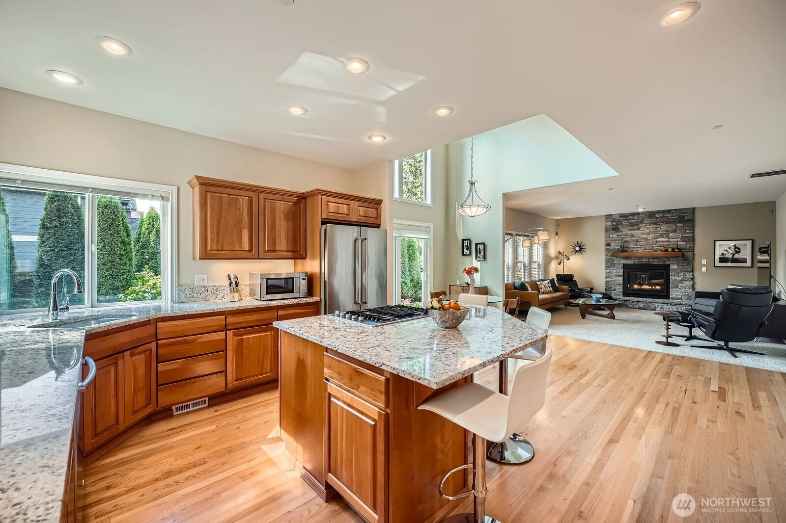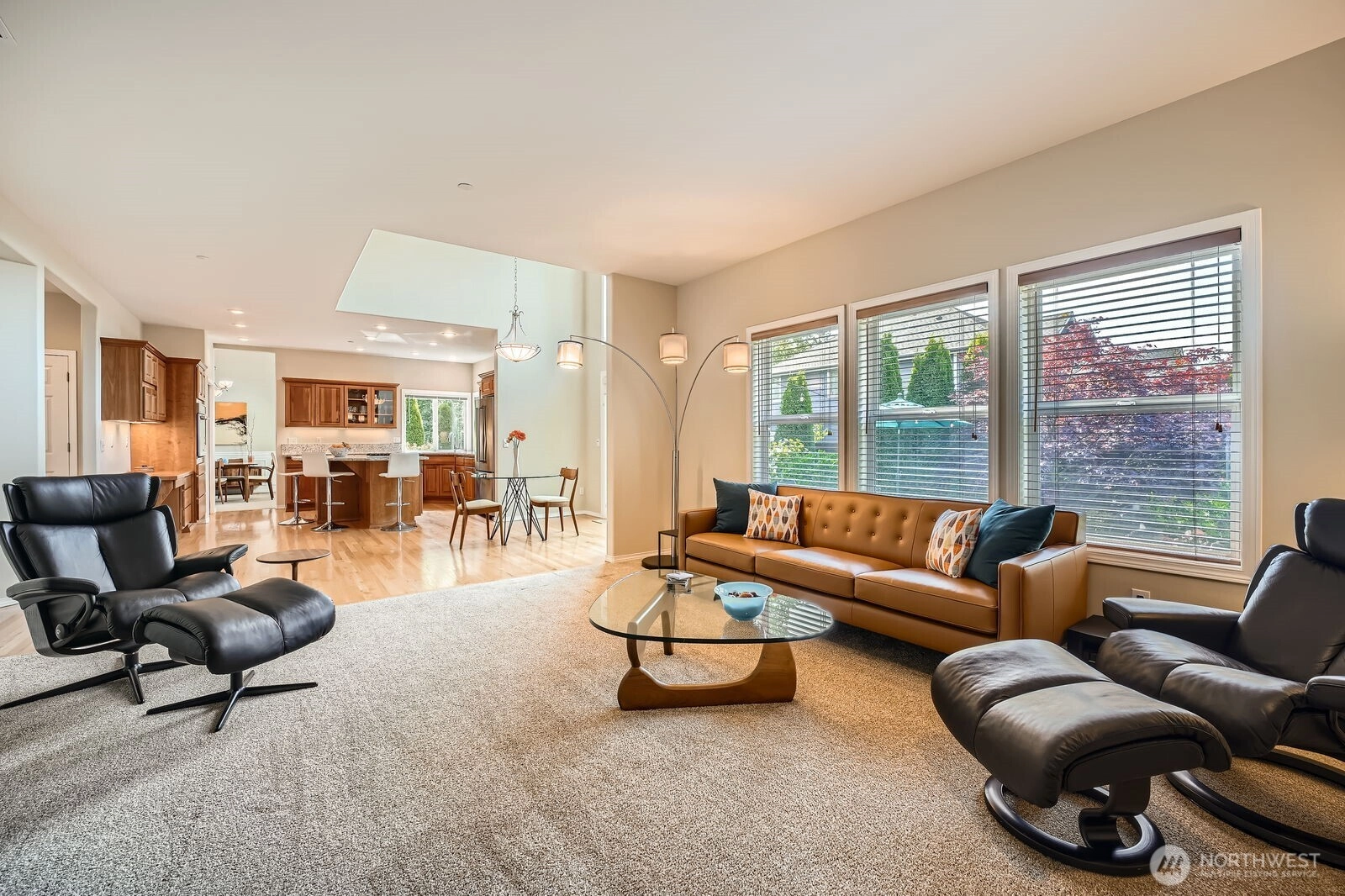 Meticulously maintained, updated and enhanced, this custom-built Northwest Contemporary's open floor plan & soaring ceilings fill the home with warm southern light. Enjoy a spacious chef’s kitchen with updated countertops, appliances & fixtures throughout. Upgrades include flooring, furnace, A/C, roof, garage doors & insulation. 3 spacious bedrooms + office or possible 4th. Relax in the serene, beautifully landscaped back yard on oversized lot w/plenty of room for an RV. Don’t miss the rare 1,000+ sf 4-car garage—perfect for vehicles, toys or workshop. Close to great schools including Hilltop Heritage Elementary, shopping, freeways, hiking trails & Sea-Tac. No HOA!