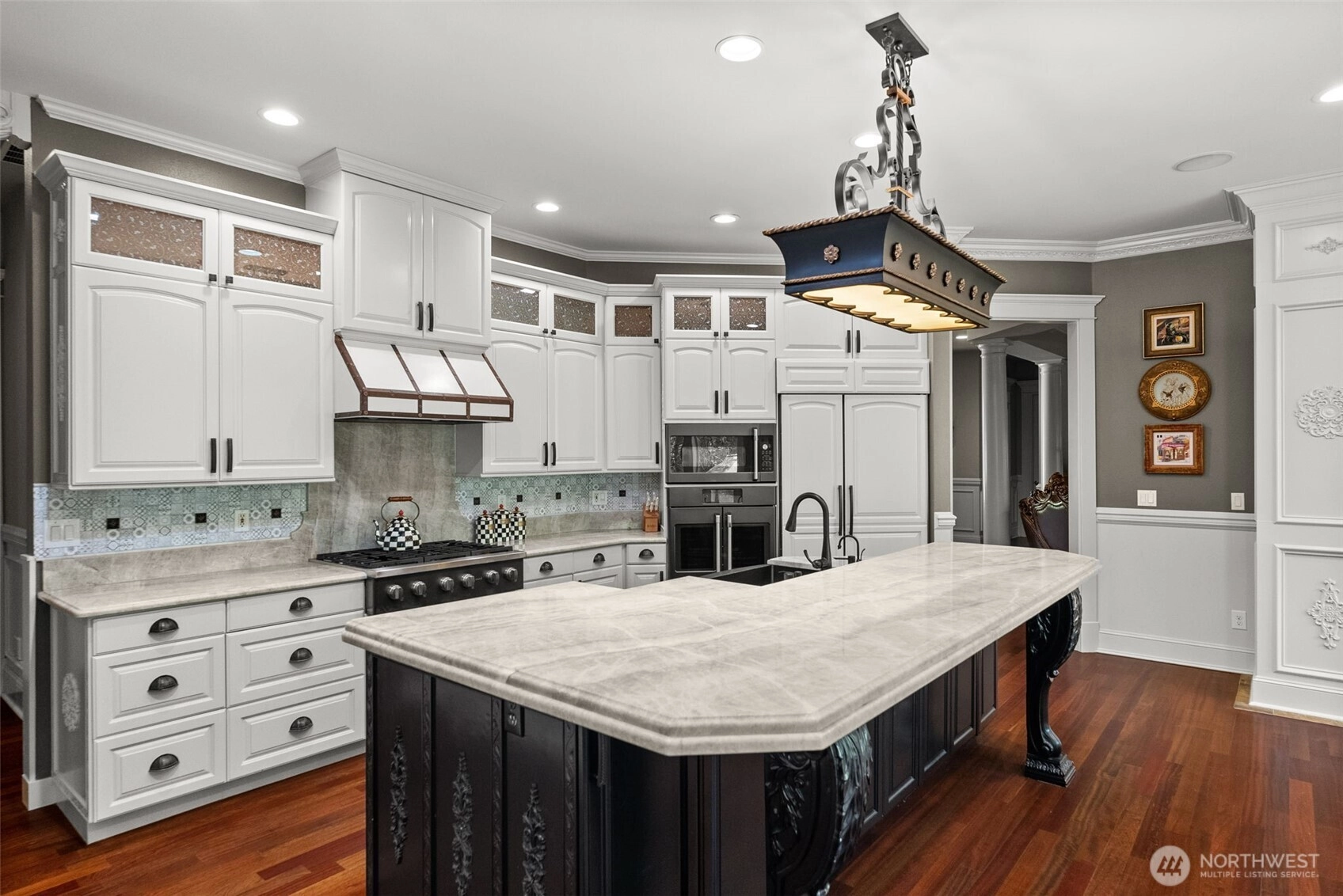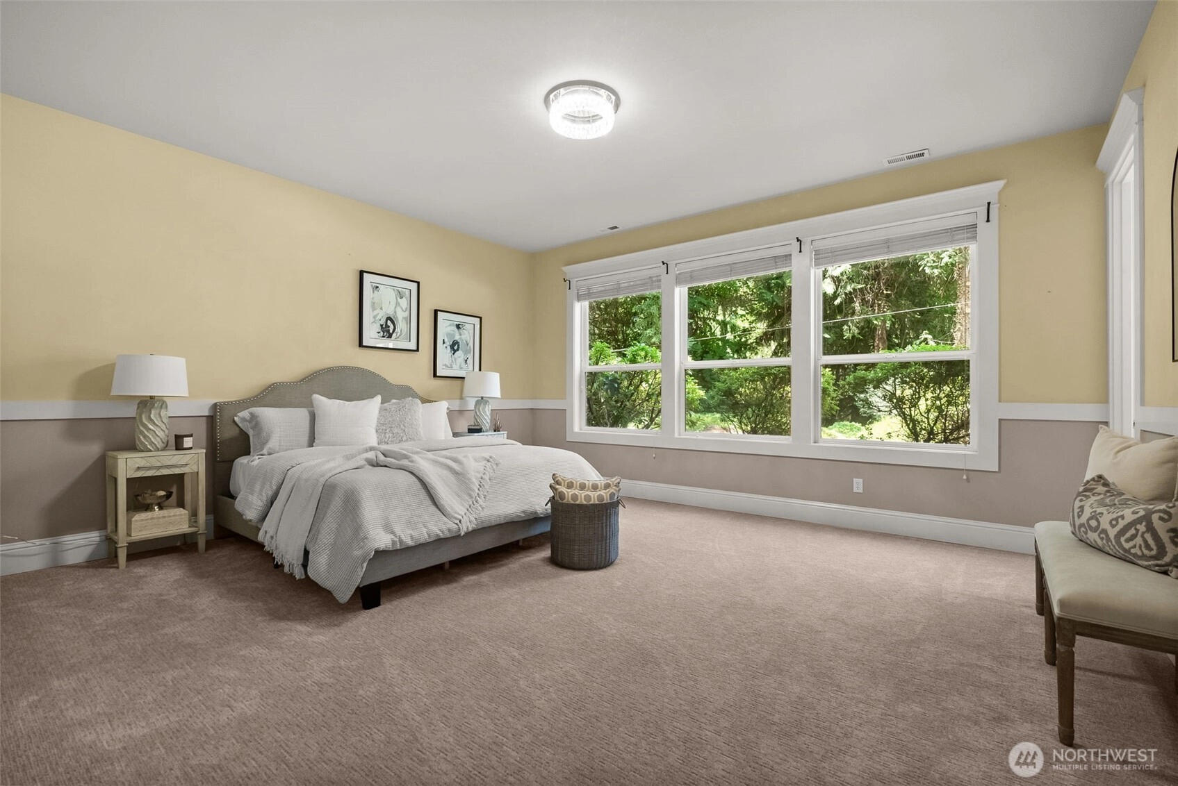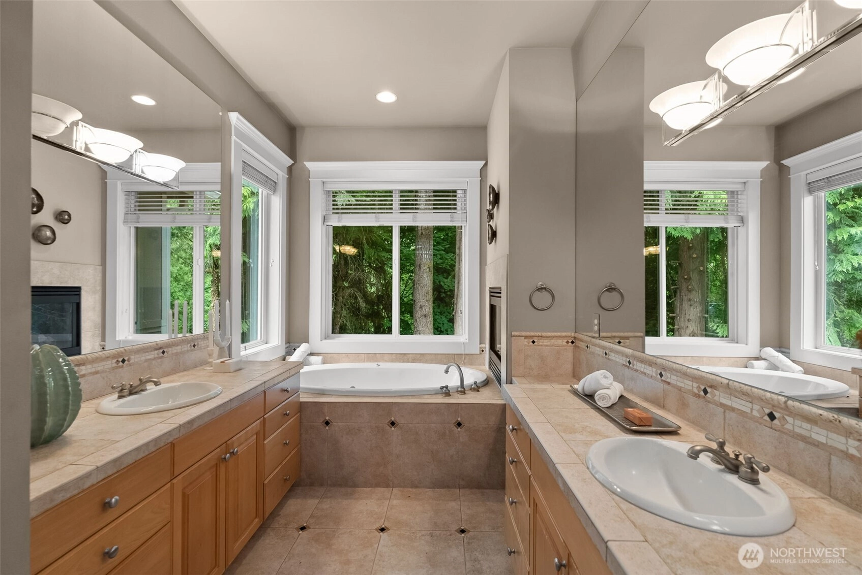 Rarely does a home blend luxury lifestyle and luxury living like this Canterwood Golf & Country Club estate. Featuring 5 spacious en-suites with private baths and walk-in closets, this home offers soaring ceilings, a theater, office, gym, craft room, and 4-car garage with golf cart/RV bay. Nestled against a serene greenbelt, enjoy unmatched privacy. Upgrades include a 50-year roof, new paint, remodeled kitchen, new appliances, new carpet, built in pantry & refinished hardwoods. Enjoy Canterwood amenities: golf, pool, pickleball, tennis, dining, events, and parks. Minutes to freeway, top schools, hospital, and downtown Gig Harbor.