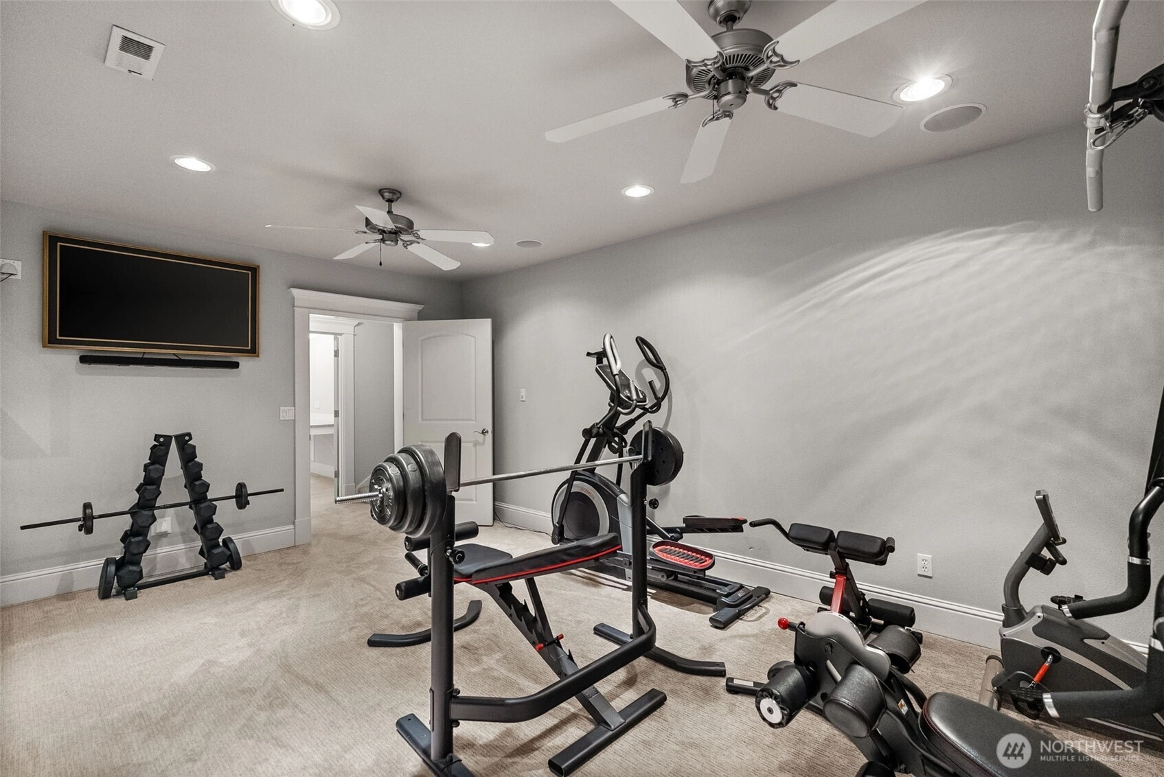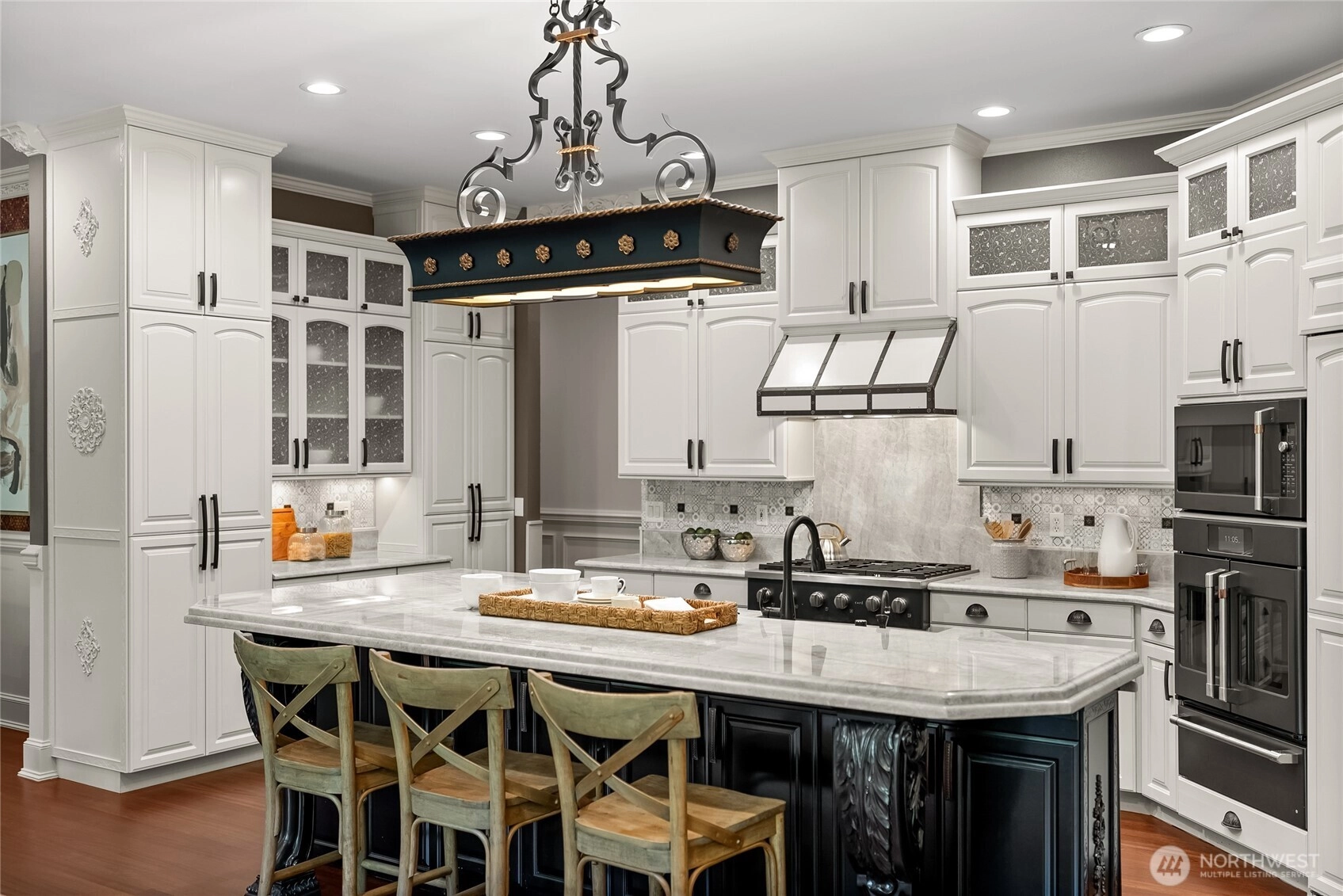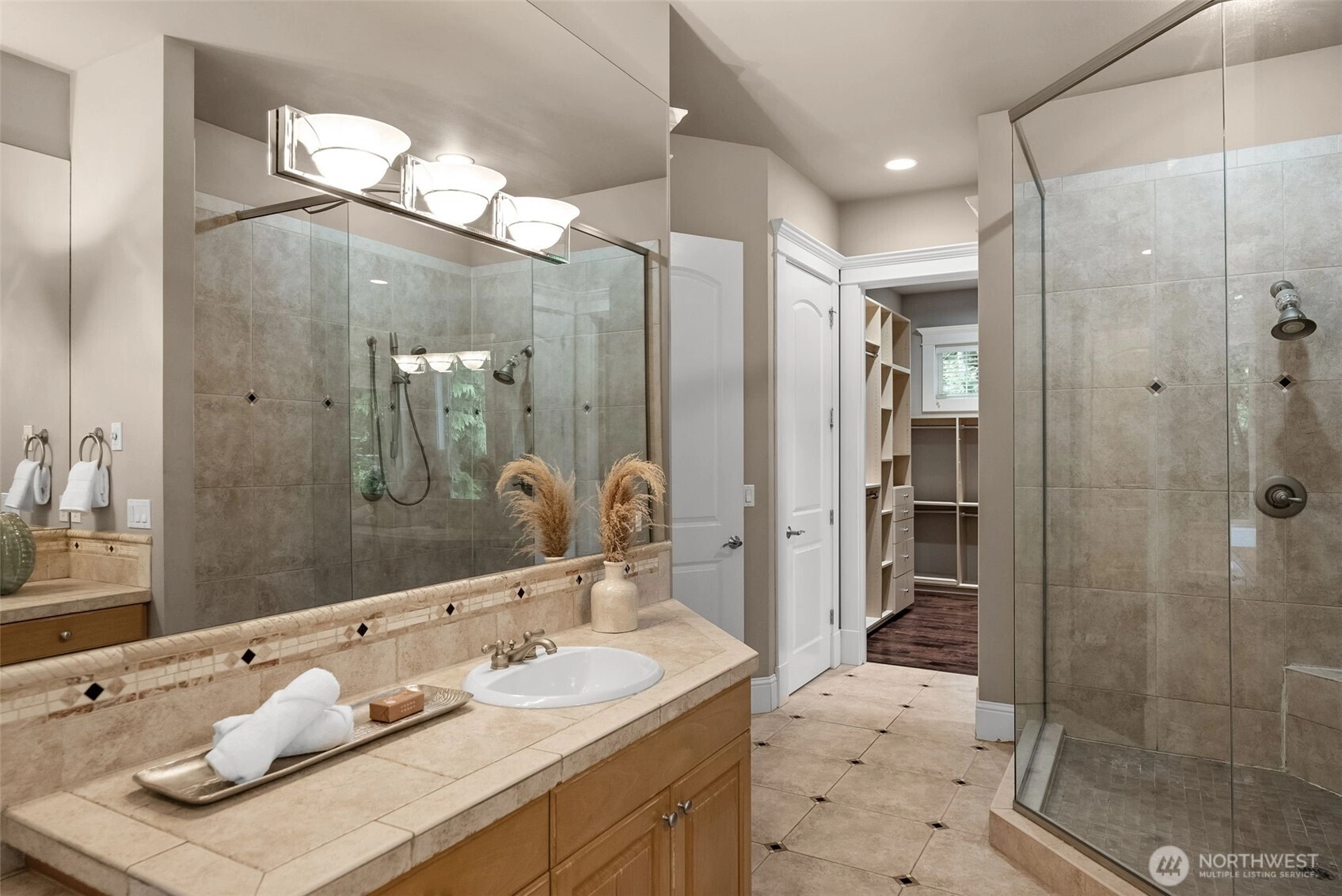 Rarely does a home blend luxury lifestyle and luxury living like this Canterwood Golf & Country Club estate. Featuring 5 spacious en-suites with private baths and walk-in closets, this home offers soaring ceilings, a theater, office, gym, craft room, and 4-car garage with golf cart/RV bay. Nestled against a serene greenbelt, enjoy unmatched privacy. Upgrades include a 50-year roof, new paint, remodeled kitchen, new appliances, new carpet, built in pantry & refinished hardwoods. Enjoy Canterwood amenities: golf, pool, pickleball, tennis, dining, events, and parks. Minutes to freeway, top schools, hospital, and downtown Gig Harbor.