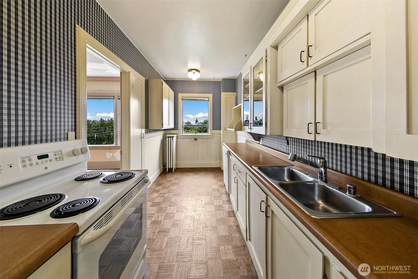Step back in time and embrace the romance of old-world Seattle in the Historic Lansdowne Condominium. This rare South/East-facing corner unit captures the city’s beauty from every angle. Built in the 1930s, the Lansdowne’s timeless architecture and landscaped grounds set the stage for a home ready to be restored to its classic elegance. From your windows, watch both New Year’s Eve and Fourth of July fireworks light up the sky. On a clear day you can even get a peak at Mt. Baker. Includes a personal garage, storage, and access to a community deck above the garage. Recent upstairs sale at $725,000 highlights the opportunity—this home is offered As-Is at a fraction of the price.