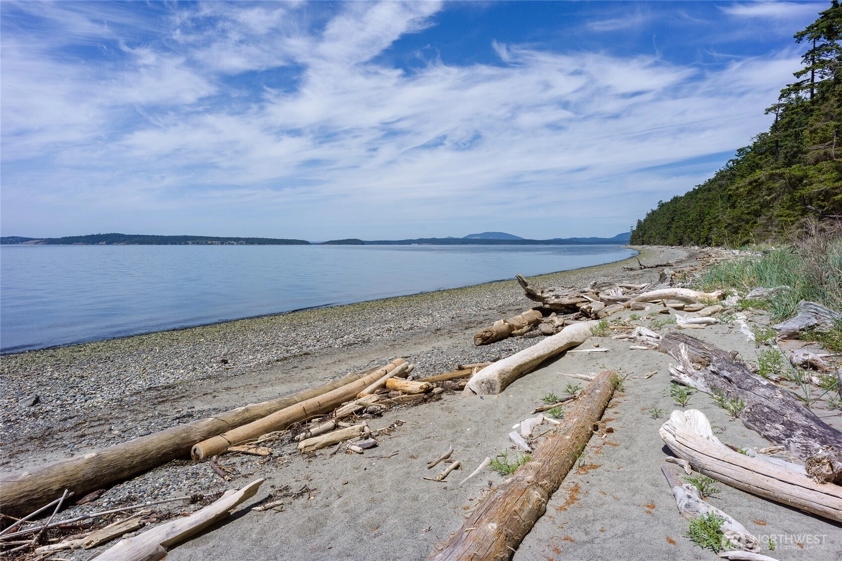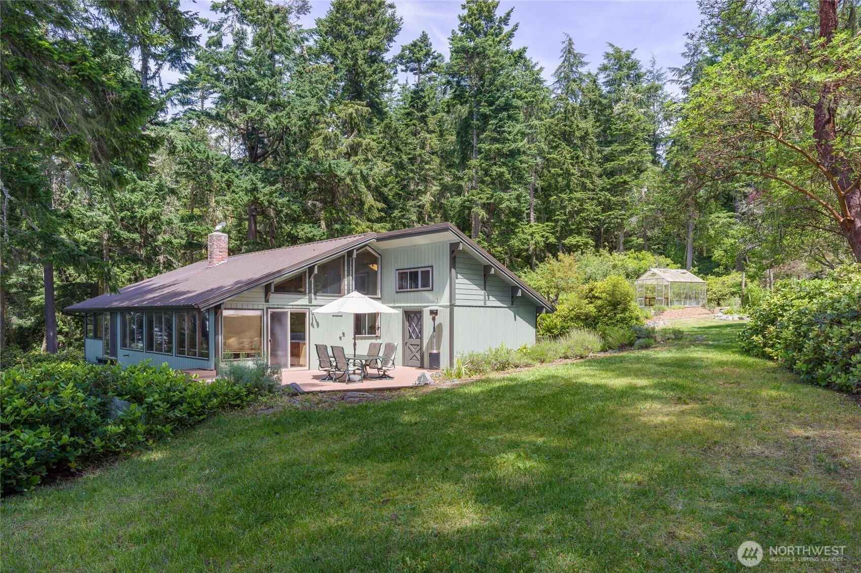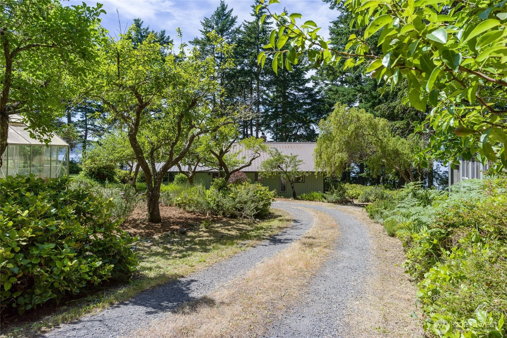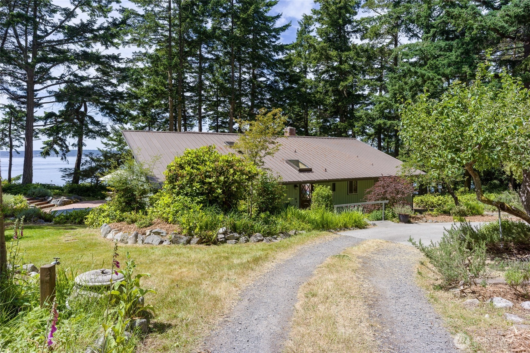 Westside, all cedar beach house tucked at the end of a quiet road offers 295 ft WF & views over San Juan Channel, the Straits & Olympic Mtns. Easy trail to miles of some of the best beach on Lopez. The single-level, 2bd/2ba home has vaulted ceilings open to walls of windows to capture the views & vibrant sunsets. Inside maple floors, warm cedar walls & ceilings, cozy brick FP. den/office & project room. Step outside to a large deck, hot tub & beach pebble patio to enjoy the natural tranquility. Detached garage with separate exercise/guest space, well finished shop, greenhouse, storage building, fruit trees & garden. Set on 5 wooded park-like acres with walking trail. Close to the golf course and a 10 minute drive to the Village.