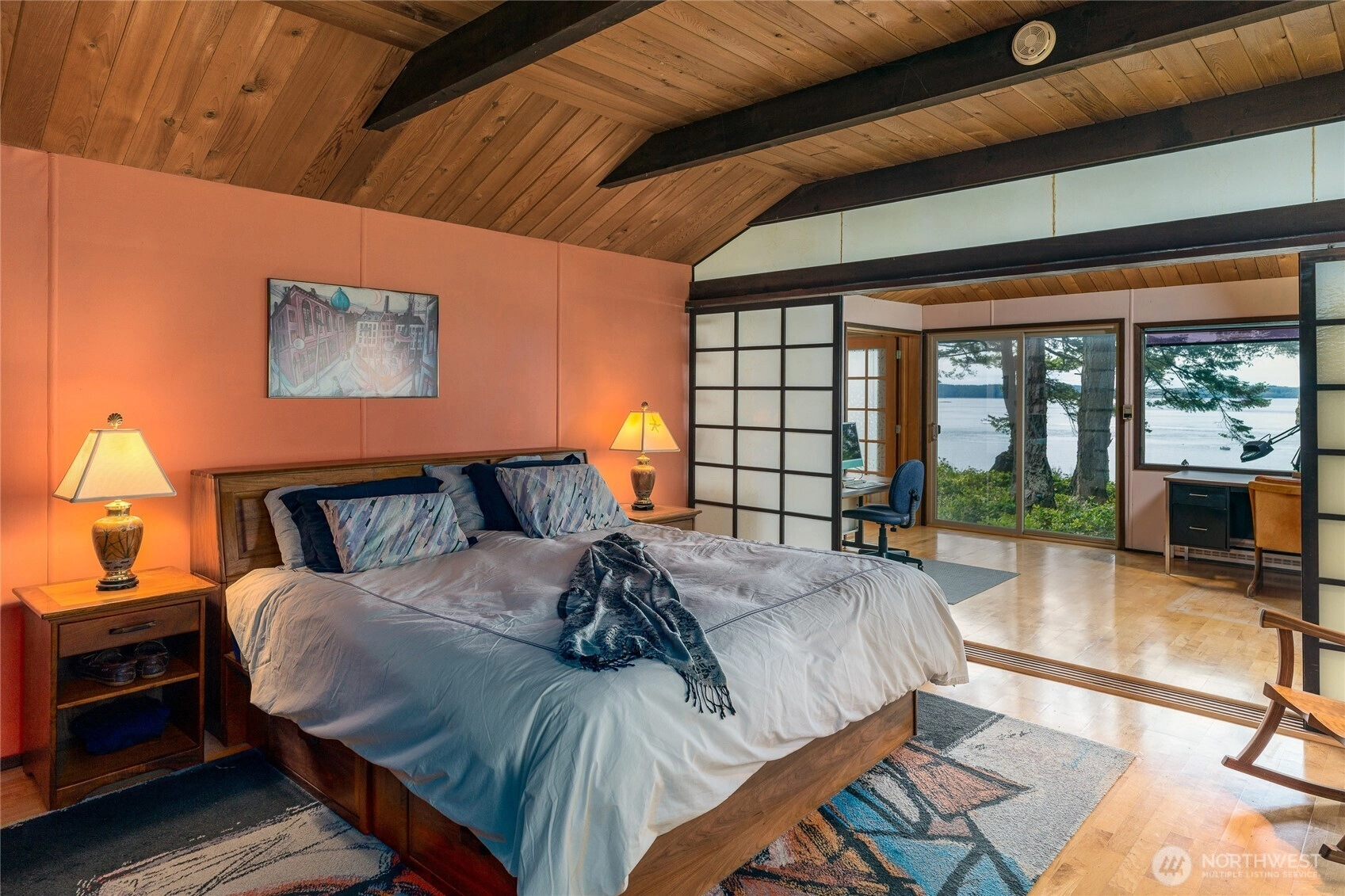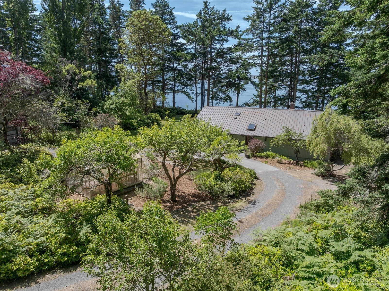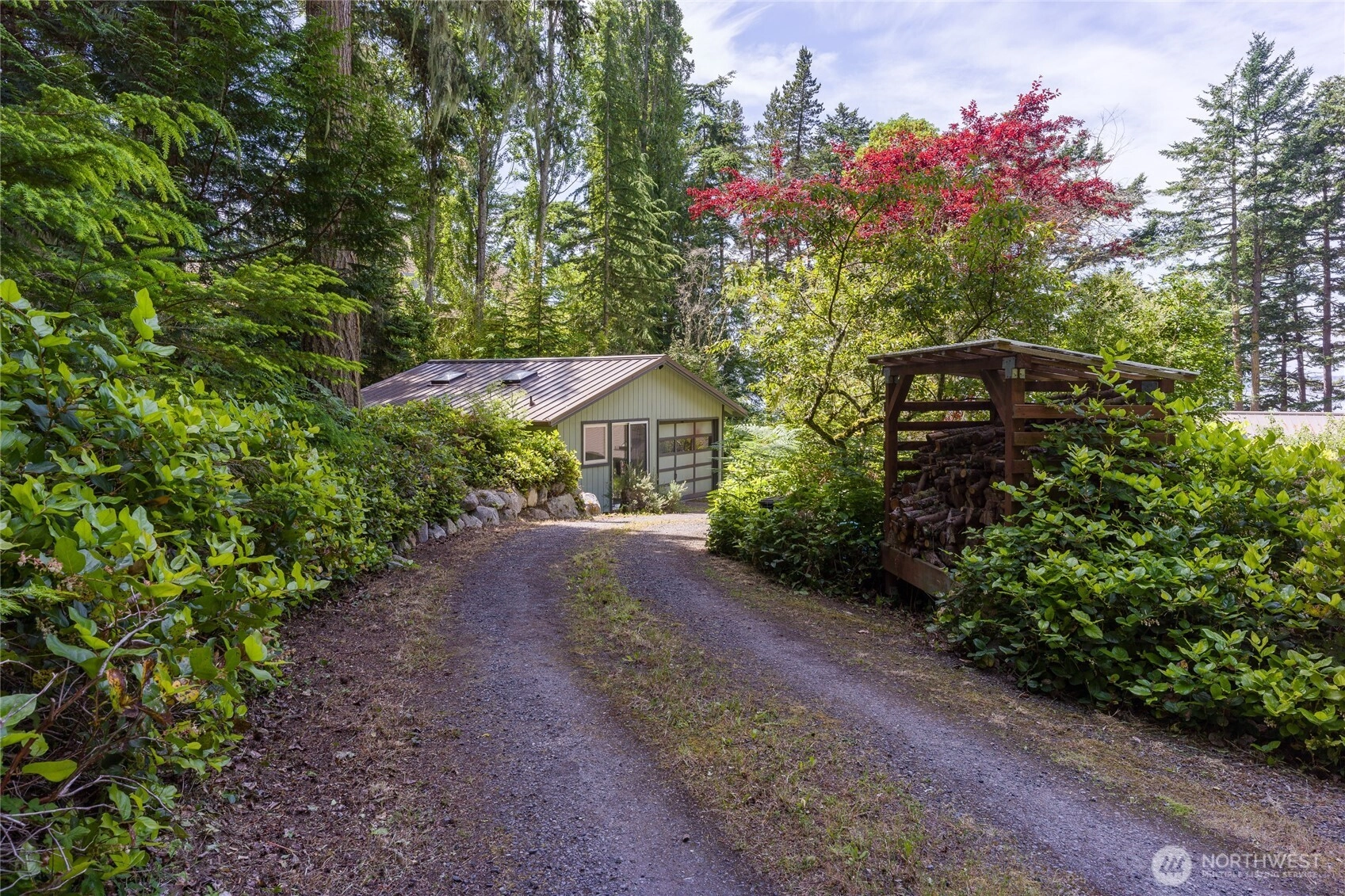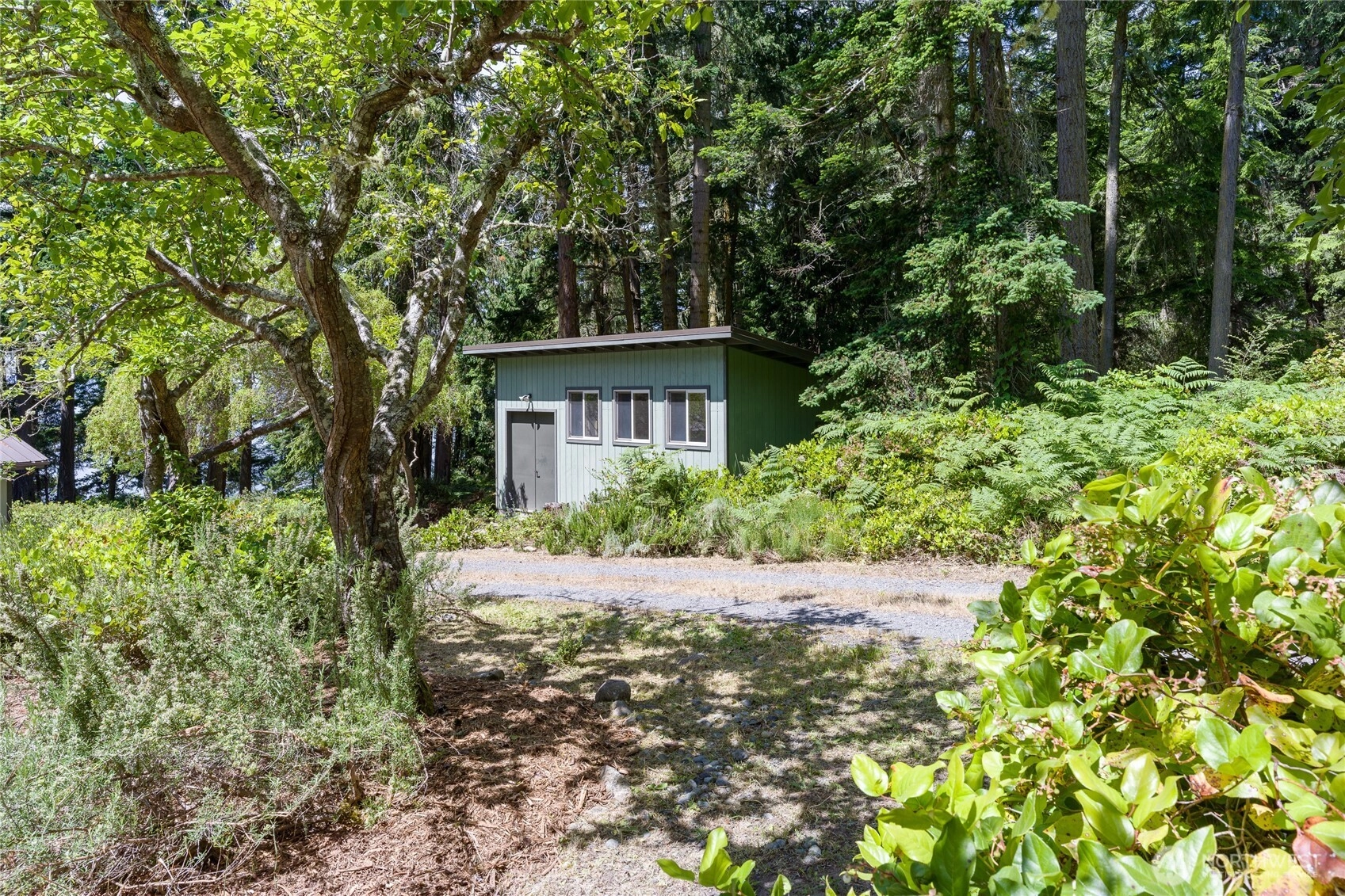 Westside, all cedar beach house tucked at the end of a quiet road offers 295 ft WF & views over San Juan Channel, the Straits & Olympic Mtns. Easy trail to miles of some of the best beach on Lopez. The single-level, 2bd/2ba home has vaulted ceilings open to walls of windows to capture the views & vibrant sunsets. Inside maple floors, warm cedar walls & ceilings, cozy brick FP. den/office & project room. Step outside to a large deck, hot tub & beach pebble patio to enjoy the natural tranquility. Detached garage with separate exercise/guest space, well finished shop, greenhouse, storage building, fruit trees & garden. Set on 5 wooded park-like acres with walking trail. Close to the golf course and a 10 minute drive to the Village.