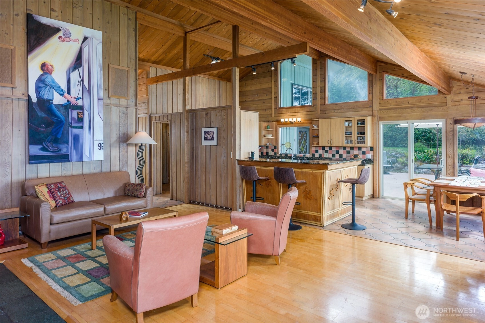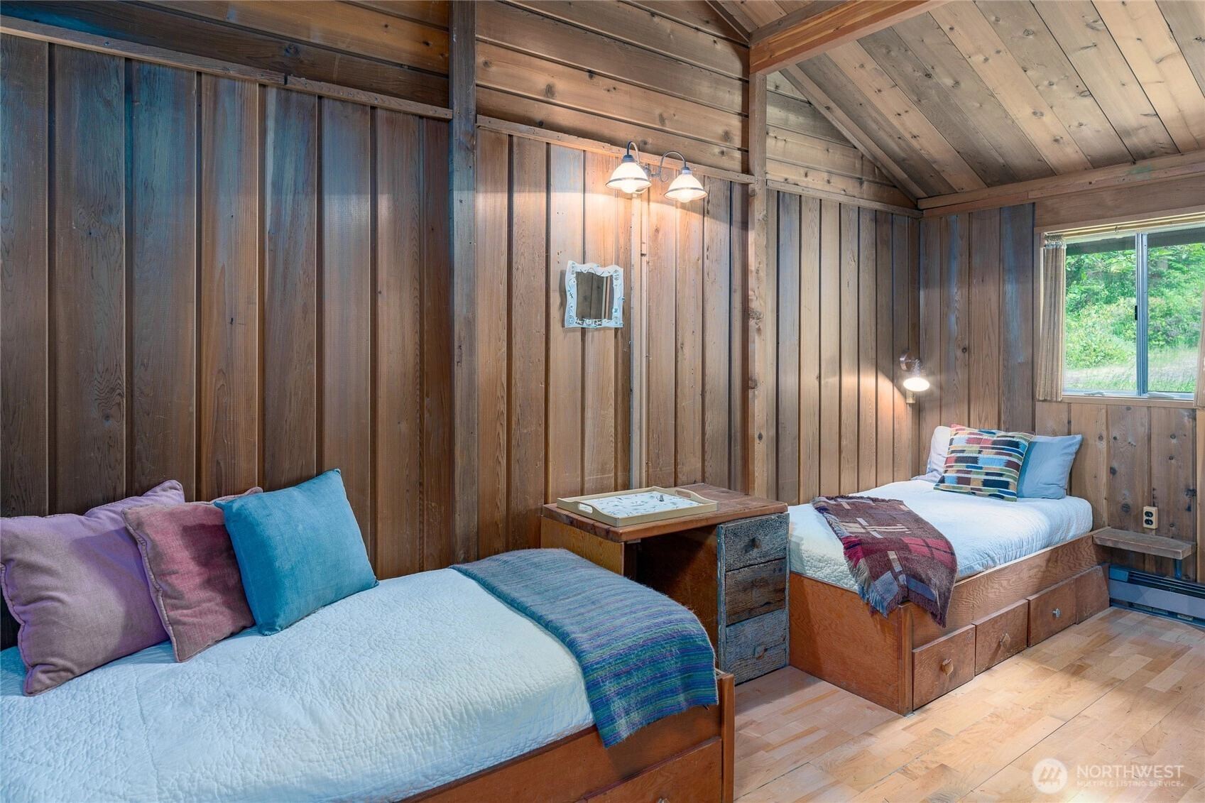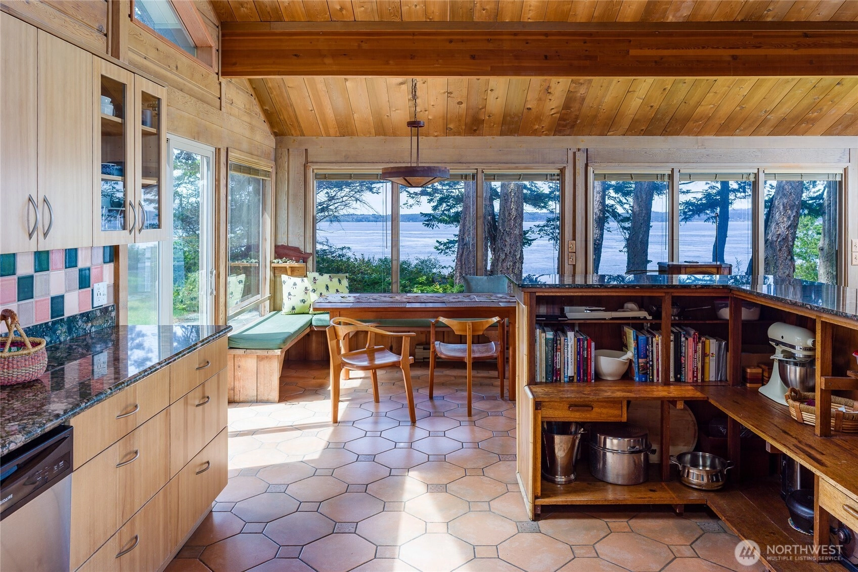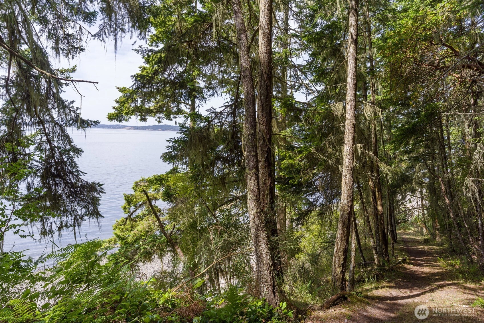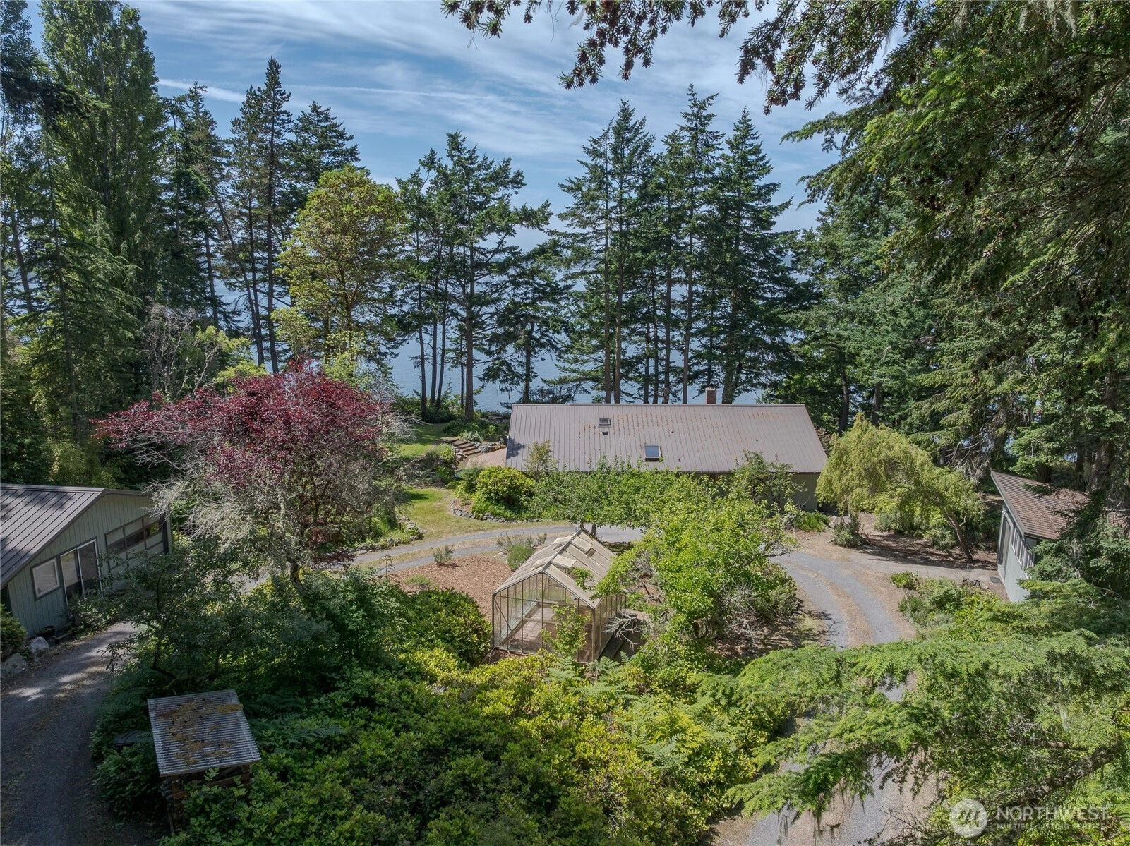 Westside, all cedar beach house tucked at the end of a quiet road offers 295 ft WF & views over San Juan Channel, the Straits & Olympic Mtns. Easy trail to miles of some of the best beach on Lopez. The single-level, 2bd/2ba home has vaulted ceilings open to walls of windows to capture the views & vibrant sunsets. Inside maple floors, warm cedar walls & ceilings, cozy brick FP. den/office & project room. Step outside to a large deck, hot tub & beach pebble patio to enjoy the natural tranquility. Detached garage with separate exercise/guest space, well finished shop, greenhouse, storage building, fruit trees & garden. Set on 5 wooded park-like acres with walking trail. Close to the golf course and a 10 minute drive to the Village.