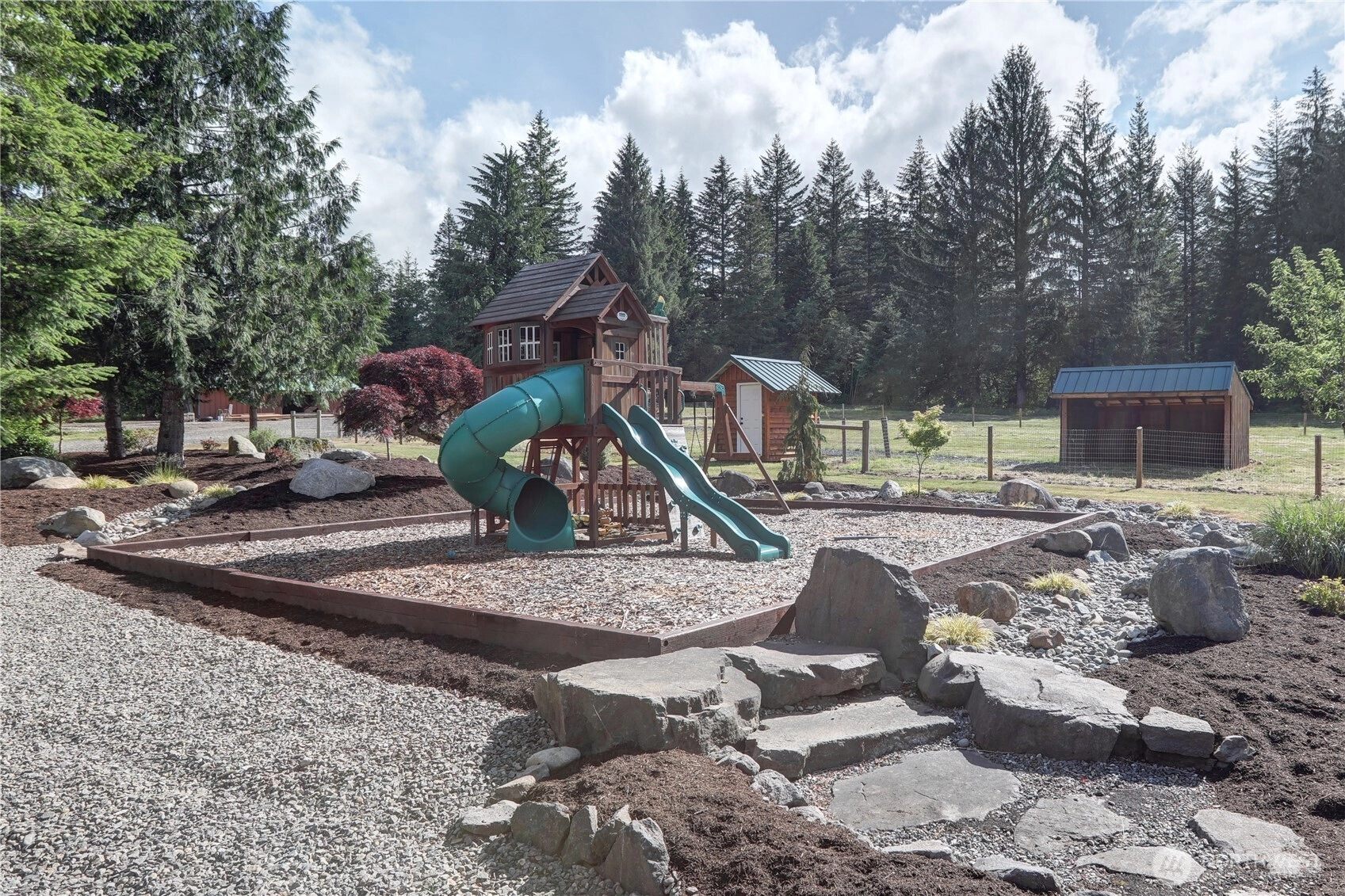 Priced to sell! Truly one-of-a-kind! 10 acres with peaceful forests and open pastures this property offers unmatched privacy and endless possibilities. Whether you’re looking for a serene escape, hobby farm, or just room to breathe, this home delivers it all and a Massive Shop!. Pictures can’t capture how special it is! 2 beds + a large den, 2 full baths, hardwood plank flrs, fresh int paint, 2 cozy FP, wood planked ceilings, new roof (2023), new siding. Huge luxurious master suite. Incredible covered patio entertaining space: outdoor kitchen, custom tables, astro turf. Feels like a resort. Pasture for your farm animals and plenty of space to garden. Covered Parking (10+cars), A shooting range & Giant safe room too! Tahoma Schools