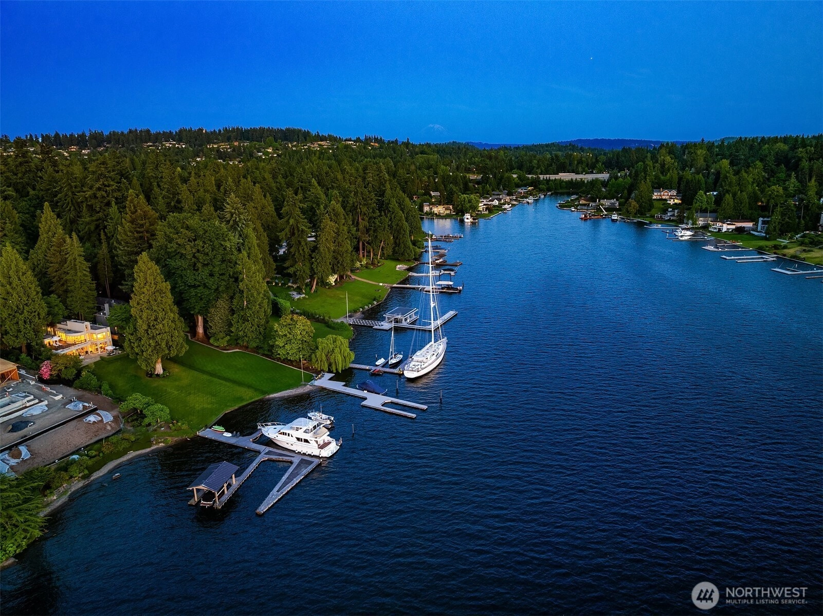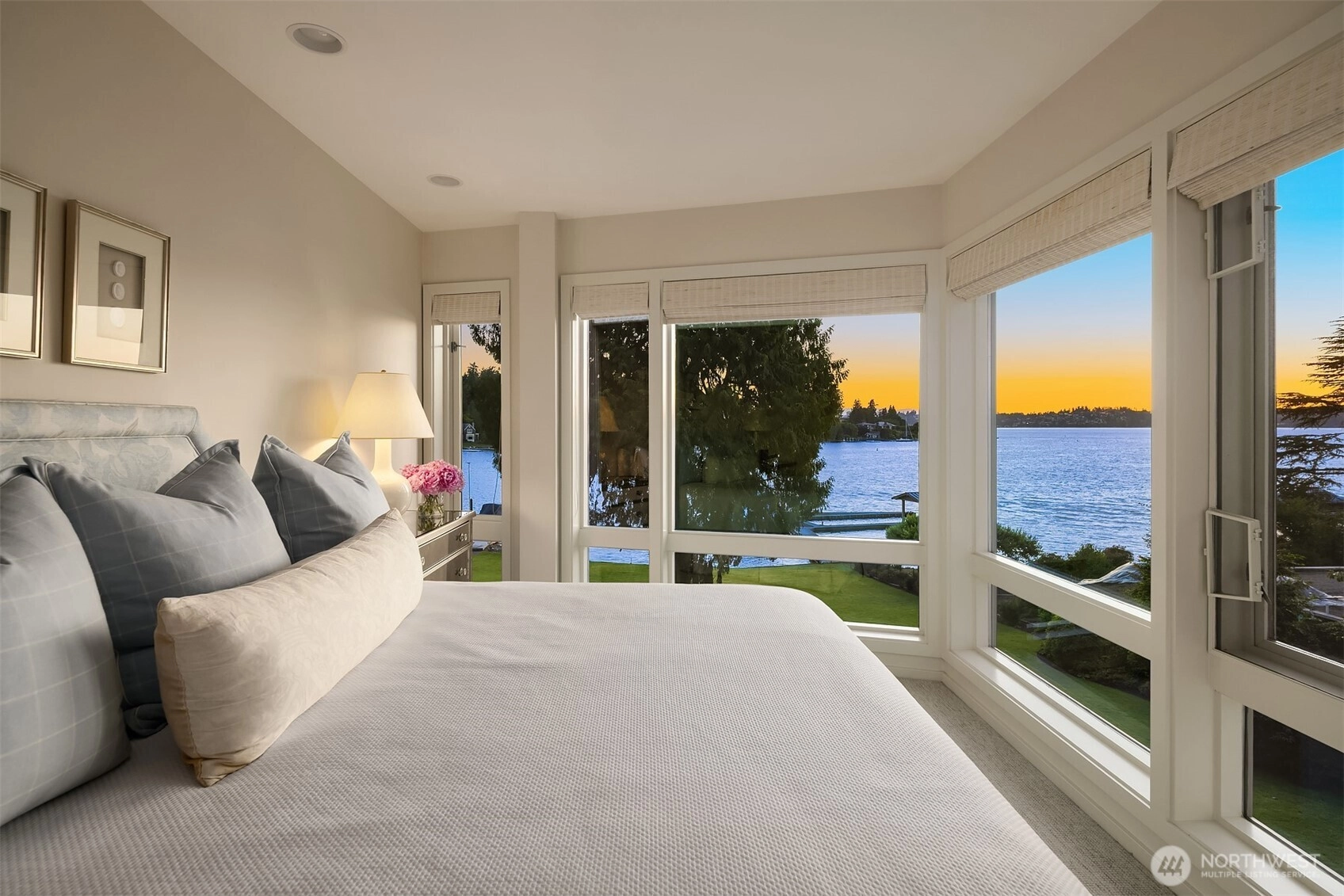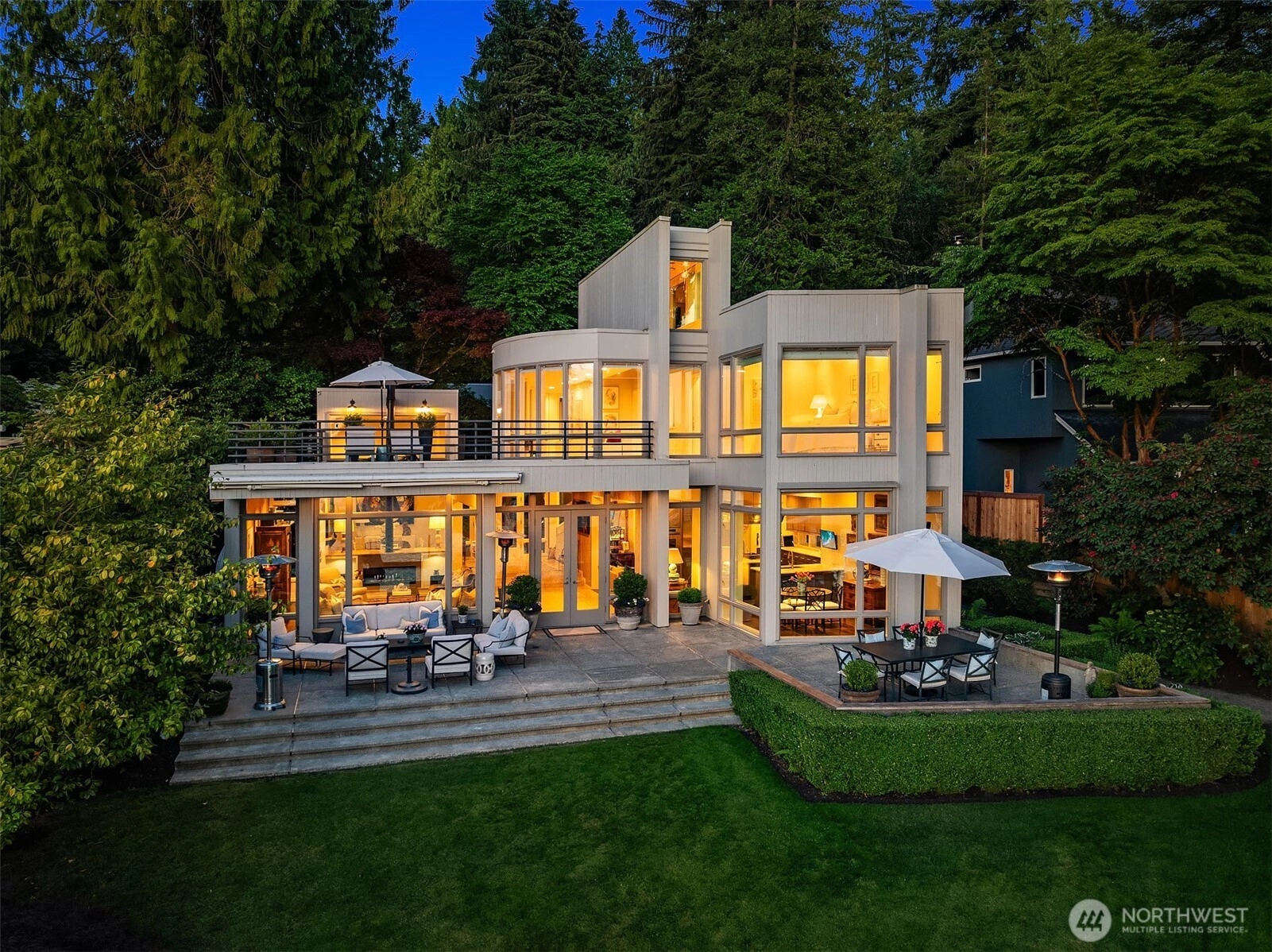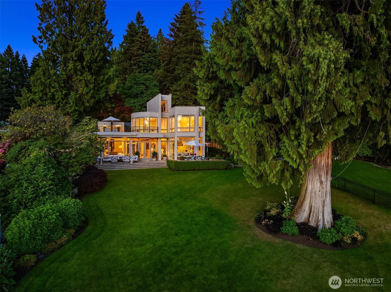 Sited on Hunts Point west-facing. This NW Contemporary by Jim Olson offers 68’ of waterfront. Soaring ceilings & gallery-style interiors with walls of glass frame stunning views. The gourmet kitchen makes a compelling case for canceling reservations in favor of lakeside dining. The primary suite features lake views, deep soaking tub, dressing room & access to the upper deck—perfect for quiet mornings & evening sunsets. Curved glass office, guest suites & media room add flexibility. Landscaping creates a private, retreat setting. The dock accommodates three boats. Private driveway, 3-car garage & minutes to Bellevue & Seattle. Live beautifully on the lake.