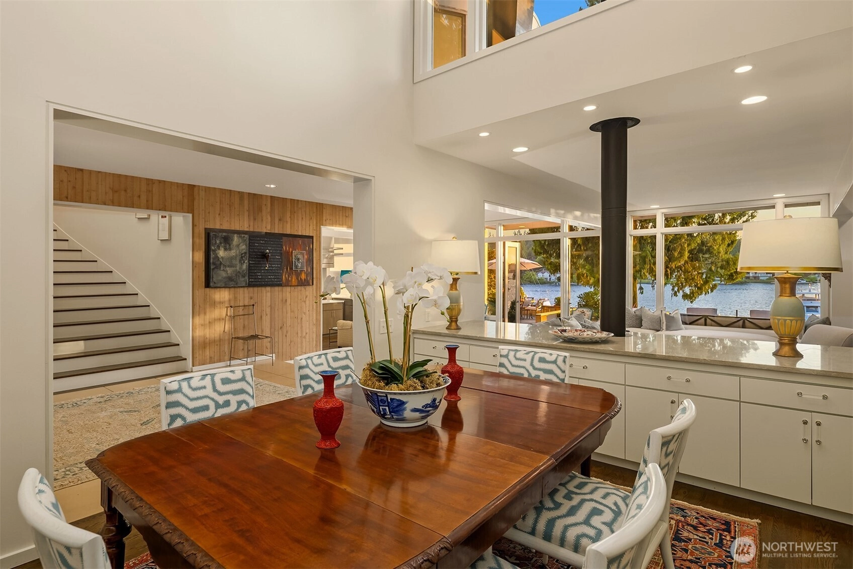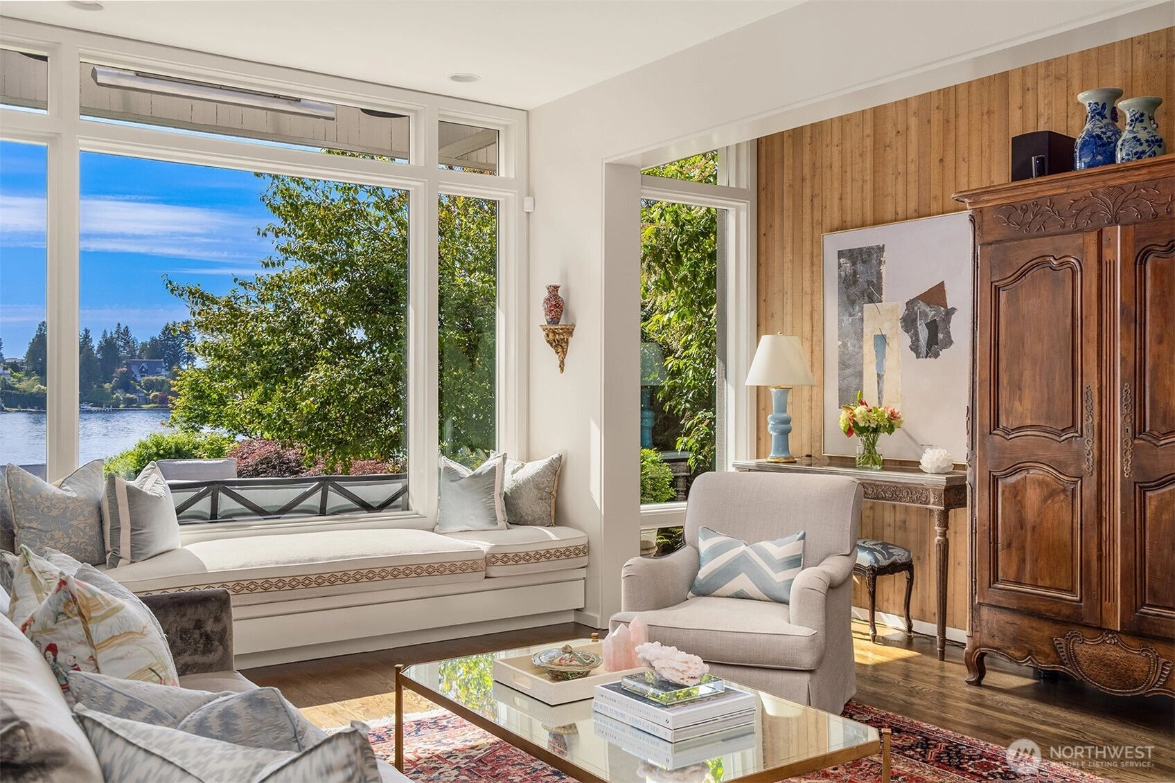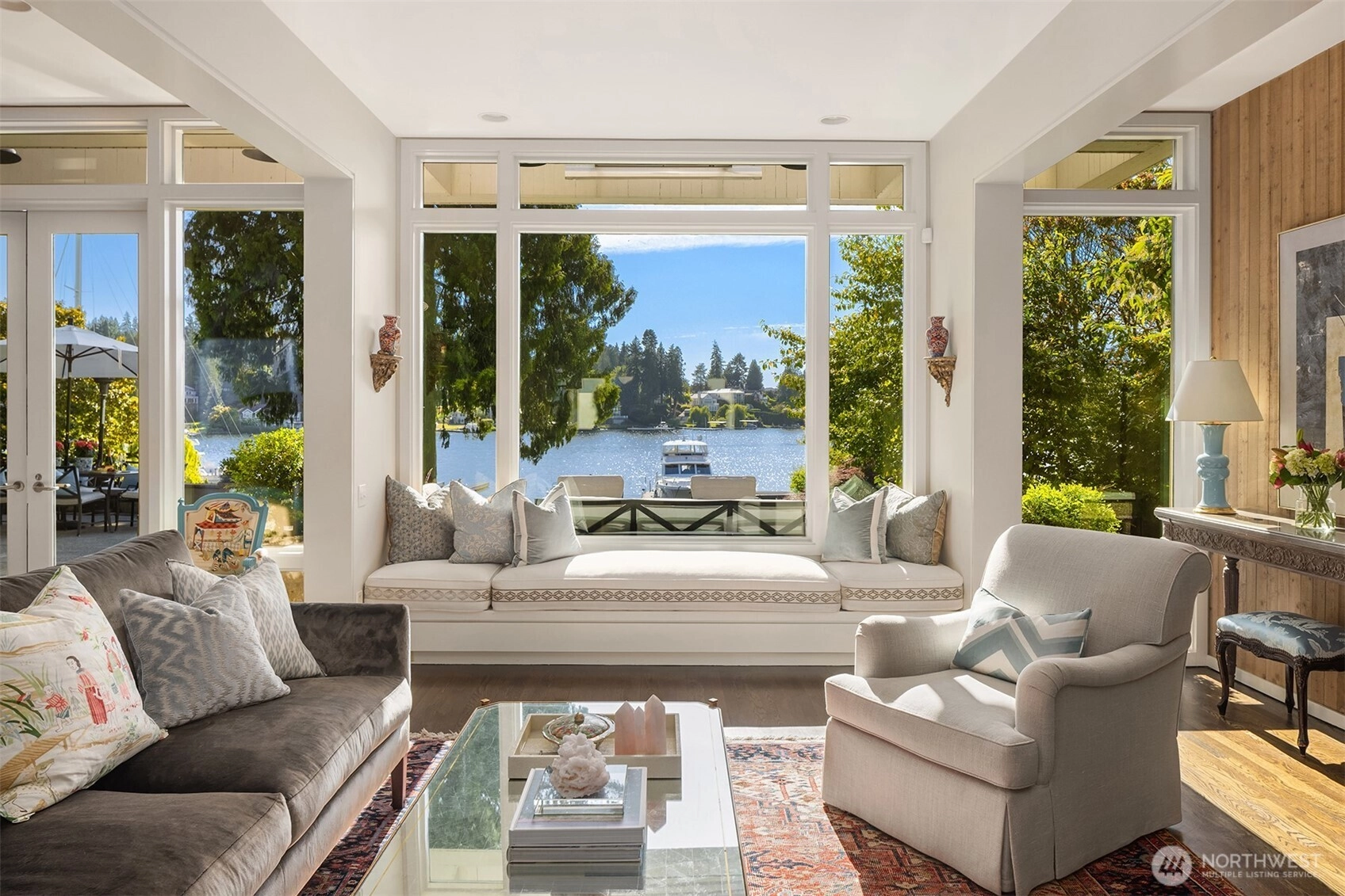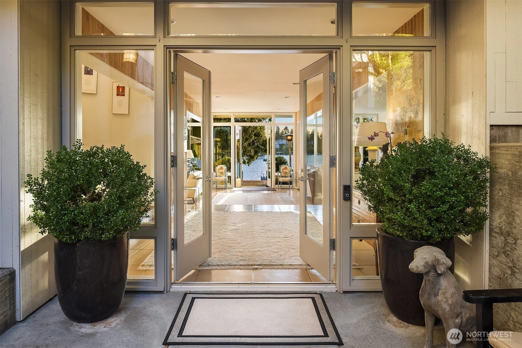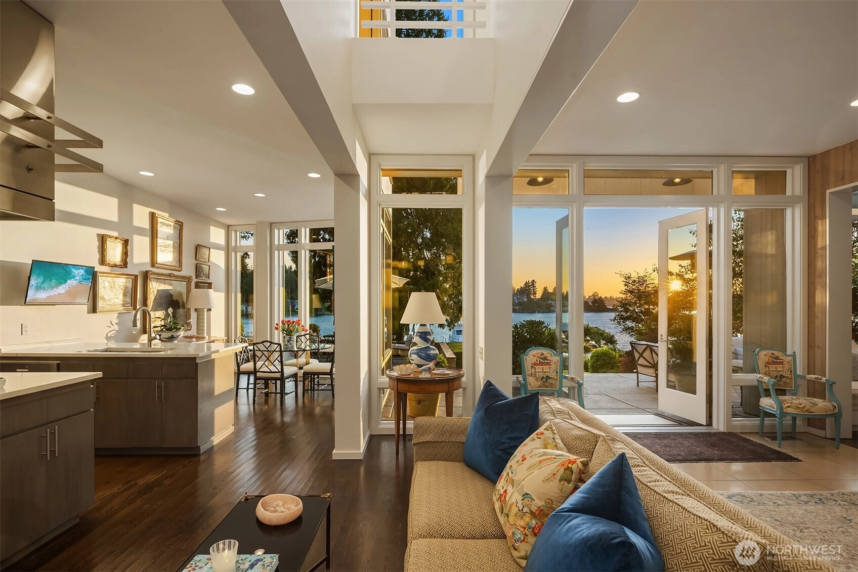 Sited on Hunts Point west-facing. This NW Contemporary by Jim Olson offers 68’ of waterfront. Soaring ceilings & gallery-style interiors with walls of glass frame stunning views. The gourmet kitchen makes a compelling case for canceling reservations in favor of lakeside dining. The primary suite features lake views, deep soaking tub, dressing room & access to the upper deck—perfect for quiet mornings & evening sunsets. Curved glass office, guest suites & media room add flexibility. Landscaping creates a private, retreat setting. The dock accommodates three boats. Private driveway, 3-car garage & minutes to Bellevue & Seattle. Live beautifully on the lake.