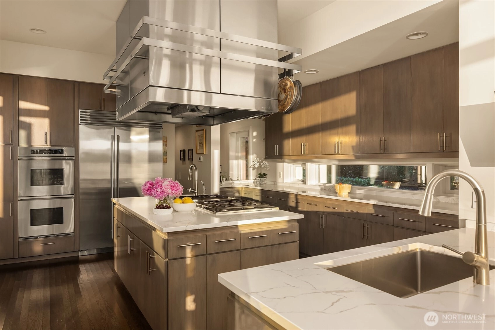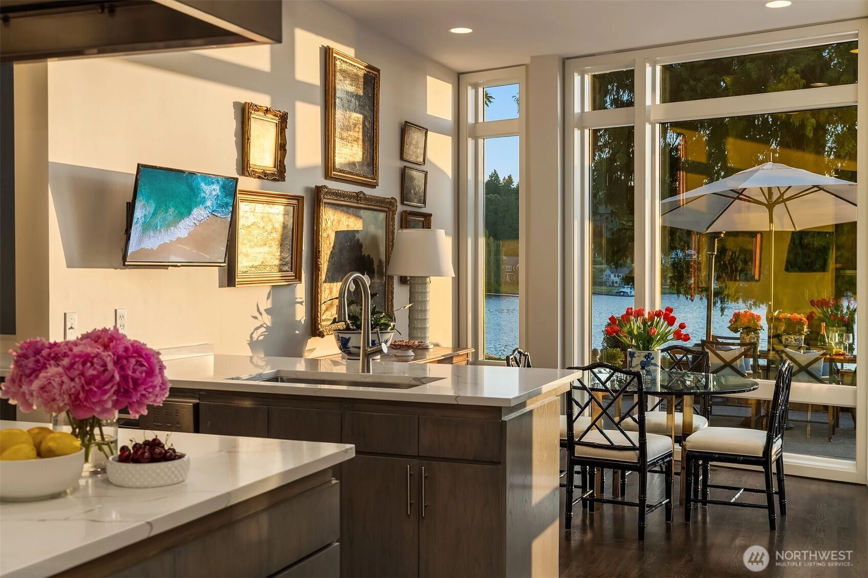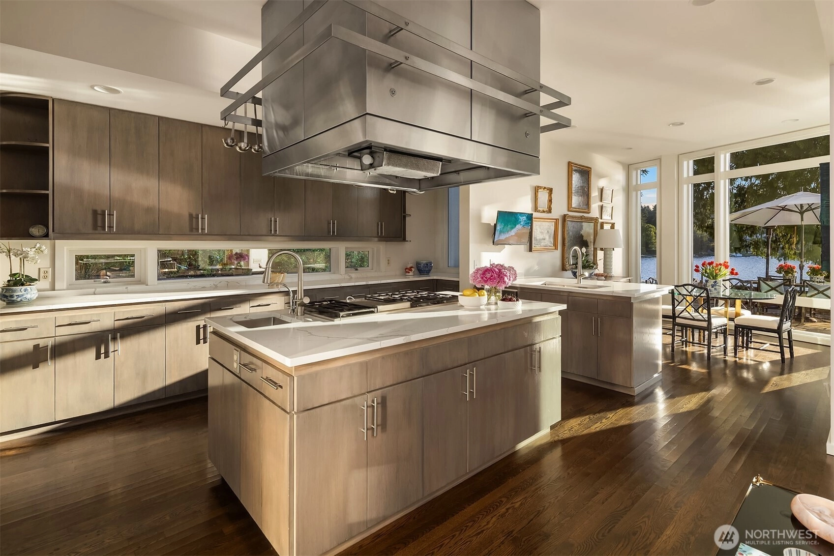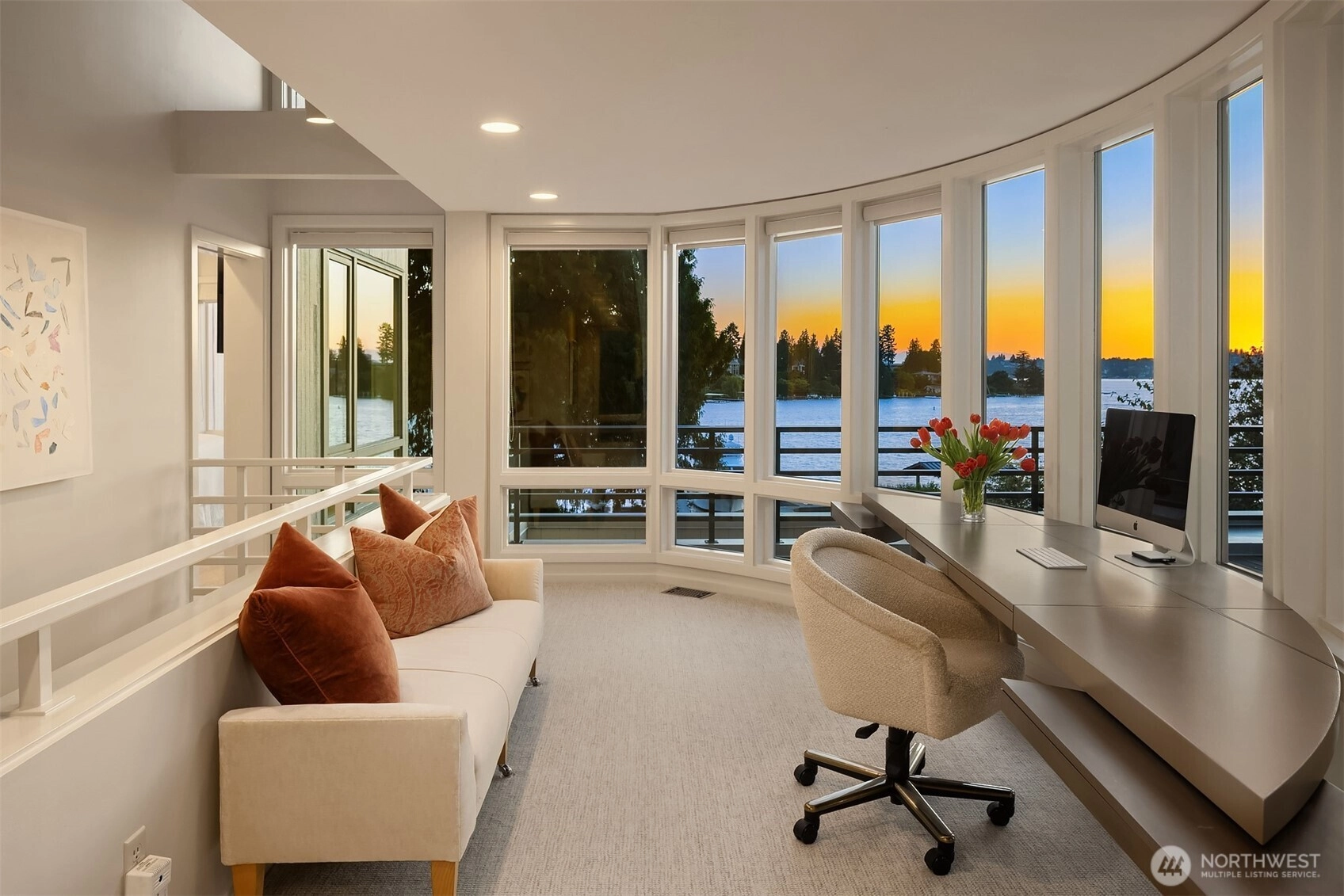 Sited on Hunts Point west-facing. This NW Contemporary by Jim Olson offers 68’ of waterfront. Soaring ceilings & gallery-style interiors with walls of glass frame stunning views. The gourmet kitchen makes a compelling case for canceling reservations in favor of lakeside dining. The primary suite features lake views, deep soaking tub, dressing room & access to the upper deck—perfect for quiet mornings & evening sunsets. Curved glass office, guest suites & media room add flexibility. Landscaping creates a private, retreat setting. The dock accommodates three boats. Private driveway, 3-car garage & minutes to Bellevue & Seattle. Live beautifully on the lake.