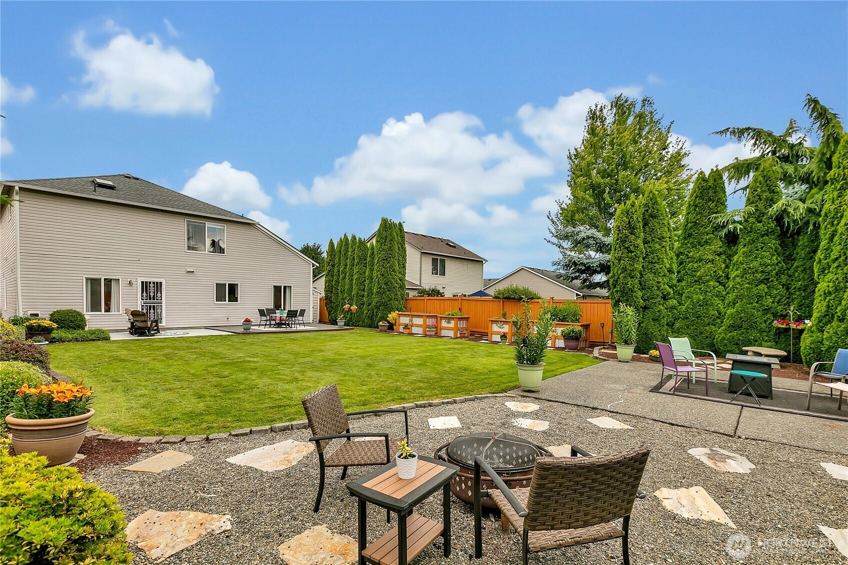 Back active due to no fault of the home! this 2,142SF, 4 bed, 2 3/4 bath home bursting with pride of ownership! Main level features formal living & dining room, light & bright kitchen with walk-in pantry & welcoming family room with cozy gas fireplace. Main-floor bedroom & convenient 3/4 bath offer flexibility for guests or multi-generational living. Upstairs you will find the primary suite with 5-piece bath, 2 additional large bedrooms, full bath & laundry room. Backyard is truly stunning—fully fenced, level & beautifully landscaped. Enjoy multiple patio spaces, deck, firepit, water feature, raised garden beds, lush green lawn & gardening shed—perfect for relaxing or entertaining. 2-car garage, Heat Pump for AC & new roof - 2024.