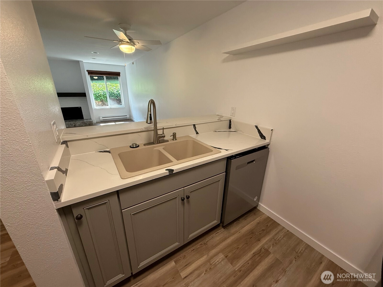 Motivated Seller!-Welcome to this beautifully remodeled one-story condo located in the highly desirable Campus Green II community.This stunning 2-bdrm,1-bth hm features modern upgrades throughout, including quartz cntertps,stainless steel appliances,planked laminate flooring for a stylish and durable finish.Updated doors and trim gives the hm a fresh,contemporary feel,and the cozy wood-burning fireplace adds warmth & charm.Enjoy cabana,swimming pool,and beautifully maintained landscaping,personal parking spot.Pet lovers will appreciate the large fully fenced dog area,Nestled in a quiet well-kept community,you're just min from light rail access,shopping,restaurants & mall—offering both convenience and comfort in one package.Bring all offers!