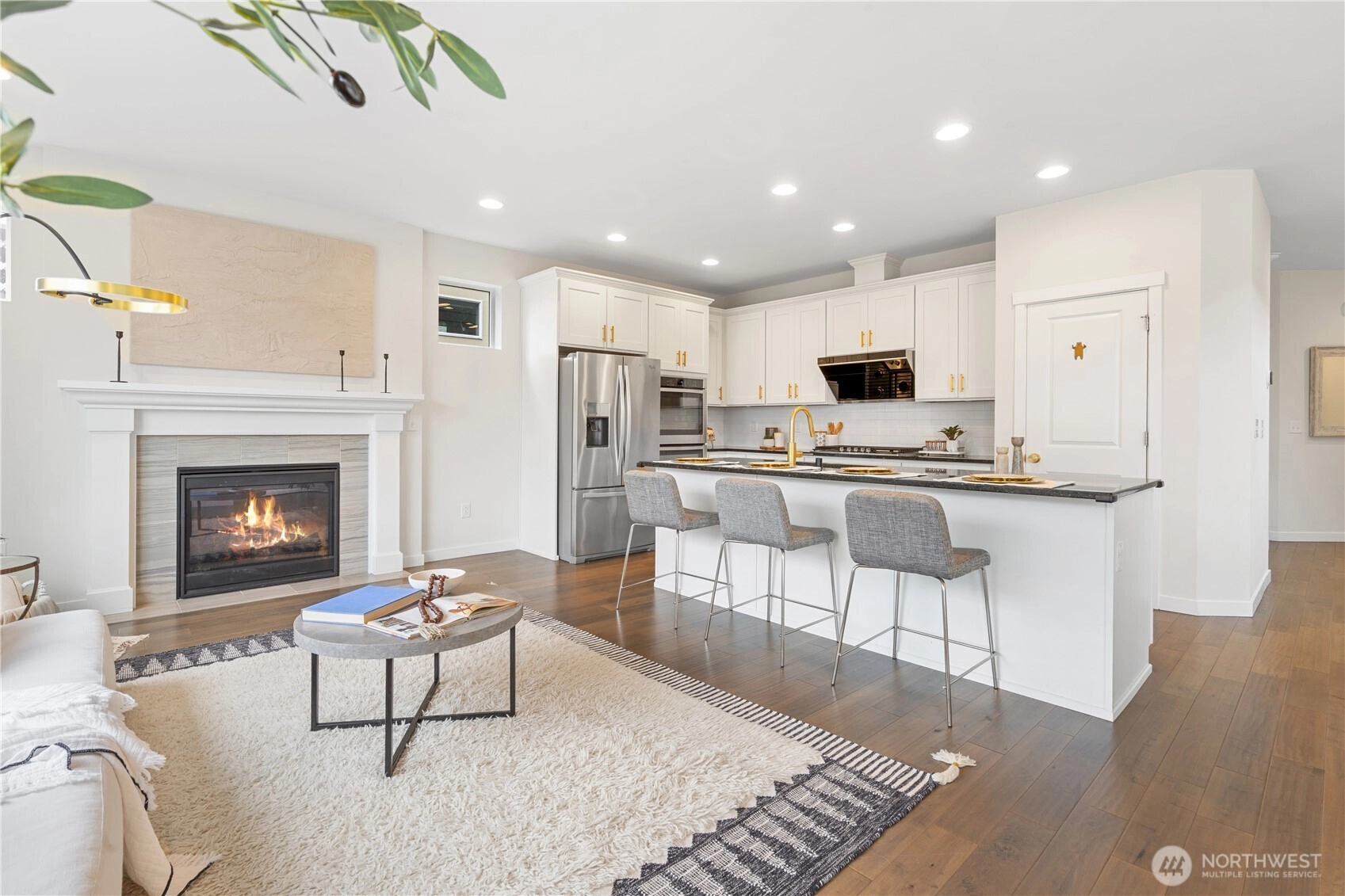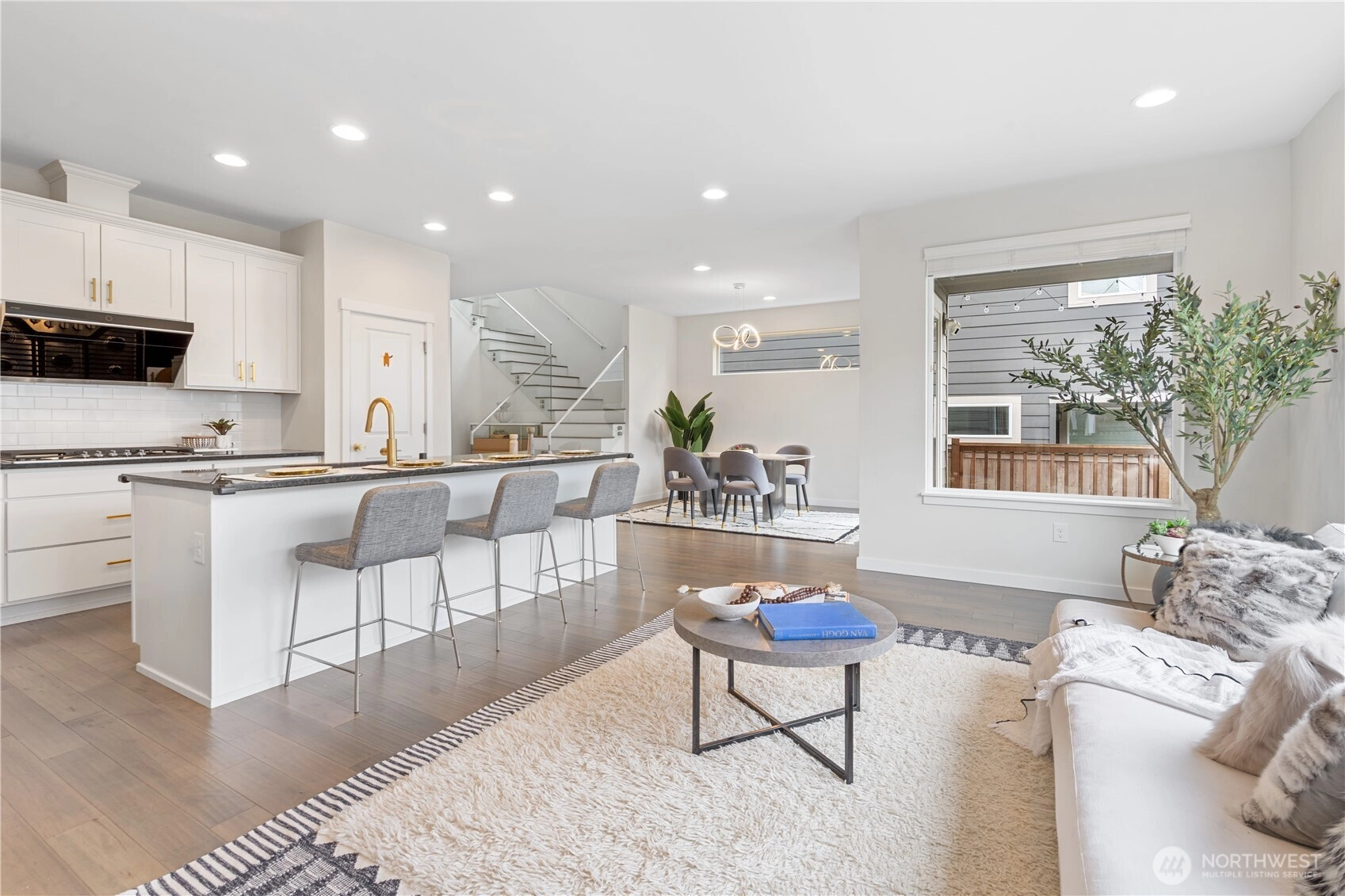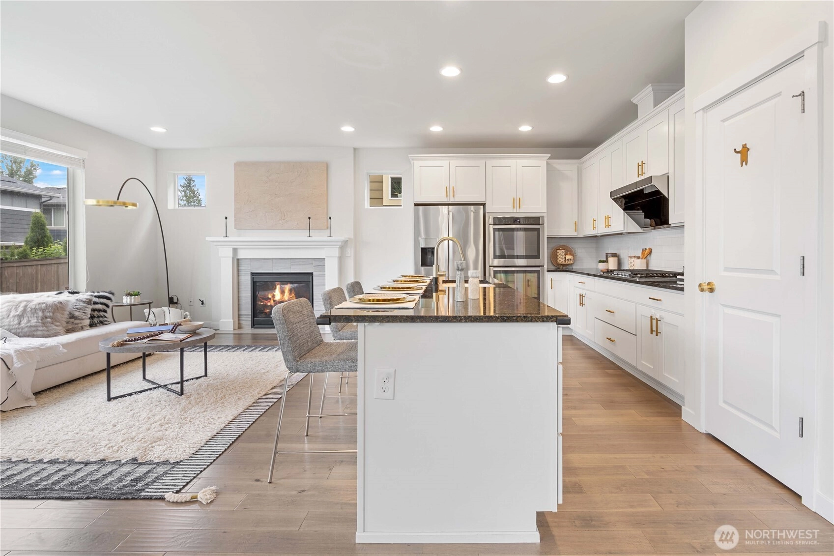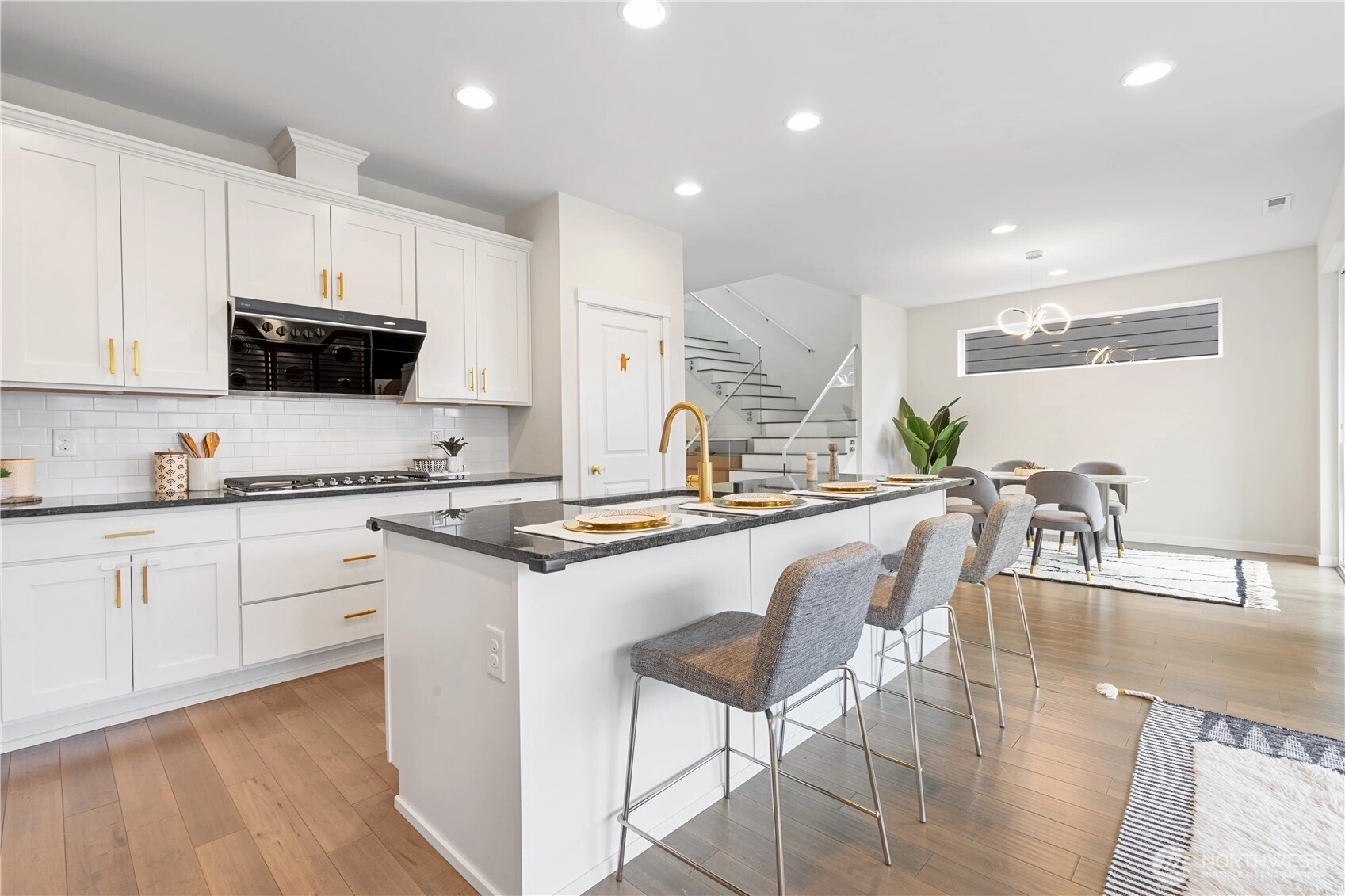 If you've been searching for an immaculate home that blends warm charm with modern flair, your search ends here! Flooded with natural light, the living room offers a welcoming atmosphere. A main-floor office easily converts into a guest bedroom—perfect for visitors or working from home. Enjoy wood flooring throughout, granite kitchen countertops, oversized center island and sleek tempered glass railing. The upstairs loft is perfect for entertaining. The luxurious primary suite offers comfort and space, complemented by three additional bedrooms. Step outside to a covered patio and low-maintenance backyard, ideal for gatherings. Minutes from top dining, shopping, and I-90. Don’t miss this opportunity!