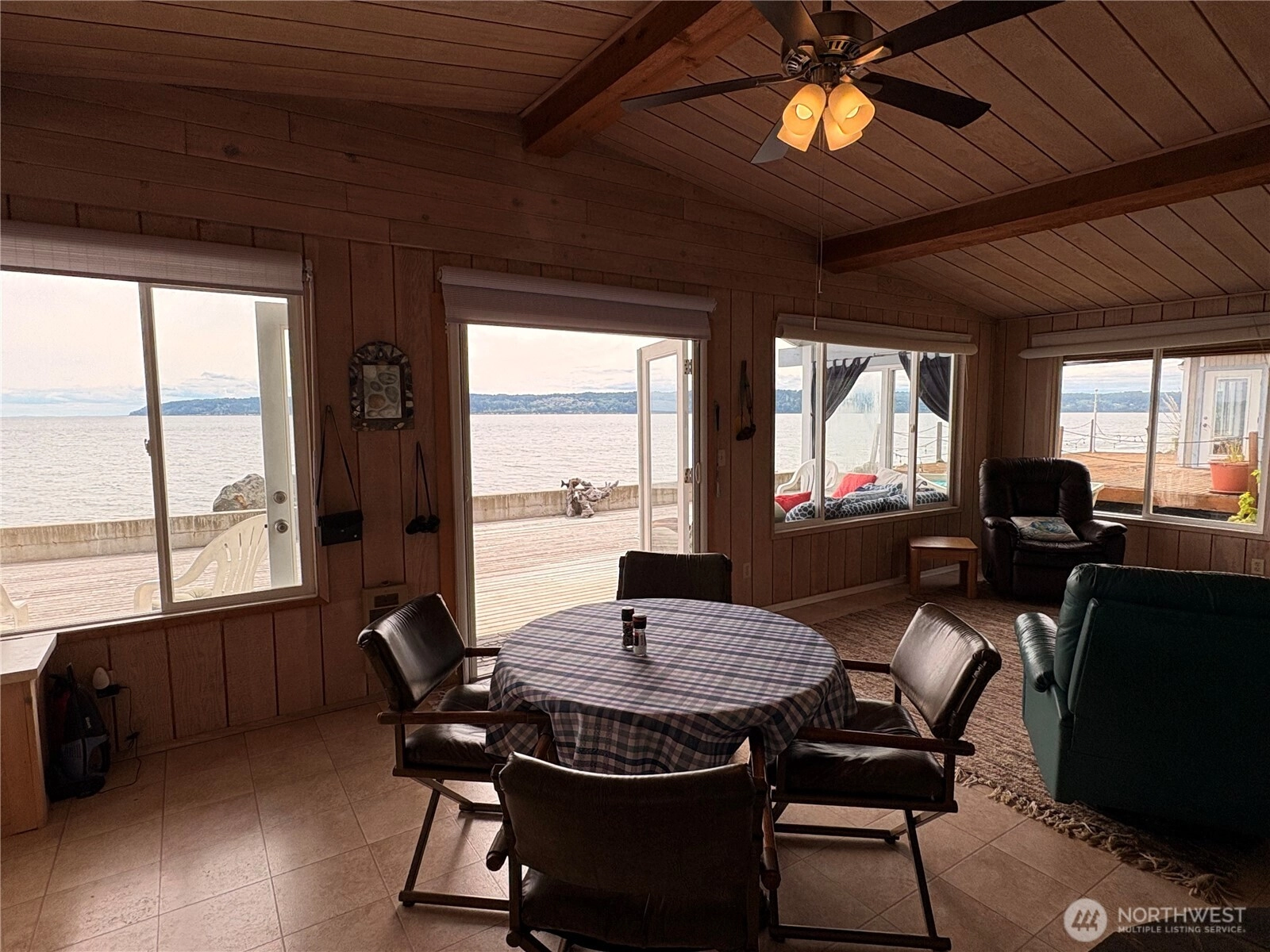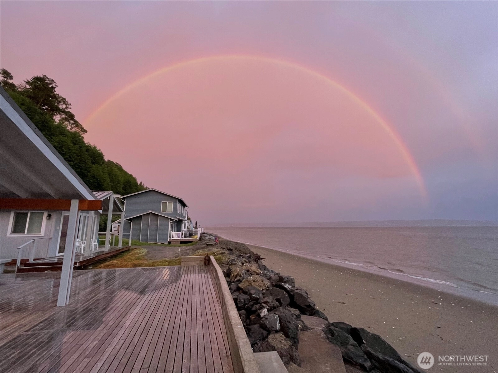 120 ft of ocean front with cabin plus separate guest house on Hat Island. Sleeps 8 adults + kids sleeping loft. Watch orcas, gray whales, herons, eagles, seals as Washington State Ferries pass by. Go clam digging, fishing and crabbing right outside your door. Detached 256 sq ft casita with glass front, bathroom, coffee station and queen bed offering additional oceanside views for you or your guests. South-facing home showcases both sunrise and sunset, Mt. Rainier, and Olympic mountains. Your rare opportunity to own sandy beachfront with tidelands. Bulkhead recently professionally installed. Expansive decks perfect for relaxing or entertaining. Hat Island boasts a 9-hole USGA Golf Course, private ferry, summer beach concerts, more